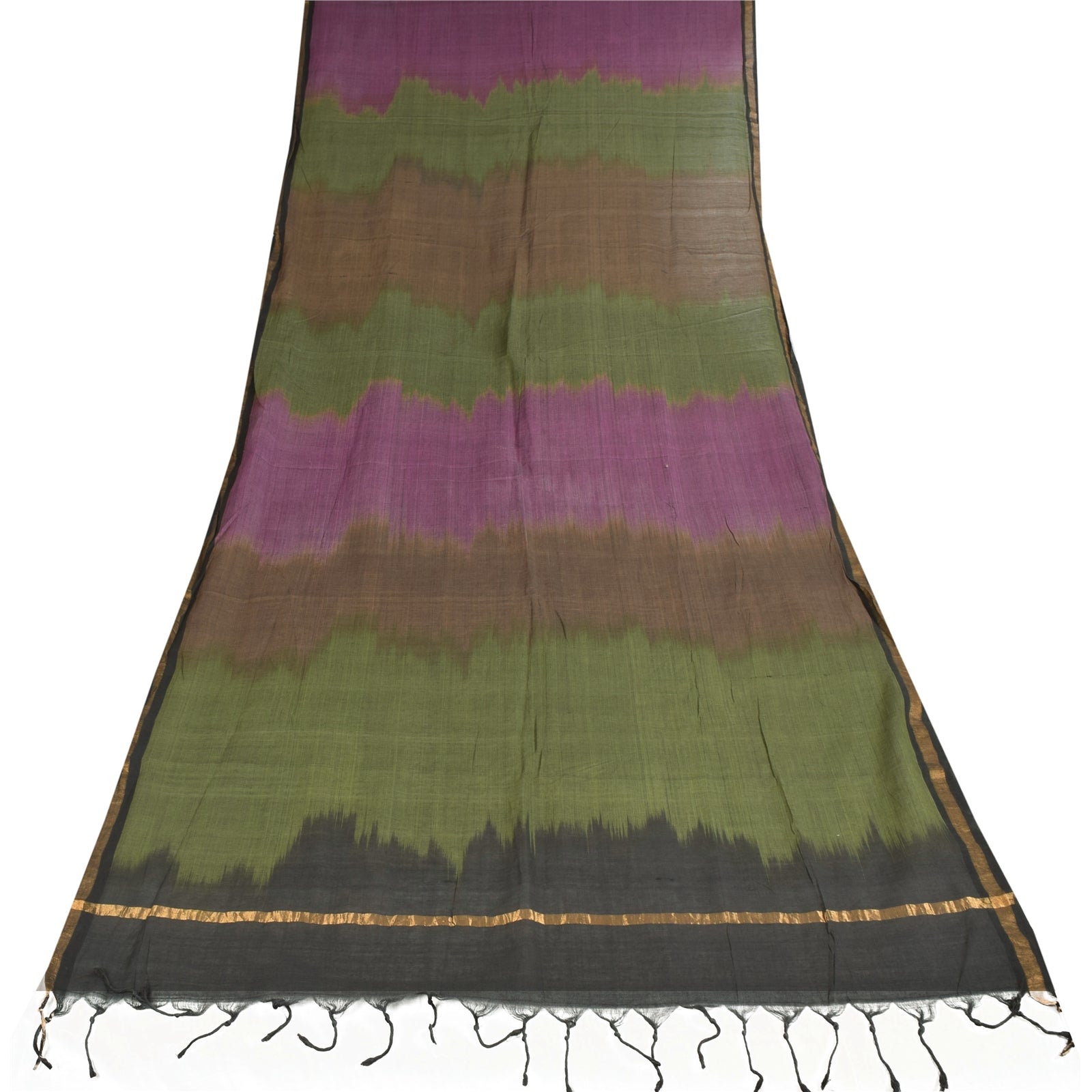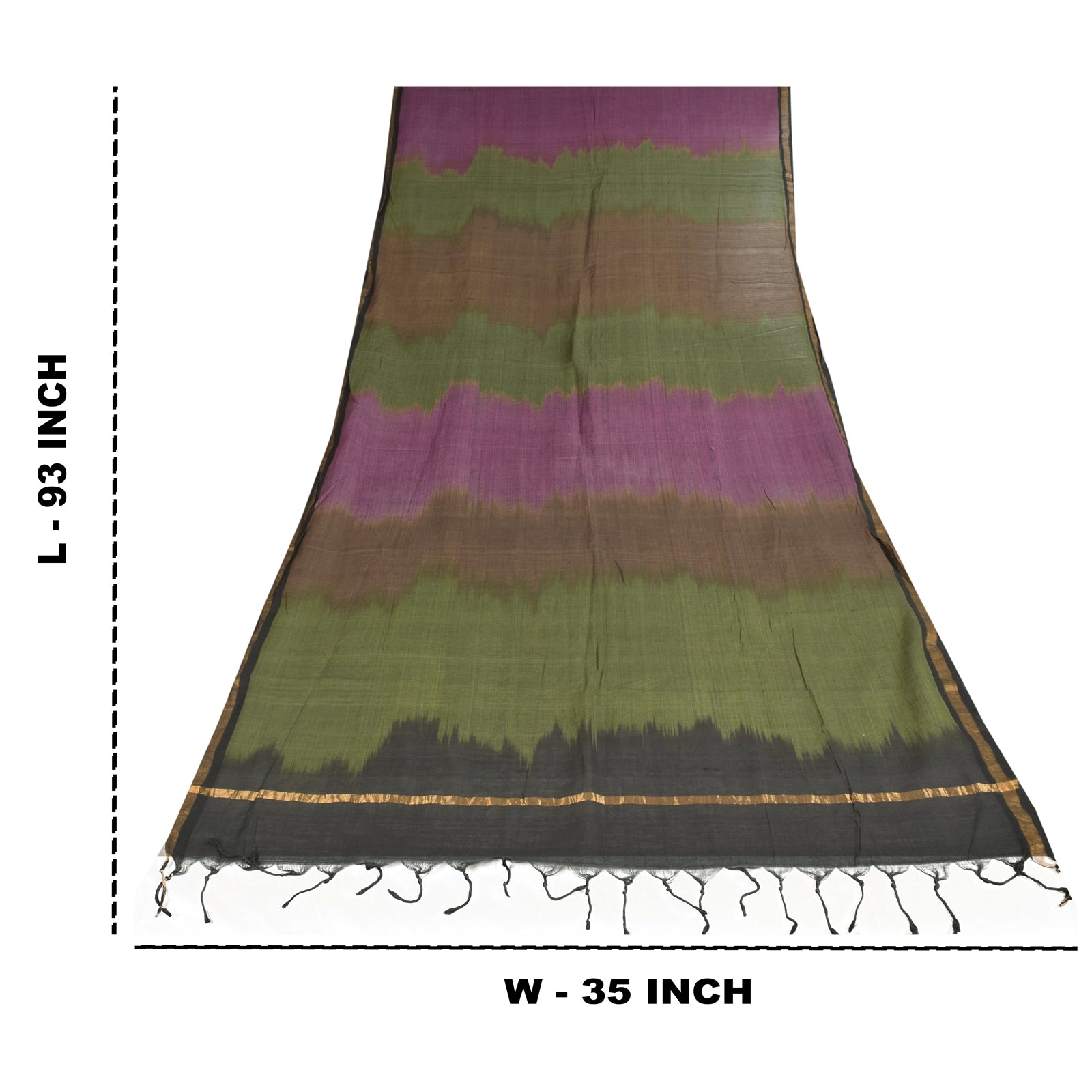 'THE ITEM COLOR OR SHADE MAY BE DARKER OR LIGHTER THAN THE PICTURE.' Beautiful multi colored pure cotton woven long scarf/dupatta. Center portion of the dupatta has Solid pink/brown/black & green color. Border has floral design embellished with golden woven work is really enhancing beauty of the dupatta/stole. Dupatta has matching black color fringes on both ends of borders. This dupatta/stole can be used for various crafting ideas too. Use it for dress designing, as a throw, as window dressing, upholstery, table linen and much more. Let your creative juices flow. Shipping note: International buyers please note: Import duties, taxes, and charges are not included in the item price or postage cost. These charges are the buyer's responsibility. Please check with your country's customs office to determine what these additional costs will be prior to bidding or buying. Buyer will pay custom duty/tax. It is calculated and charged differently by every country. As a seller I do not have any control over it. VAT or sales tax is calculated by the platform at the time of checkout. Customs charge is payable at the time of delivery.' SKU: dc-55116
