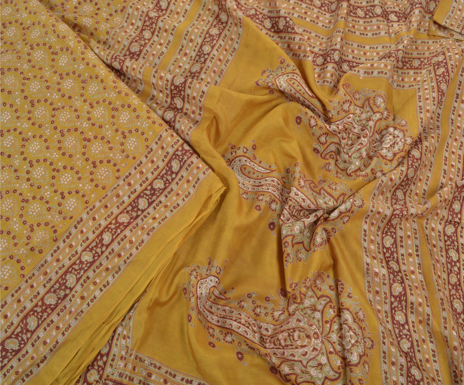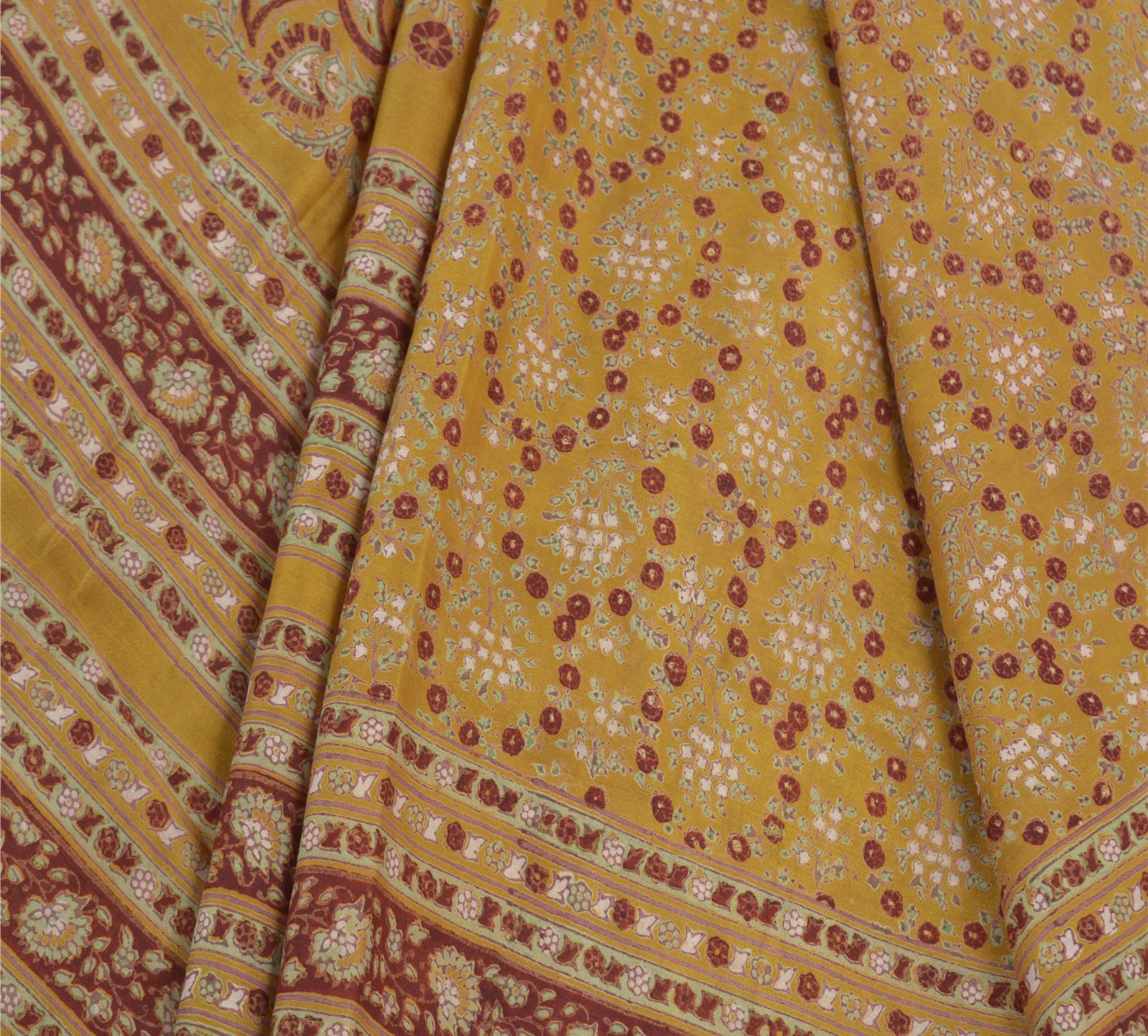 Gorgeous mustard green colored pure silk block printed saree with floral design on pallu, border & center part. Versatile Uses-Crafting, Repurpose, Creative Sewing Project, Dressmaking, Kaftans, Use It As A Sari, Window Dressing, Upcycling, Sarongs, Throw,Table Linen,Decorative Fabric, Sustainable Indian Fabric. THE ITEM COLOR OR SHADE MAY BE DARKER OR LIGHTER THAN THE PICTURE.' International buyers please note: Import duties, taxes, and charges are not included in the item price or postage cost. Buyer will pay custom duty/tax,VAT, and any applicable charges at the time of delivery. PR-55503