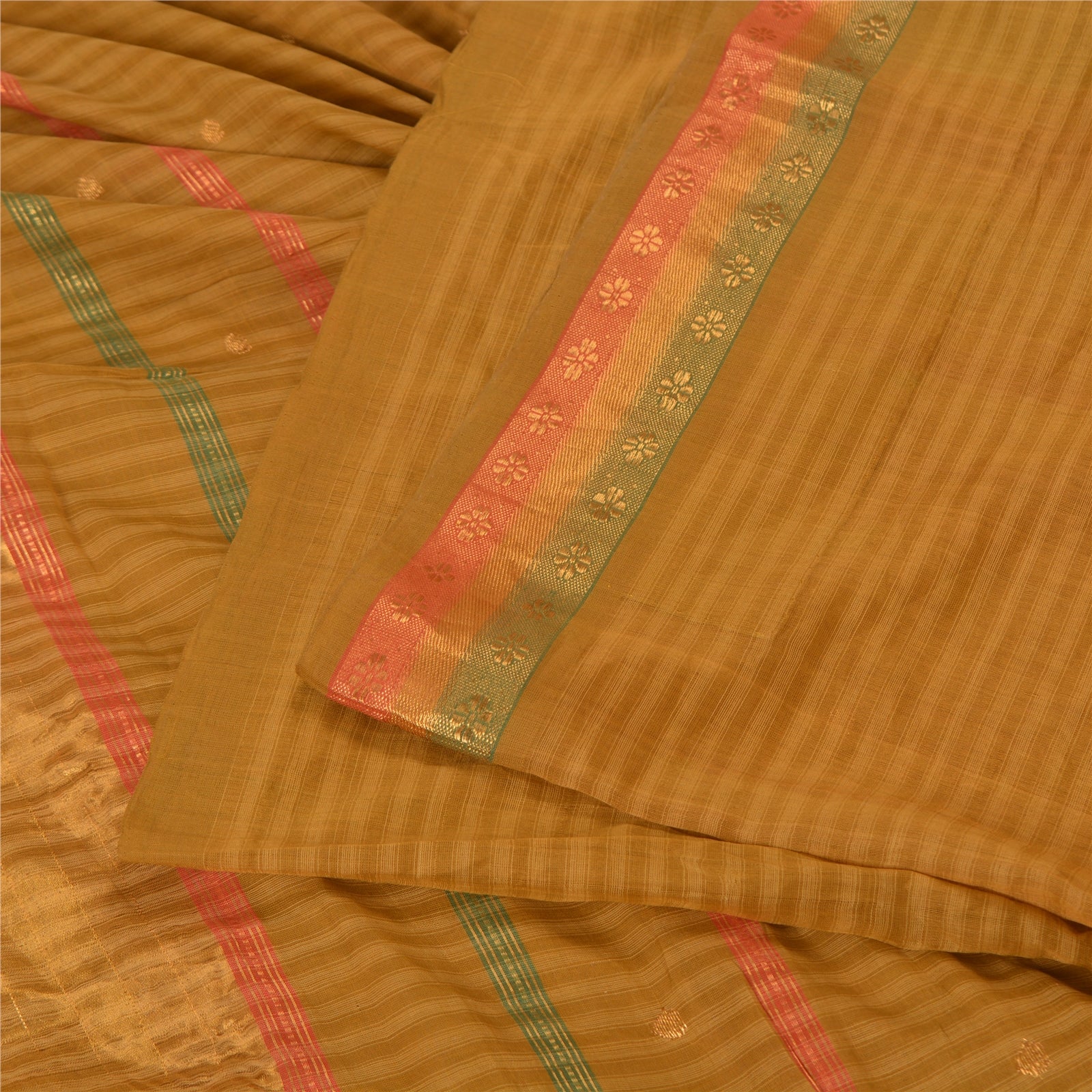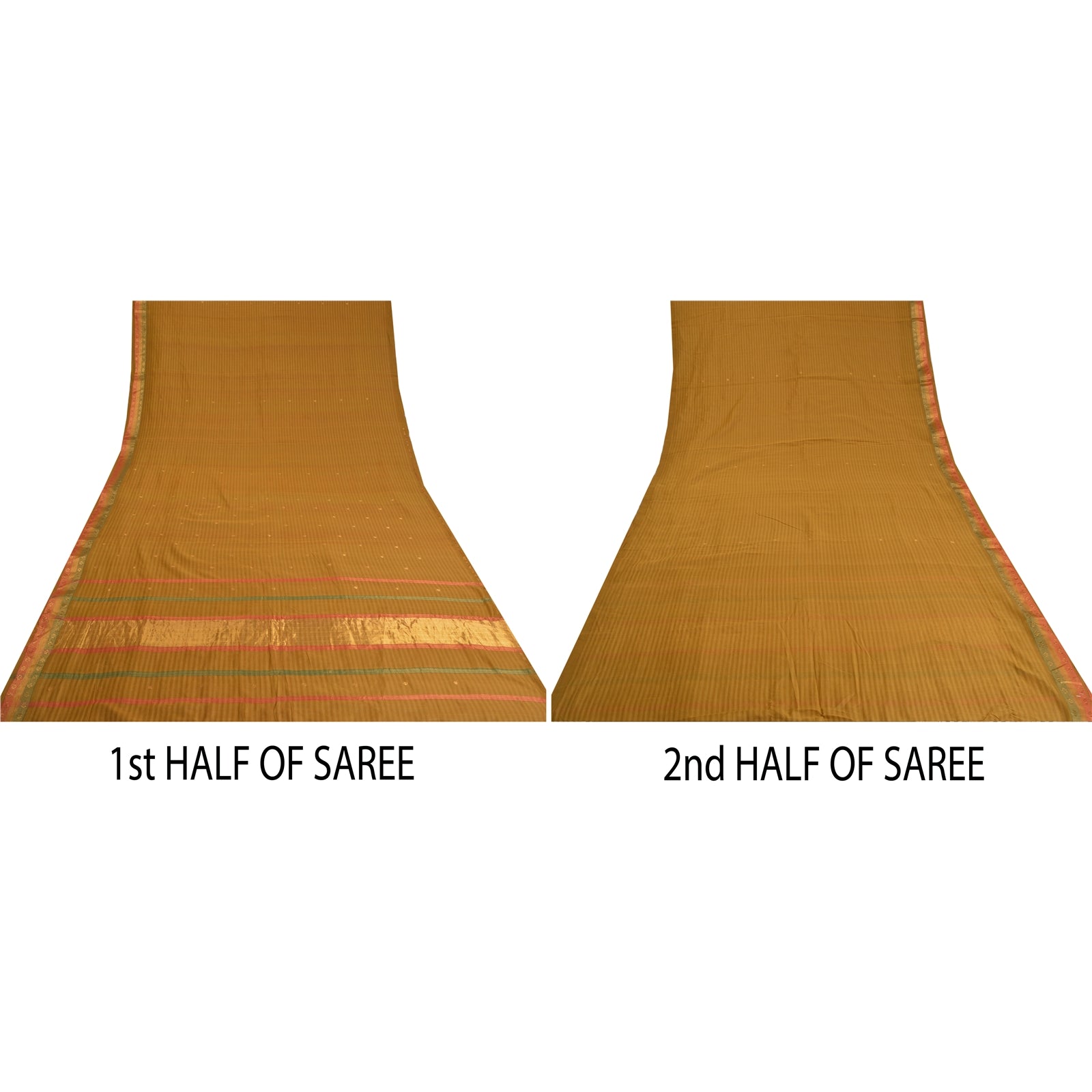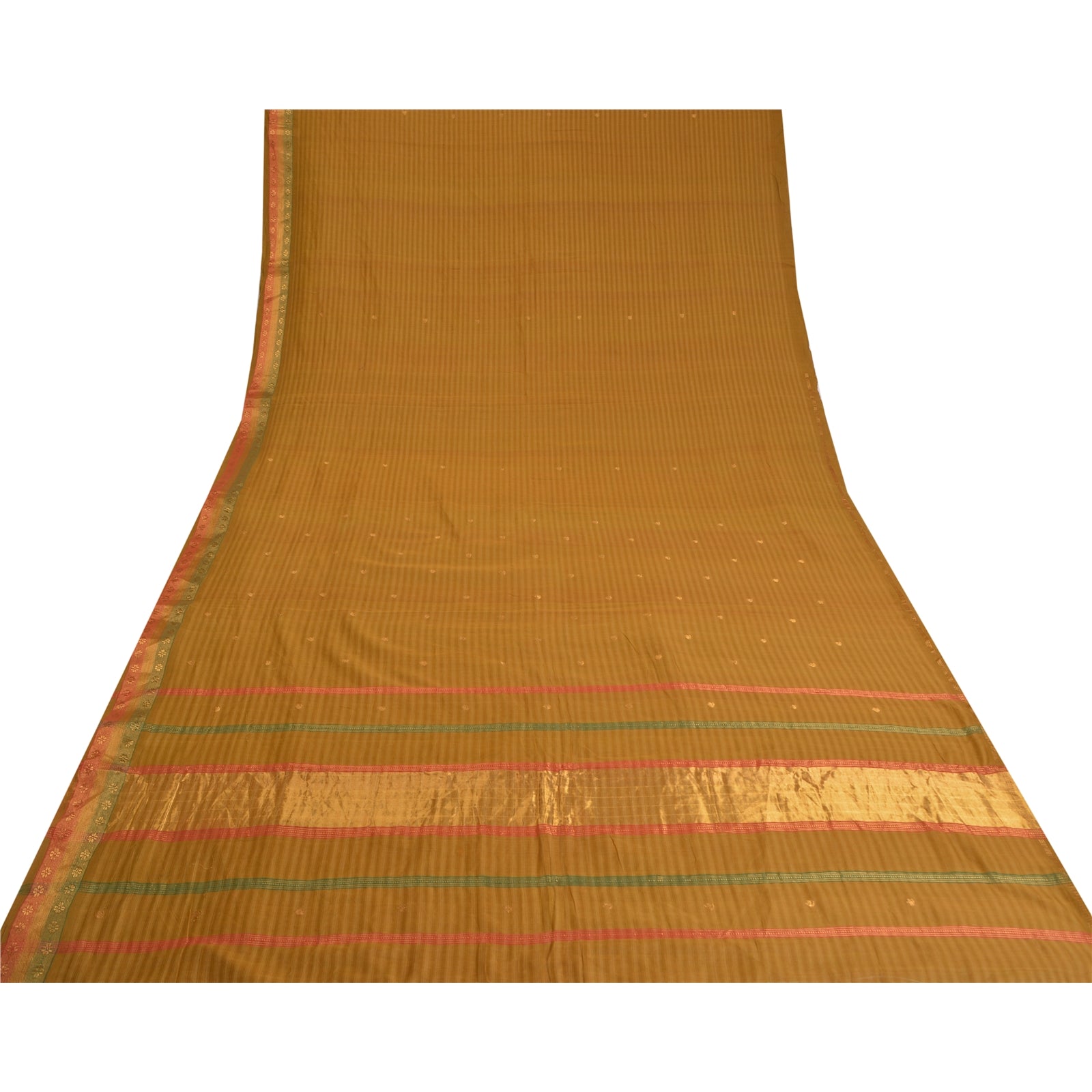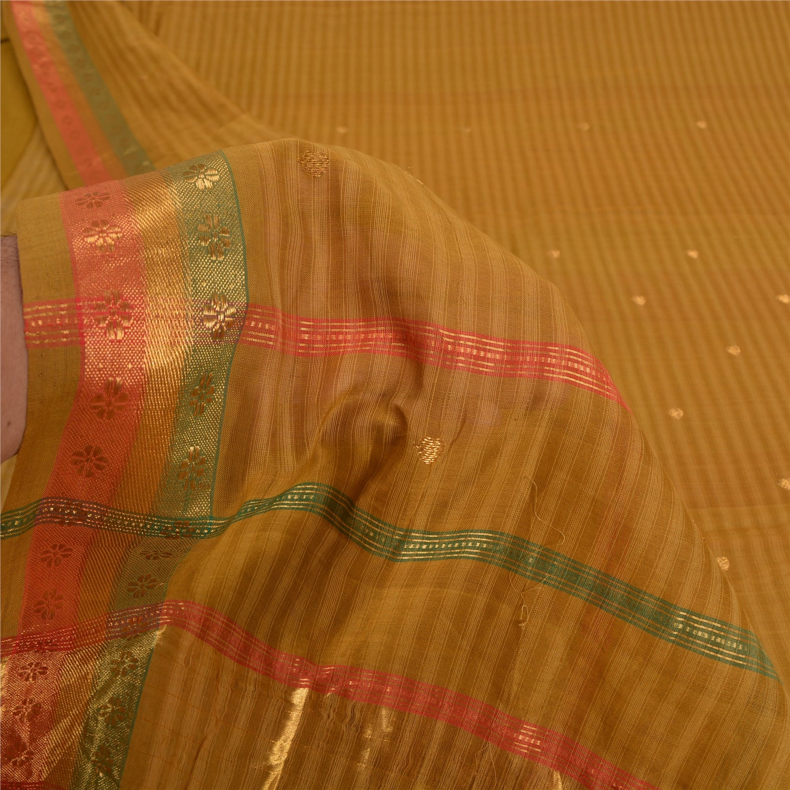 Sanskriti Vintage Mustard Indian Sarees Pure Cotton Woven Zari Sari Craft Sustainable Fabric