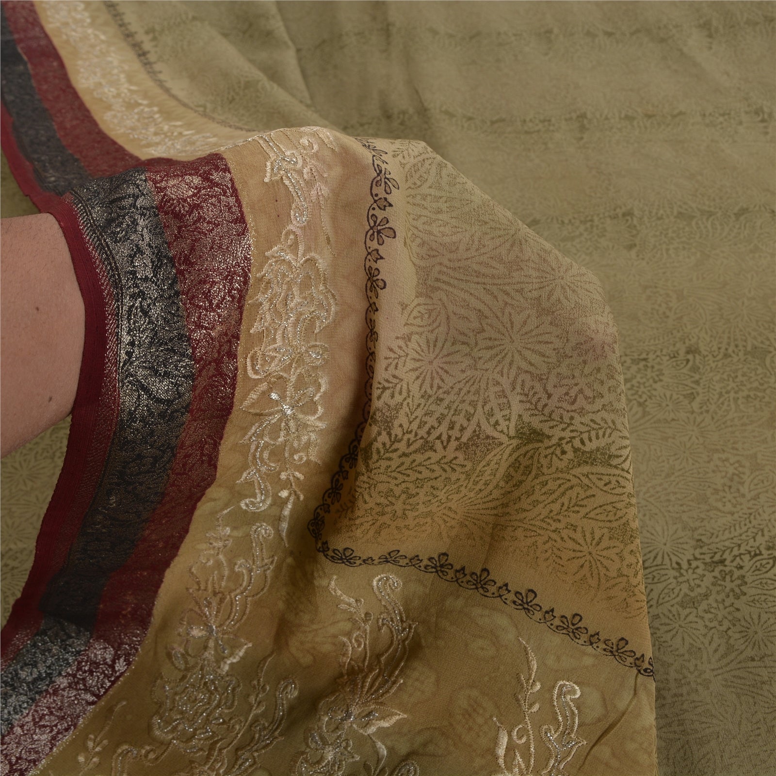 Sanskriti Vintage Olive Green Sarees Pure Georgette Silk Embroidered Sari Sustainable Fabric