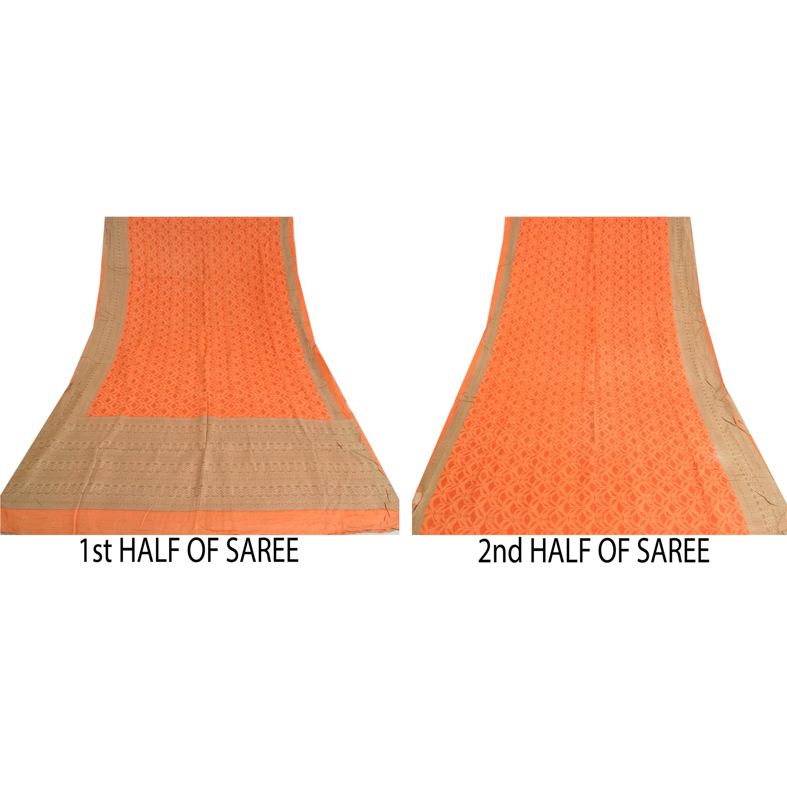 Sanskriti Vintage Orange Heavy Indian Sarees Pure Woolen Sustainable Fabric Printed Sari