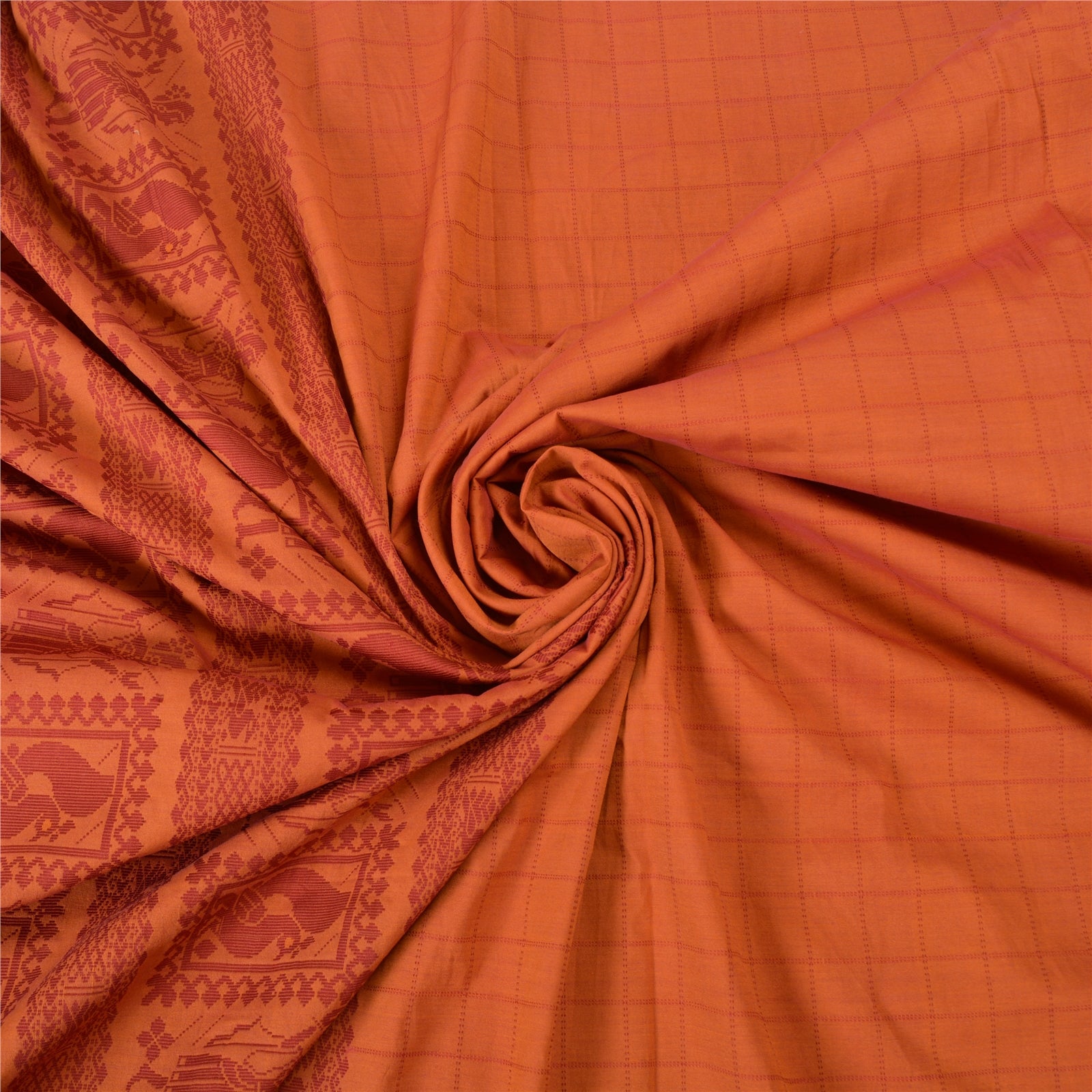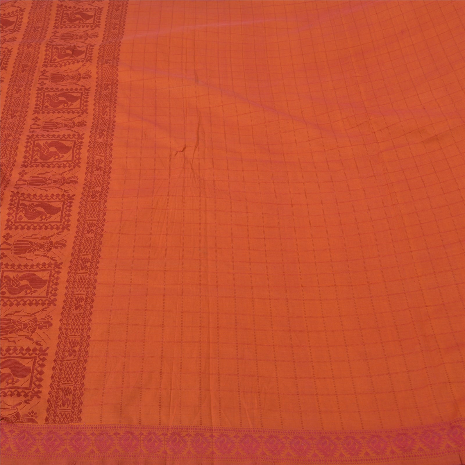 'THE ITEM COLOR OR SHADE MAY BE DARKER OR LIGHTER THAN THE PICTURE.' Beautiful orange colored blend silk baluchari woven sari. Pallu & border features red woven thread work with human & peacock design. The center of the saree has woven grid pattern. This saree can be used for various crafting ideas too. Use it for dress designing, as a throw, as window dressing, upholstery, table linen and much more. Let your creative juices flow. 'International buyers please note: Import duties, taxes, and charges are not included in the item price or postage cost. These charges are the buyer's responsibility. Please check with your country's customs office to determine what these additional costs will be prior to bidding or buying. Buyer will pay custom duty/tax. It is calculated and charged differently by every country. As a seller I do not have any control over it. VAT or sales tax is calculated by the platform at the time of checkout. Customs charge is payable at the time of delivery.'