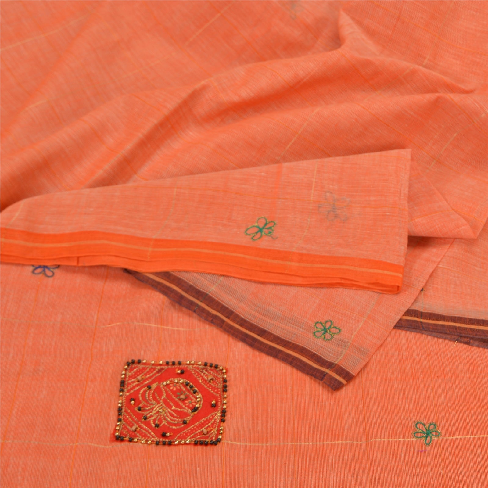 Sanskriti Vintage Orange Sarees Pure Cotton Hand Beaded Fabric Craft Sari