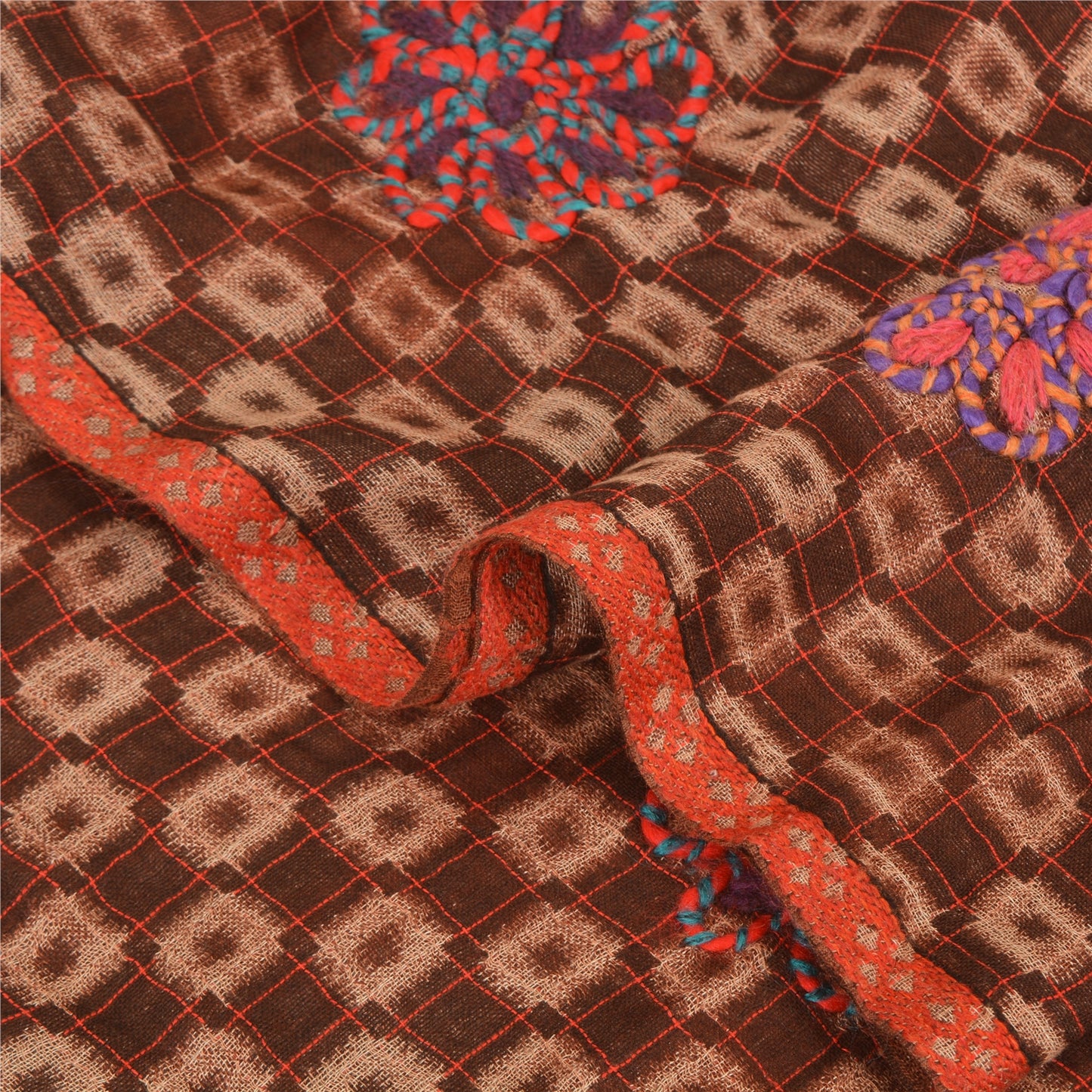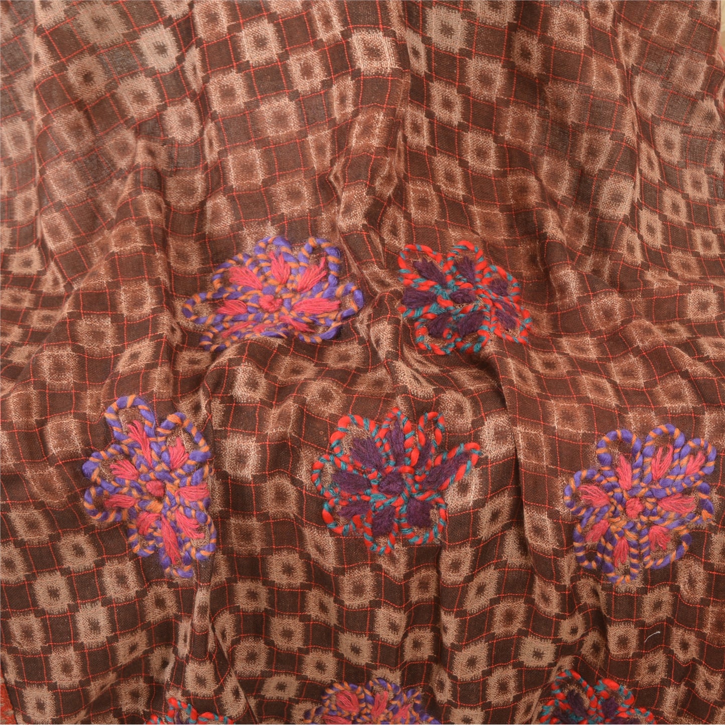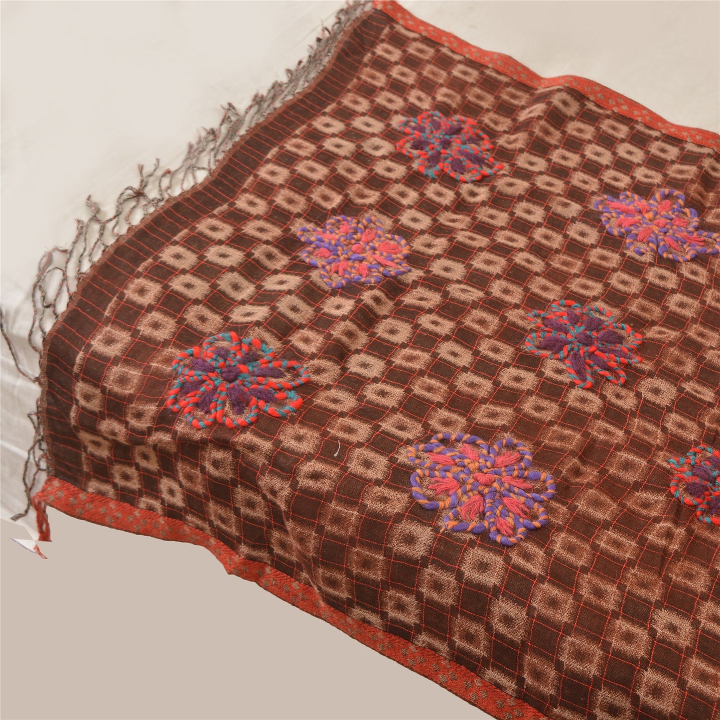 Sanskriti Vintage Pashmina Hand Embroidered Boil Wool Shawl Scarf Brown Stole
