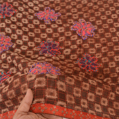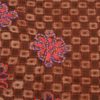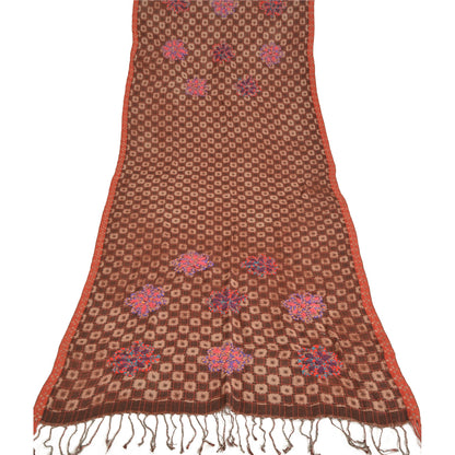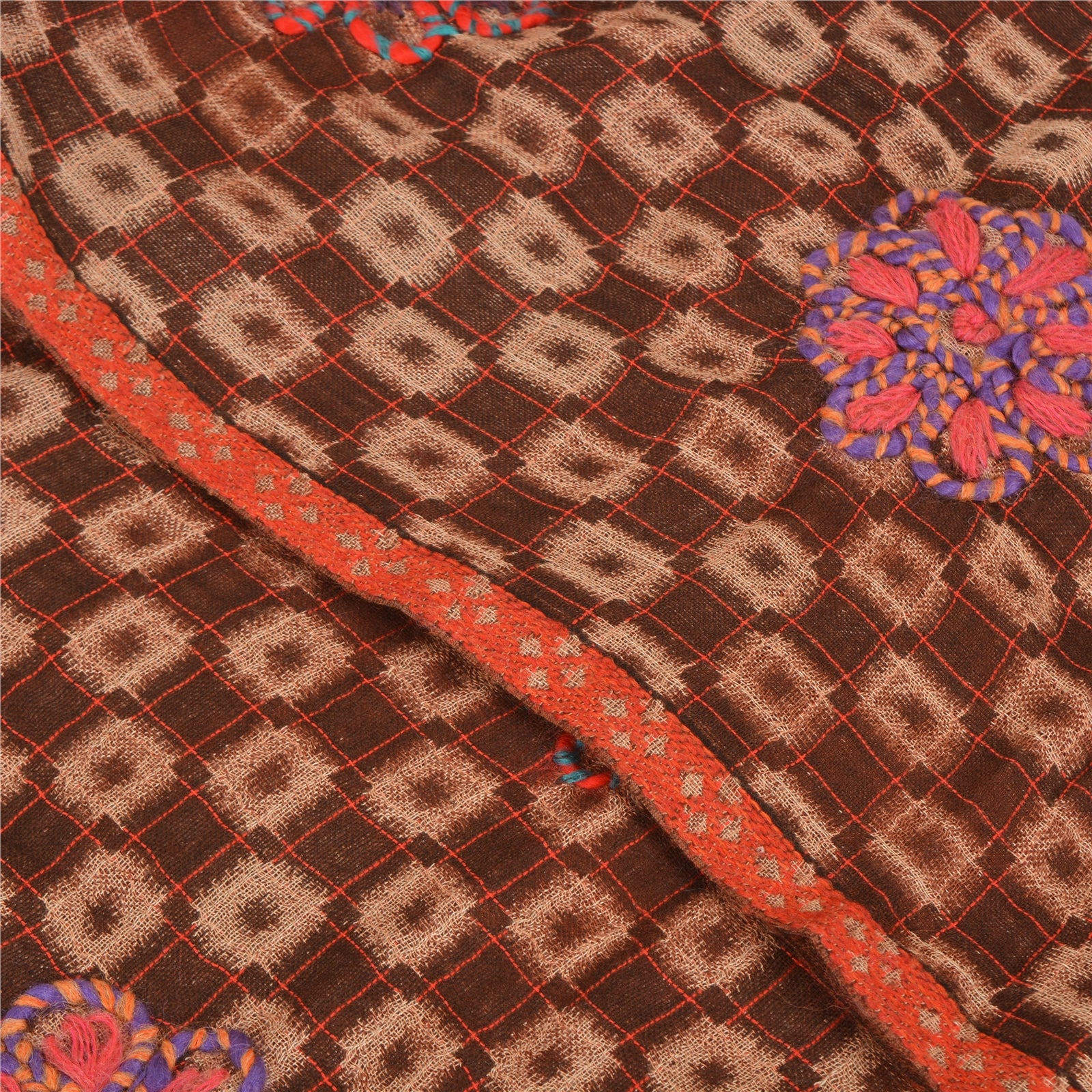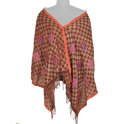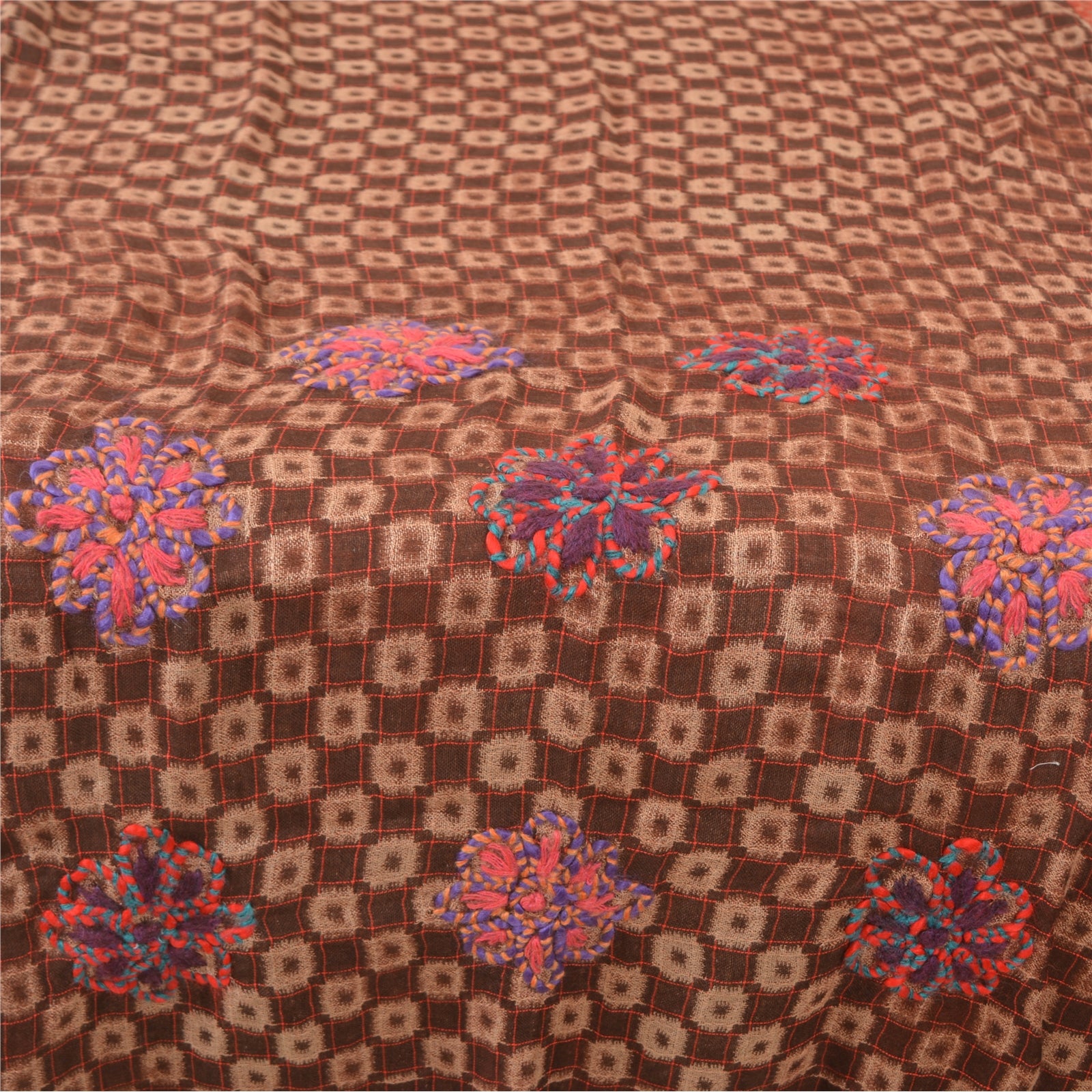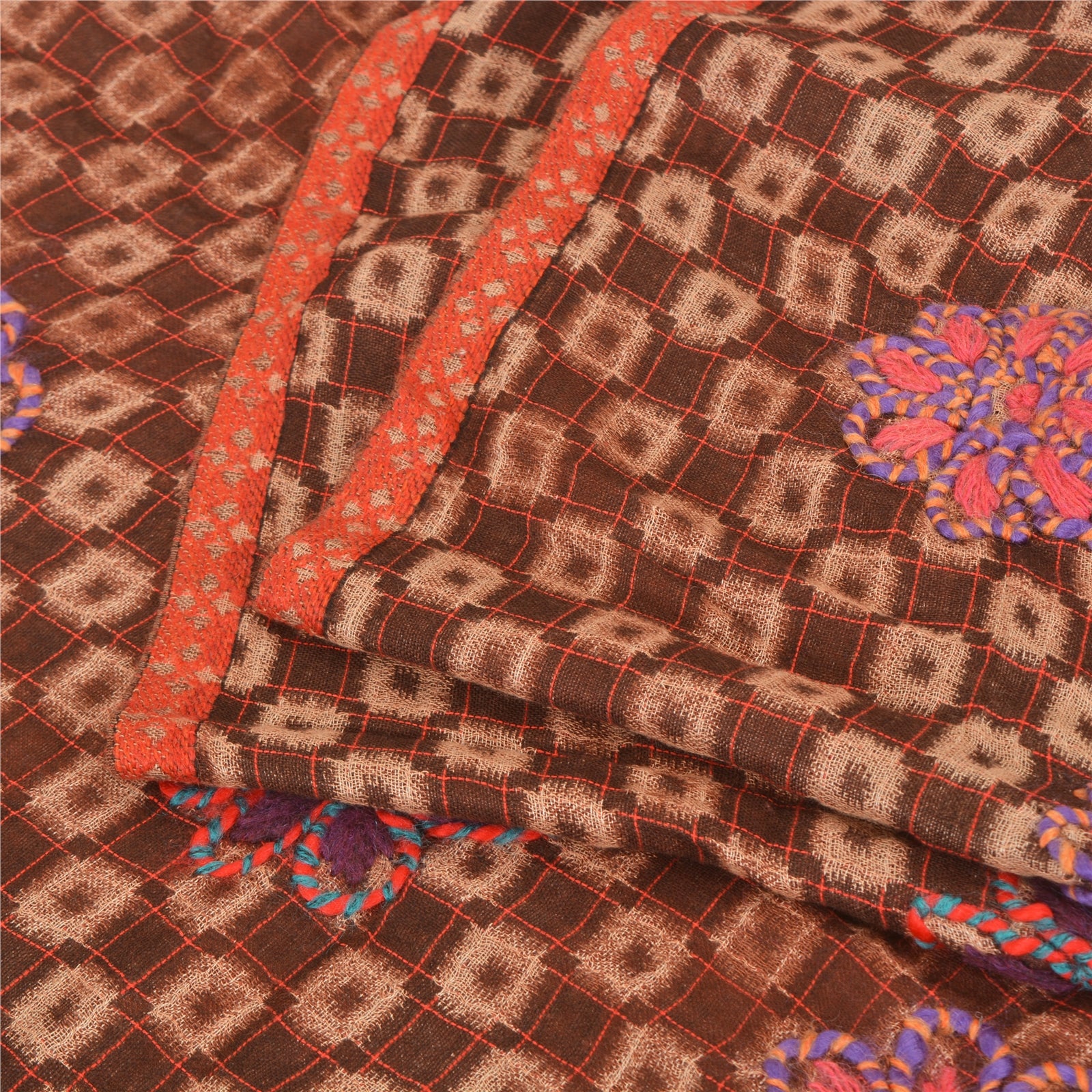 Sanskriti Vintage Pashmina Hand Embroidered Boil Wool Shawl Scarf Brown Stole