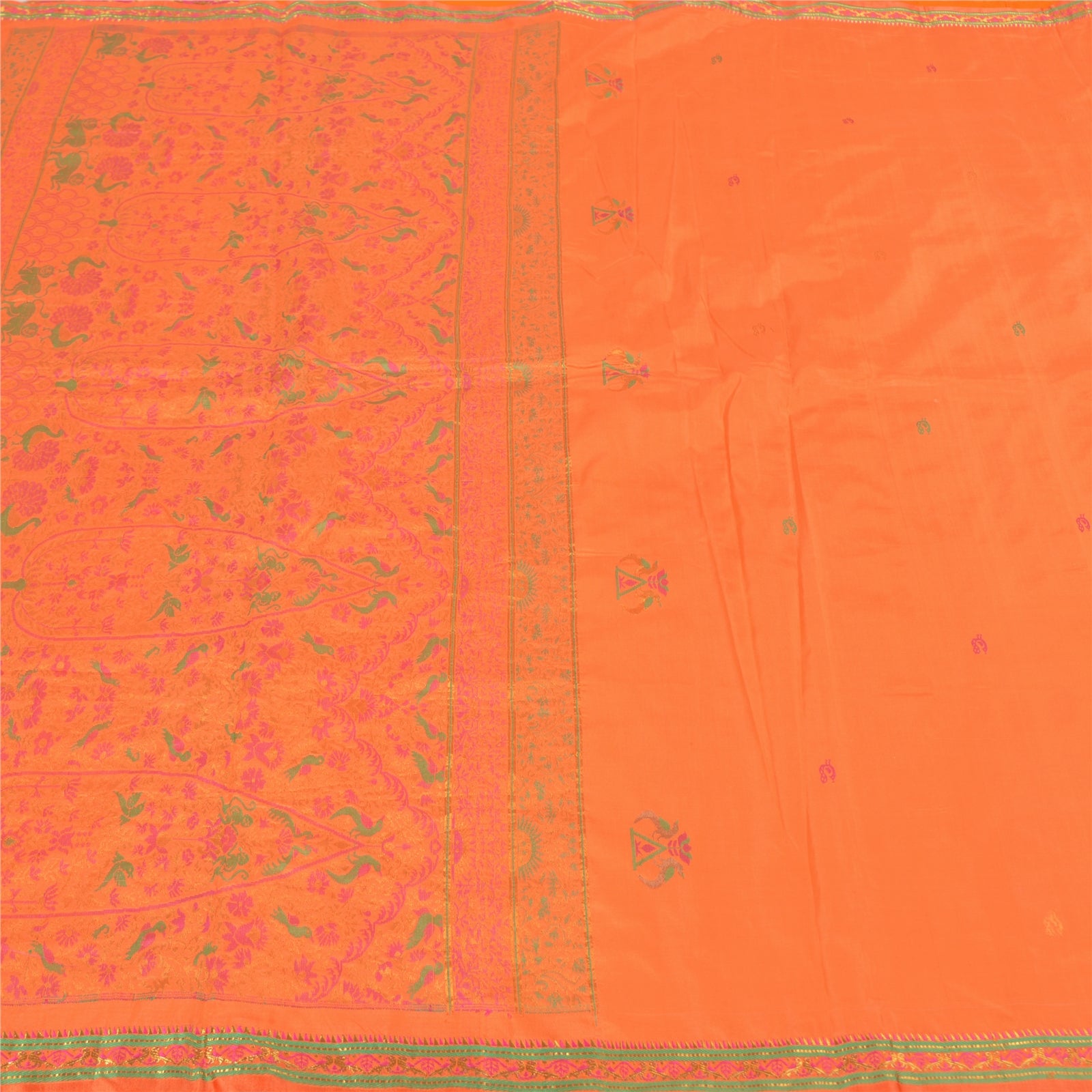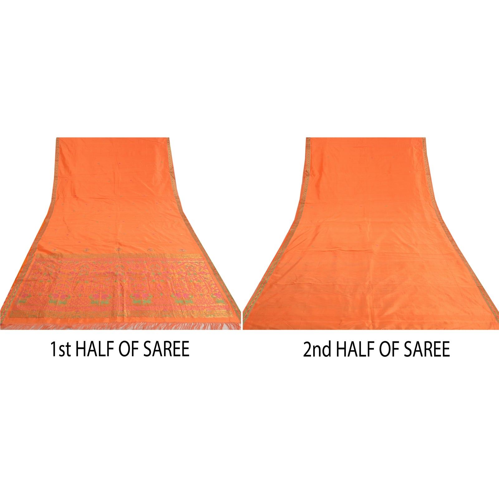 Sanskriti Vintage Peach Heavy Sarees 100% Pure Silk Woven Zari Sari Sustainable Fabric