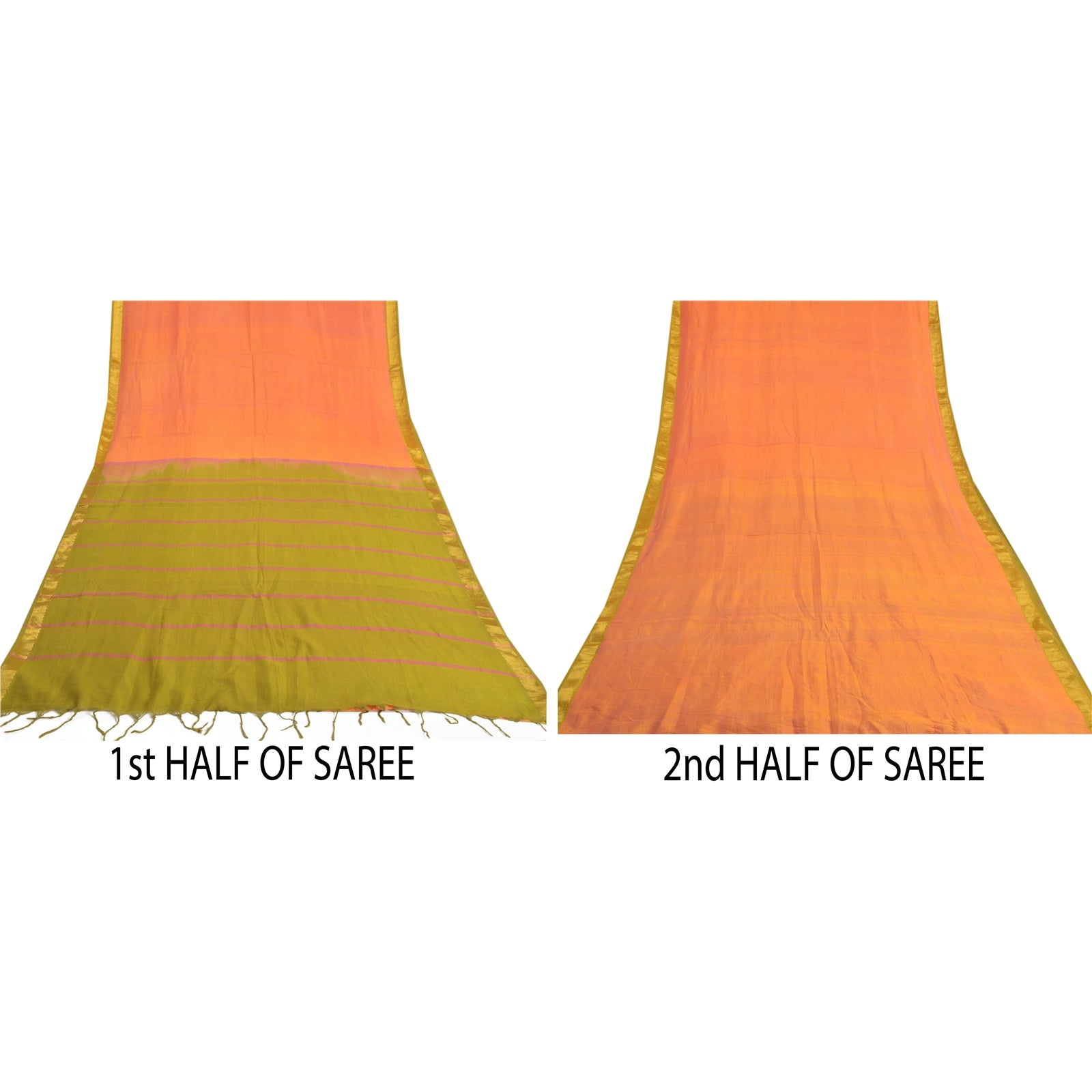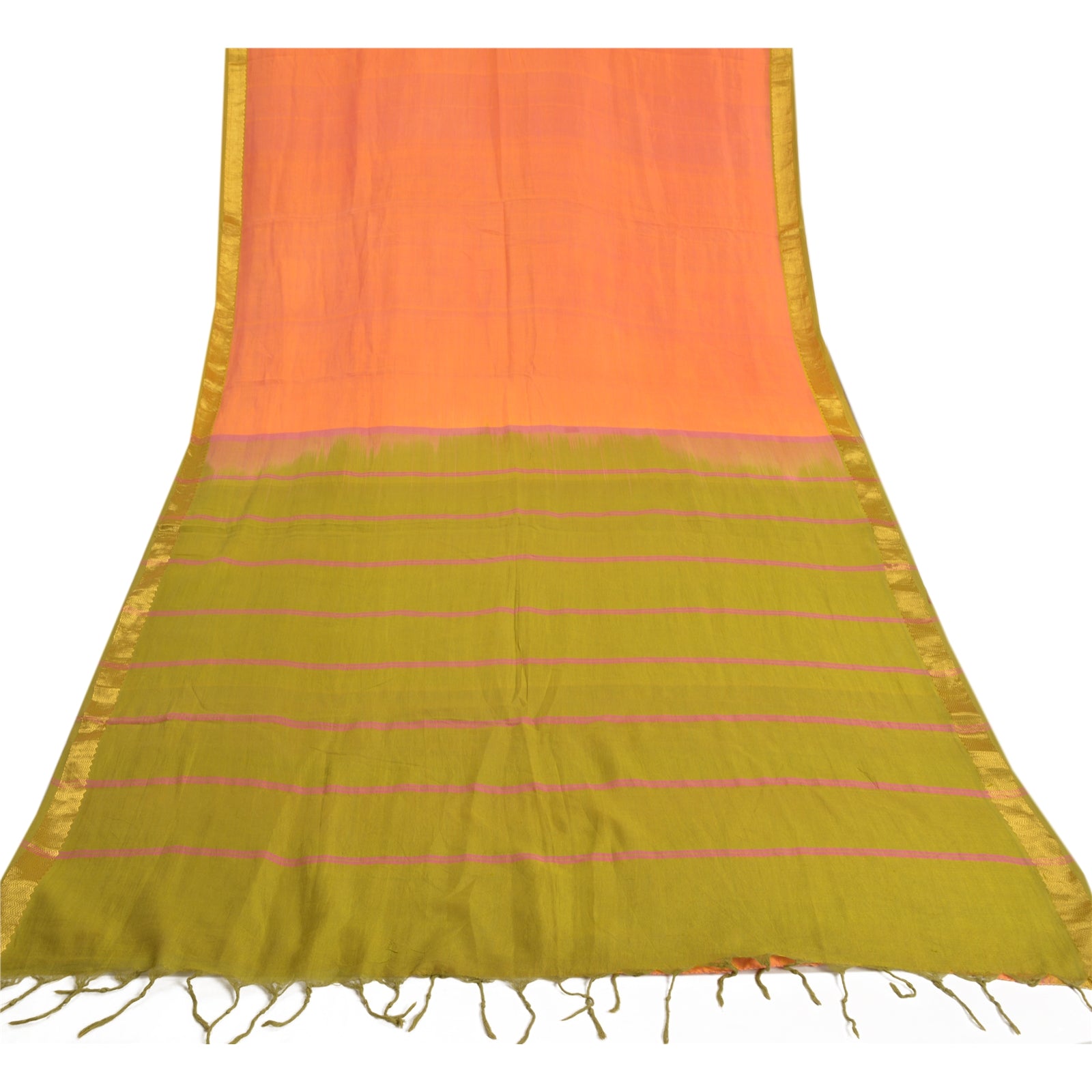 Sanskriti Vintage Peach Indian Sarees Cotton Silk Woven Sari Craft 5 Yard Sustainable Fabric