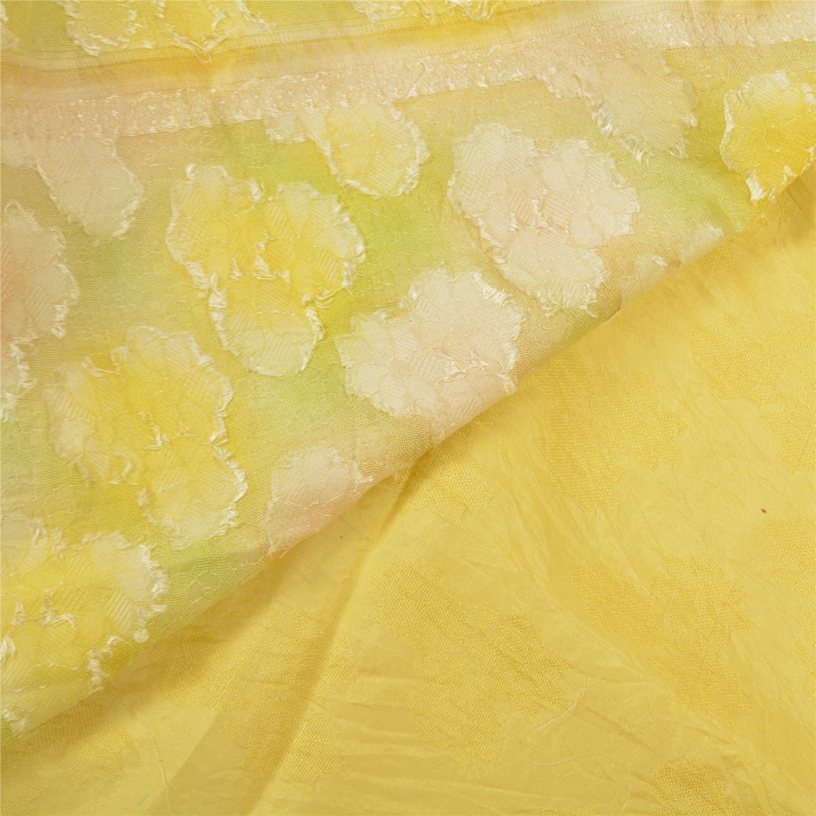 Beautiful Shade Of Peach & Green Colored 100% Pure Silk Woven Sari. Pallu & Border of this sari has multi color woven work with floral design. You can see printed floral motifs in center part of the sari. What is special about this saree? Interesting colors with colorful woven work is really enhancing the beauty of the saree. This saree can be used for various crafting ideas too. Use it for dress designing, as a throw, as window dressing, upholstery, table linen and much more. Let your creative juices flow.