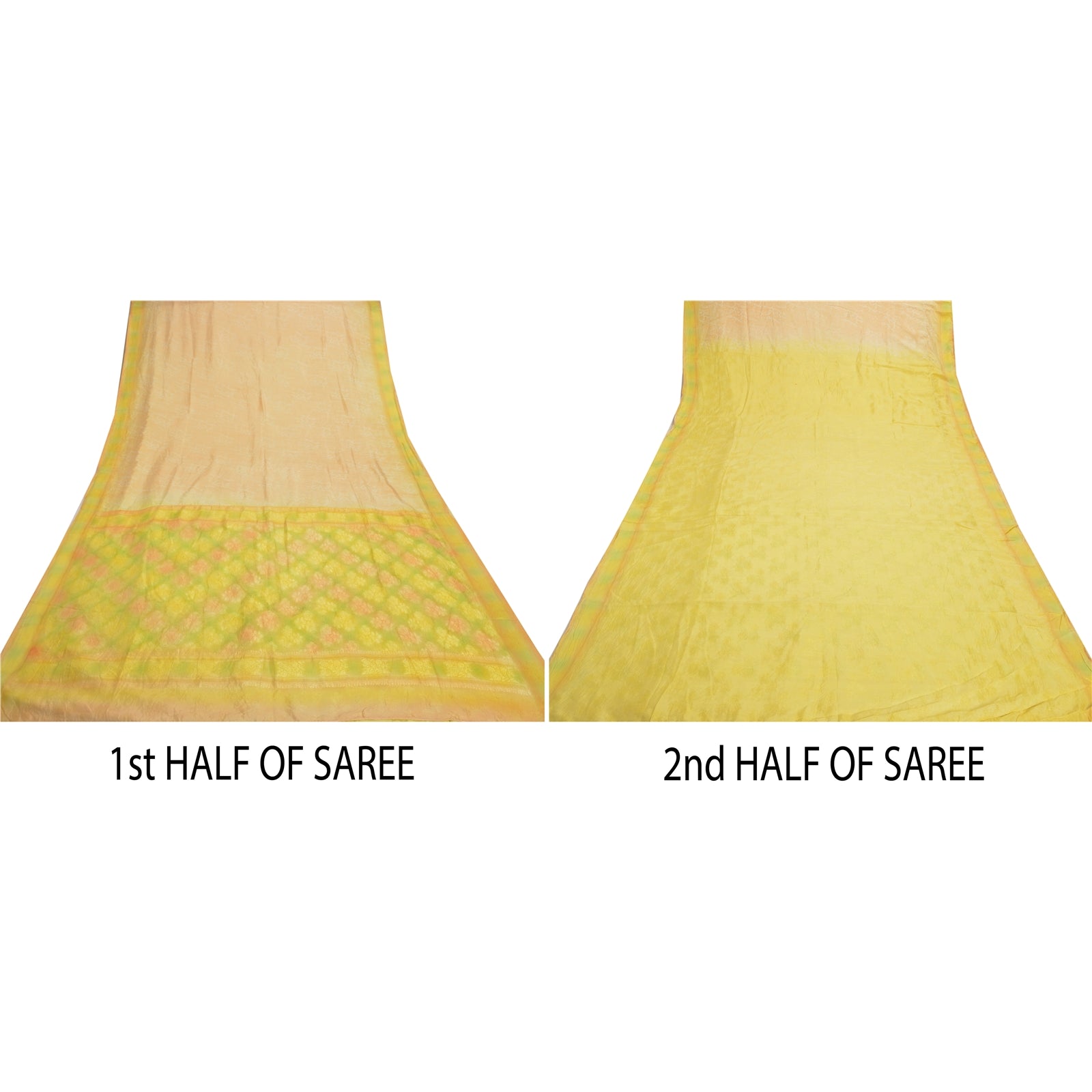 Sanskriti Vintage Peach Indian Sarees Pure Silk Woven Sari 5 Yard Craft Sustainable Fabric