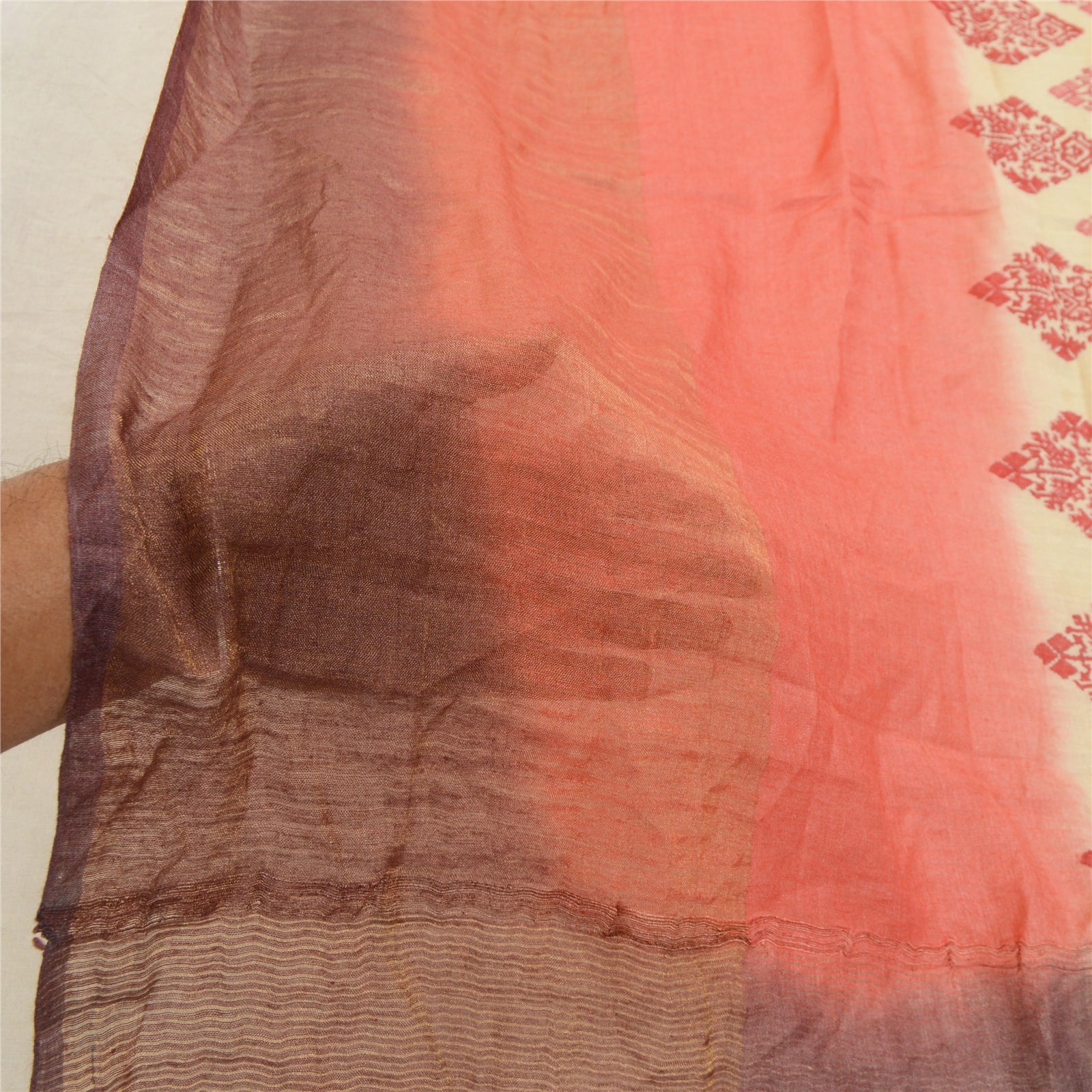 Sanskriti Vintage Pink Long Dupatta Stole Blend Silk Hijab Printed Scarves