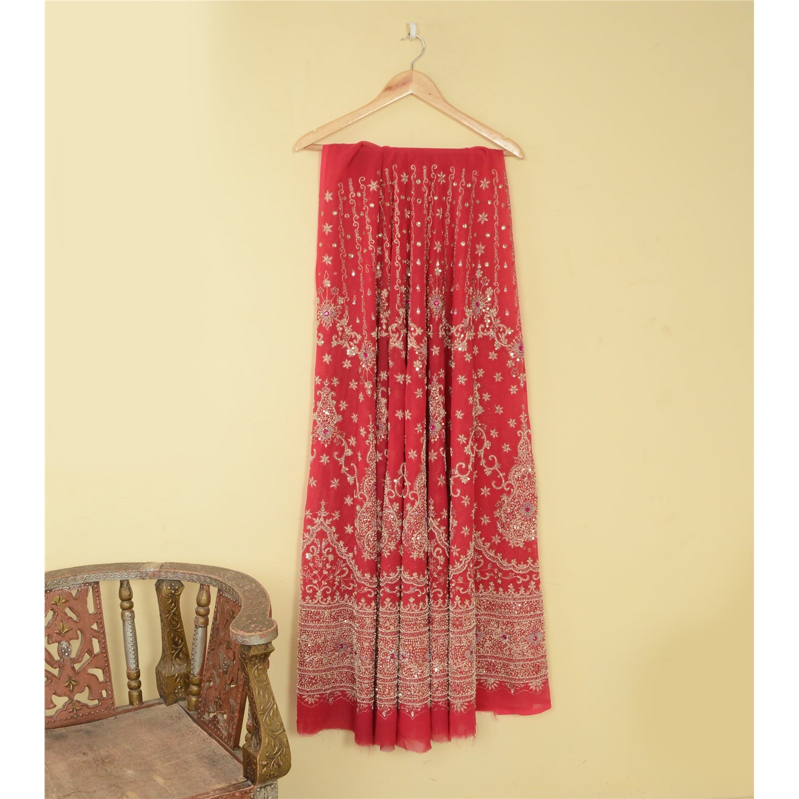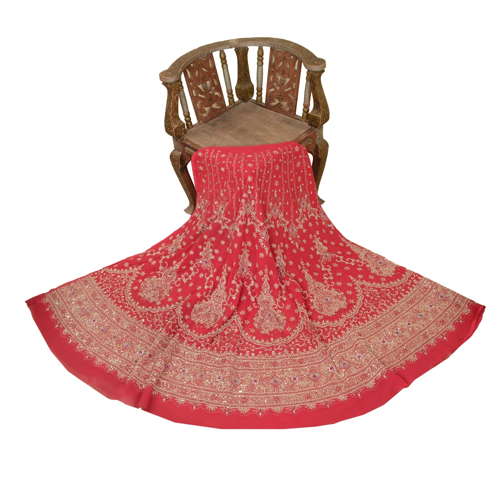 'THE ITEM COLOR OR SHADE MAY BE DARKER OR LIGHTER THAN THE PICTURE.' Sanskriti offers this vintage pink color unstitched long skirt made with 100% Pure Georgette Silk. Antique very heavy hand embroidered skirt. There is so much antique work done in this one, it is fully covered with zardozi work. Bottom of the skirt has floral design embellished with pure metallic golden zari/dabka work, golden/pink zardozi work, golden/green multi reflected sequins, pink/white rhinestone work. All over skirt has similar work with floral design . It is a unstitched skirt with a length of 53 inch and flare of the skirt is 179 inch. Flaunt this heavy skirt with ethnic tops, blouses or kurtis at parties, weddings and other occasions. Antique work skirt with beautiful craftsmanship which I am sure you will truly appreciate. The quality of zari work is amazing, its a pure metallic zari. Some zari work gives an antique look. 'International buyers please note: Import duties, taxes, and charges are not included in the item price or postage cost. These charges are the buyer's responsibility. Please check with your country's customs office to determine what these additional costs will be prior to bidding or buying. Buyer will pay custom duty/tax. It is calculated and charged differently by every country. As a seller I do not have any control over it. VAT or sales tax is calculated by the platform at the time of checkout. Customs charge is payable at the time of delivery.