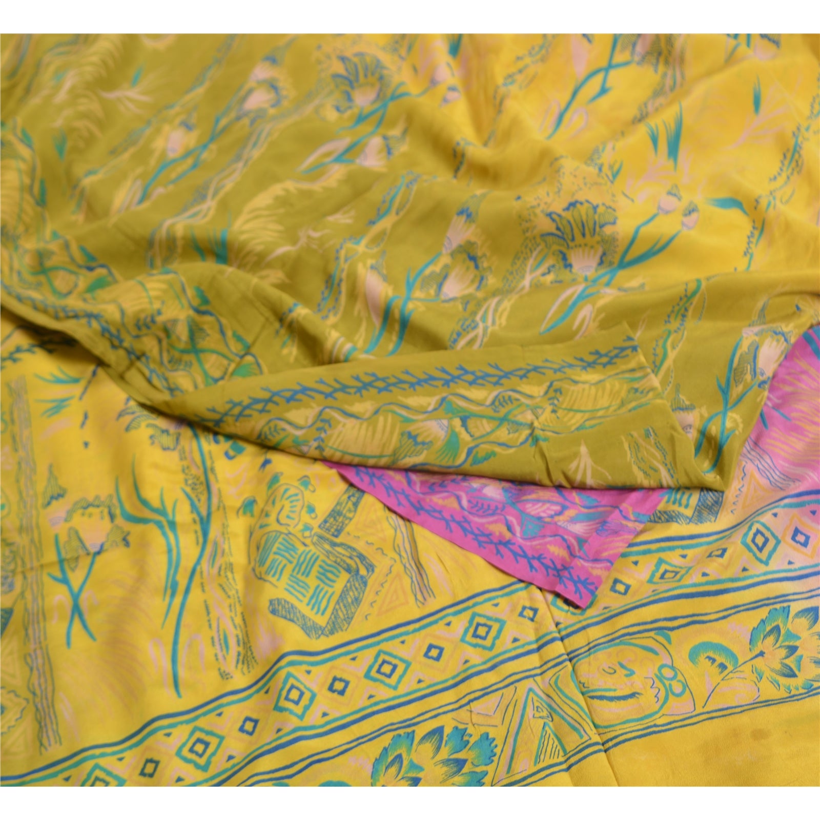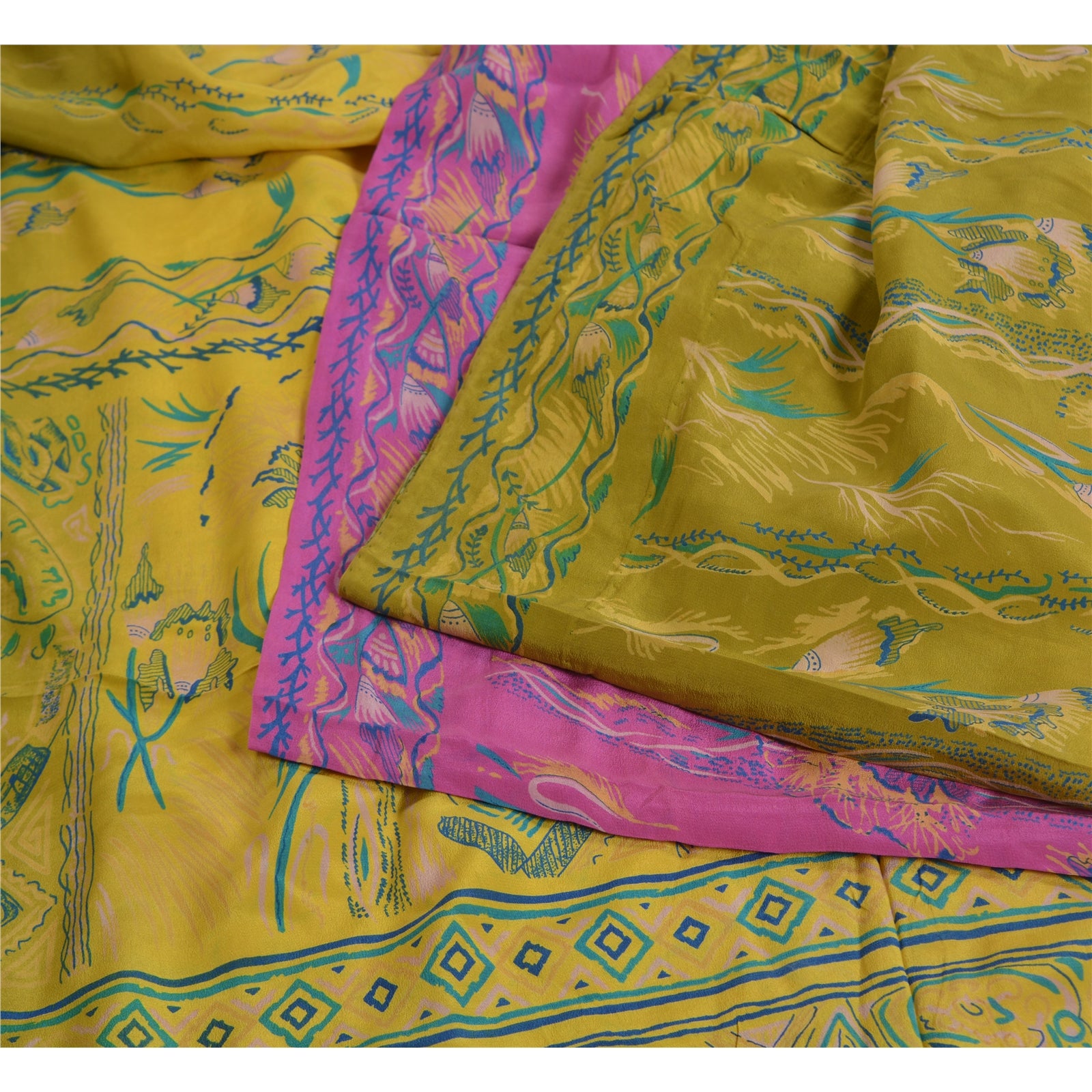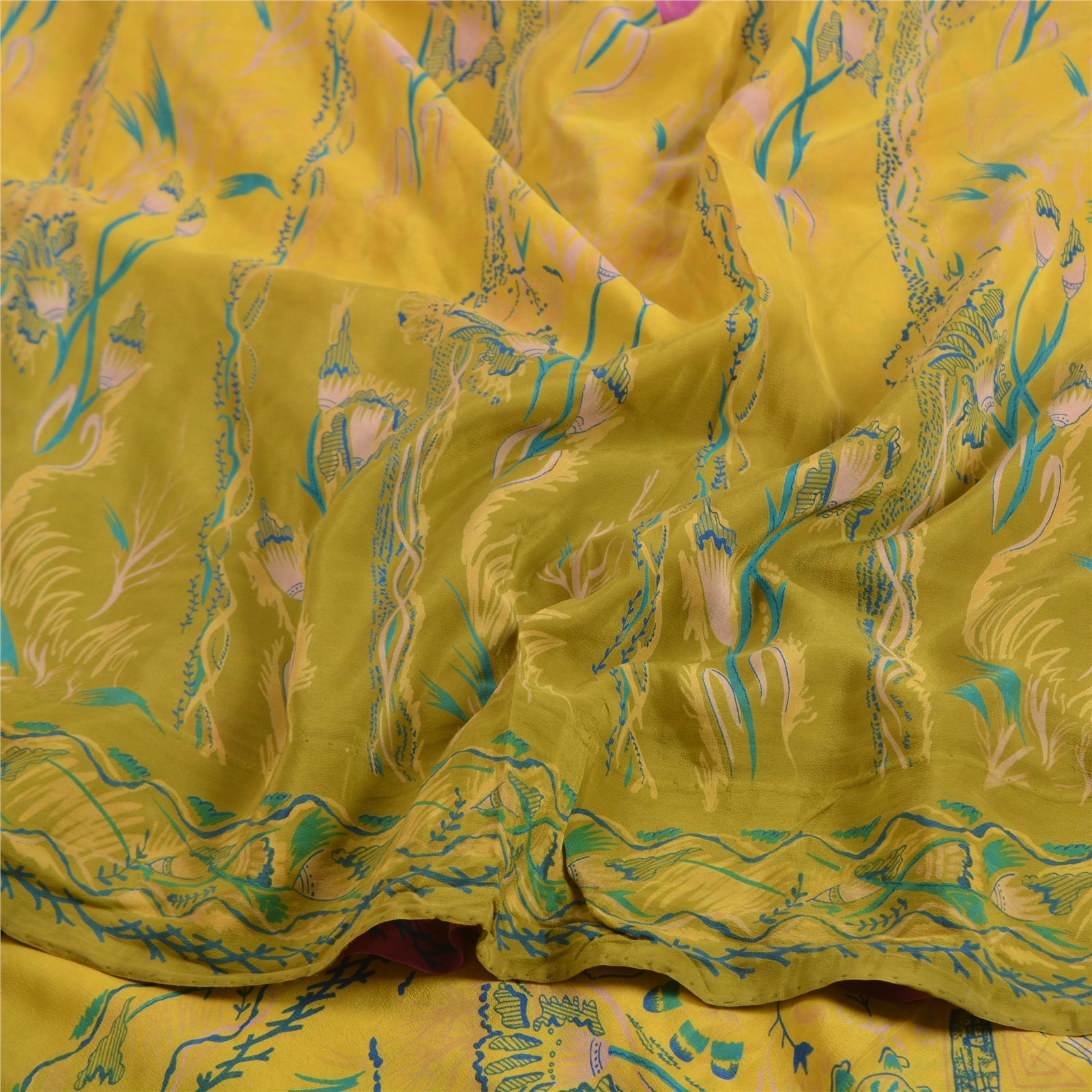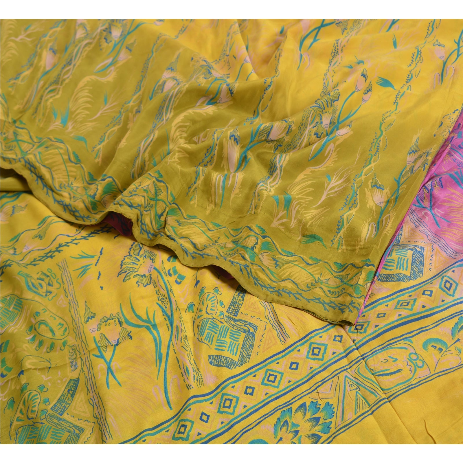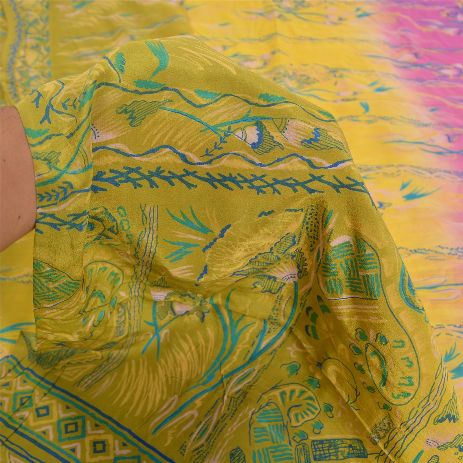 Sanskriti Vintage Purple/Lemon Sarees Pure Crepe Silk Printed Sari Craft Sustainable Fabric