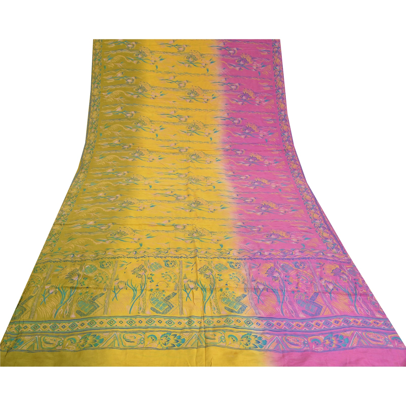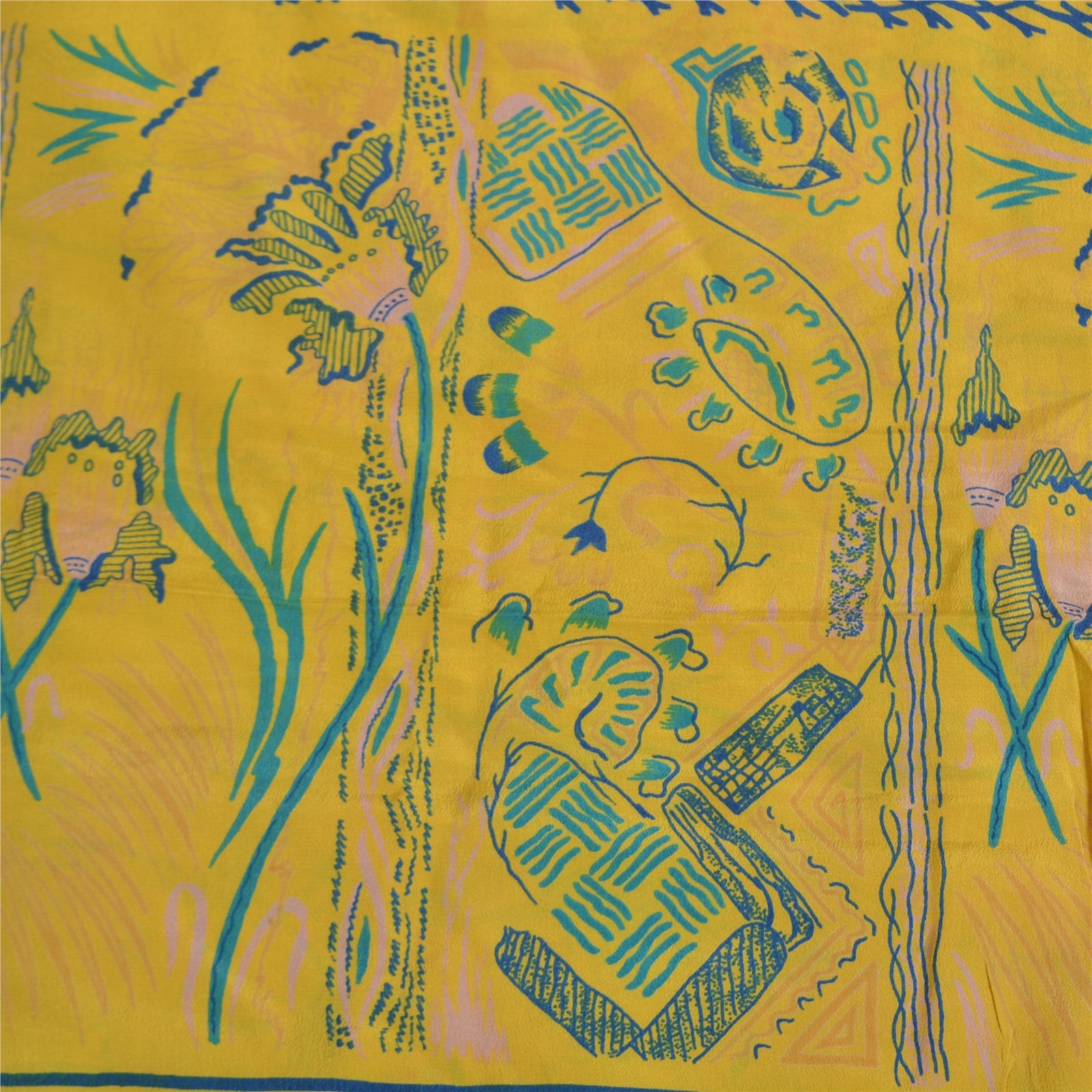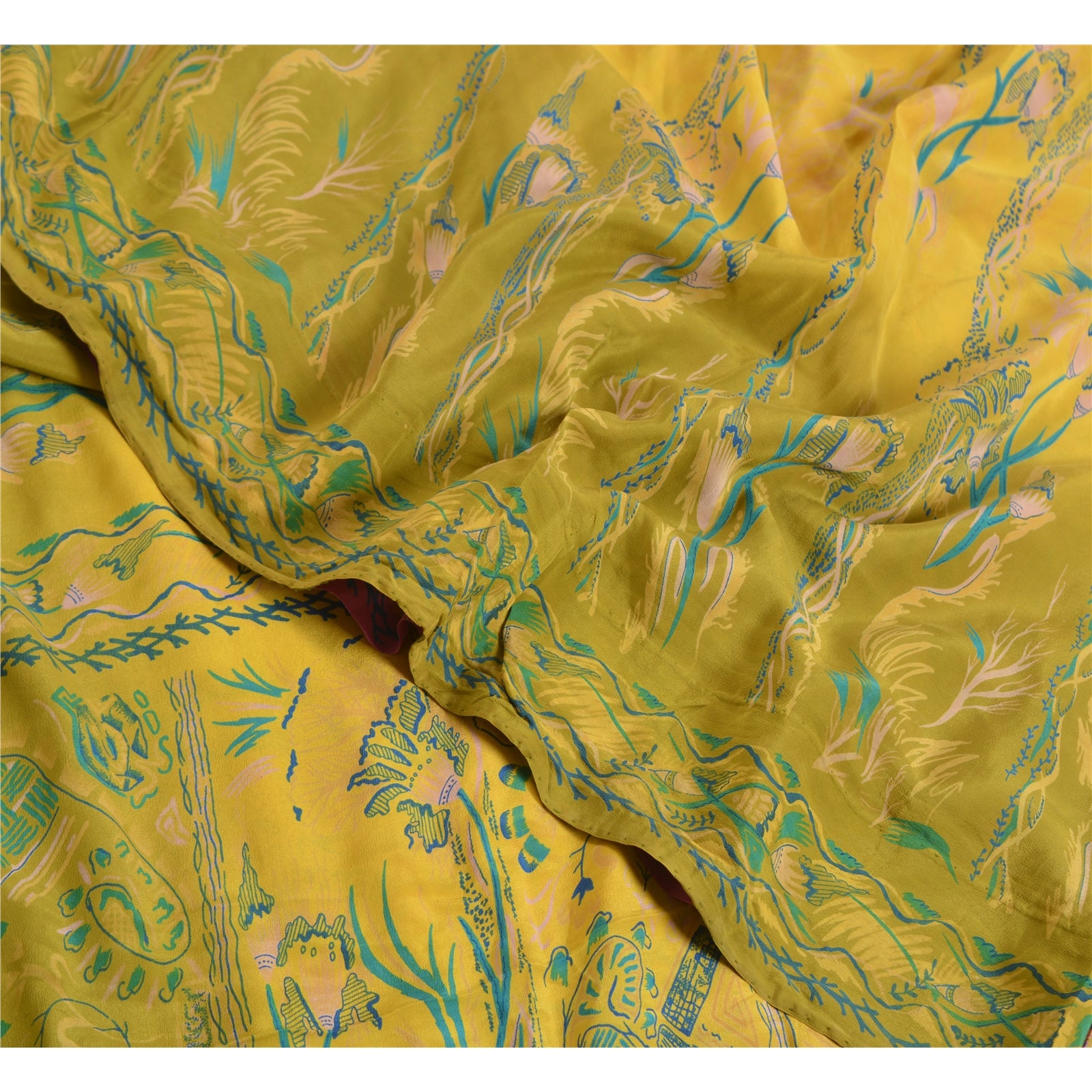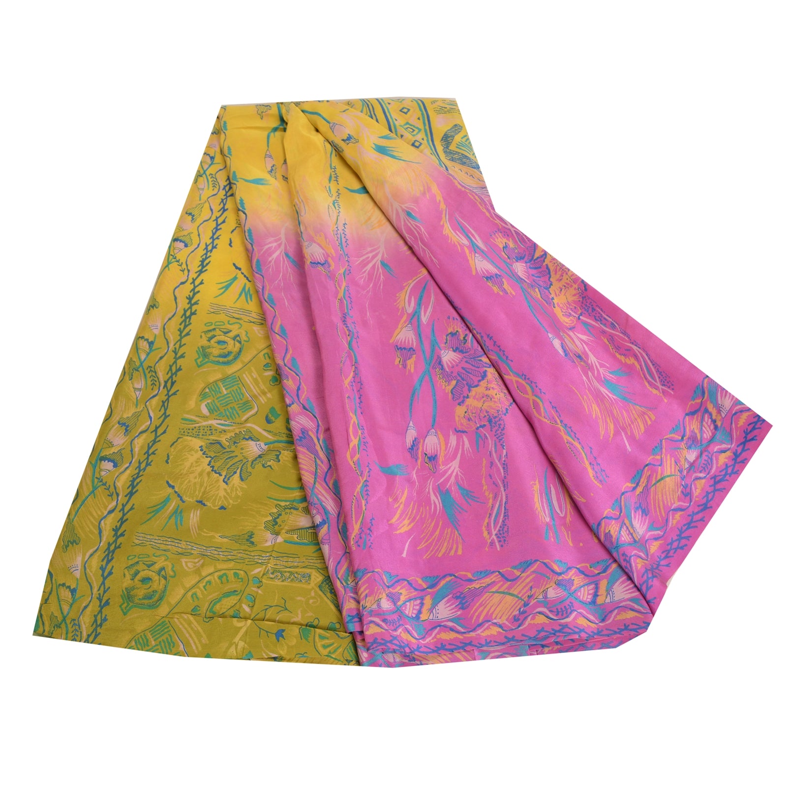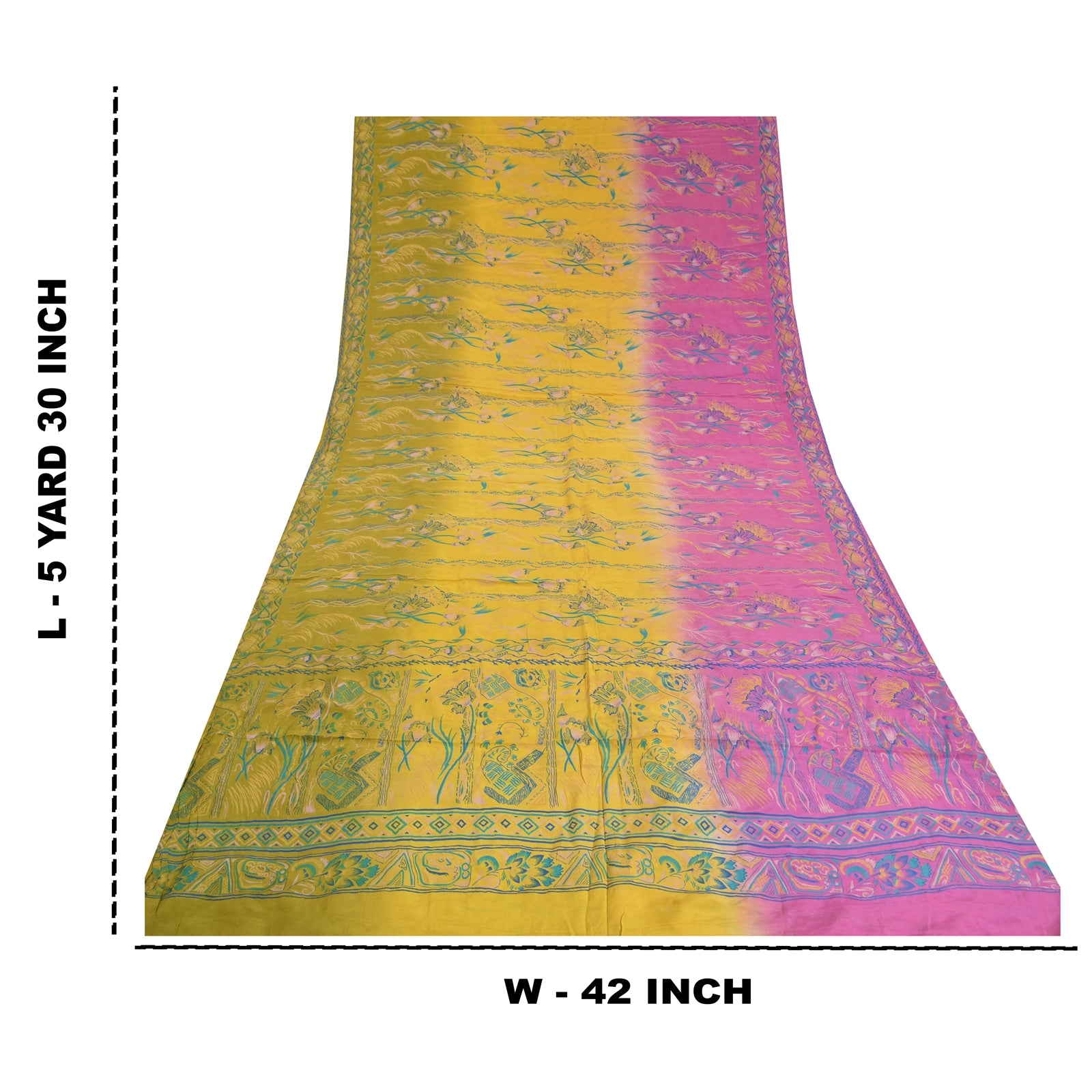 Sanskriti Vintage Purple/Lemon Sarees Pure Crepe Silk Printed Sari Craft Sustainable Fabric