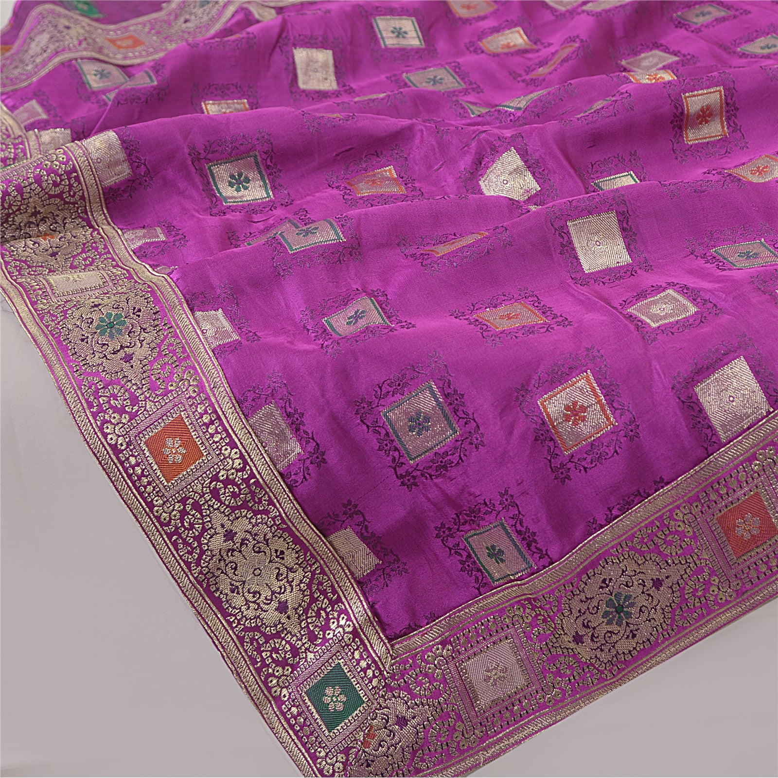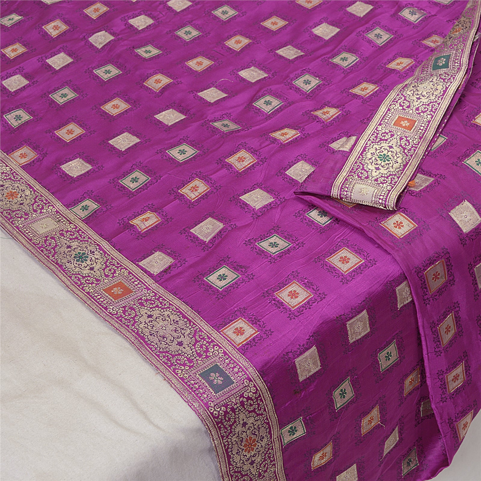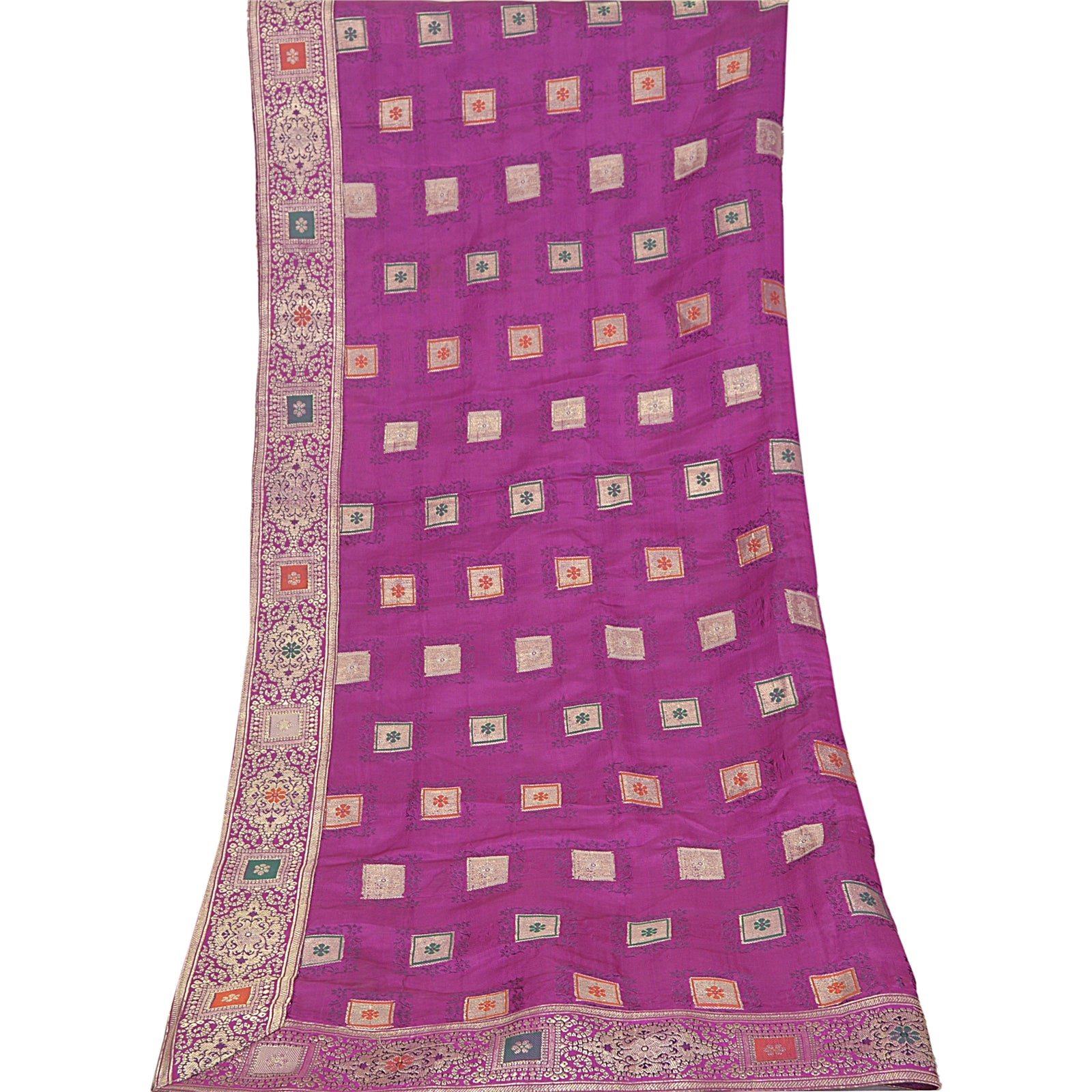 'THE ITEM COLOR OR SHADE MAY BE DARKER OR LIGHTER THAN THE PICTURE.' One Of A Kind Item. Mesmerizing full woven brocade/banarasi dupatta in 100% pure satin stole/Sustainable Fabric. Amazing purple color base Sustainable Fabric along with zari work on the dupatta is adding grace to the dupatta. Border features floral & paisley pattern with embellished with metallic golden zari work, woven thread work are looking exquisite. Also you can see similar zari & thread work in center part of the dupatta/stole. An amazing piece of dupatta. Bandhani design looks fabulous. A very traditional dupatta with beautiful craftsmanship which I am sure you will truly appreciate. 'International buyers please note: Import duties, taxes, and charges are not included in the item price or postage cost. These charges are the buyer's responsibility. Please check with your country's customs office to determine what these additional costs will be prior to bidding or buying. Buyer will pay custom duty/tax. It is calculated and charged differently by every country. As a seller I do not have any control over it. VAT or sales tax is calculated by the platform at the time of checkout. Customs charge is payable at the time of delivery.'