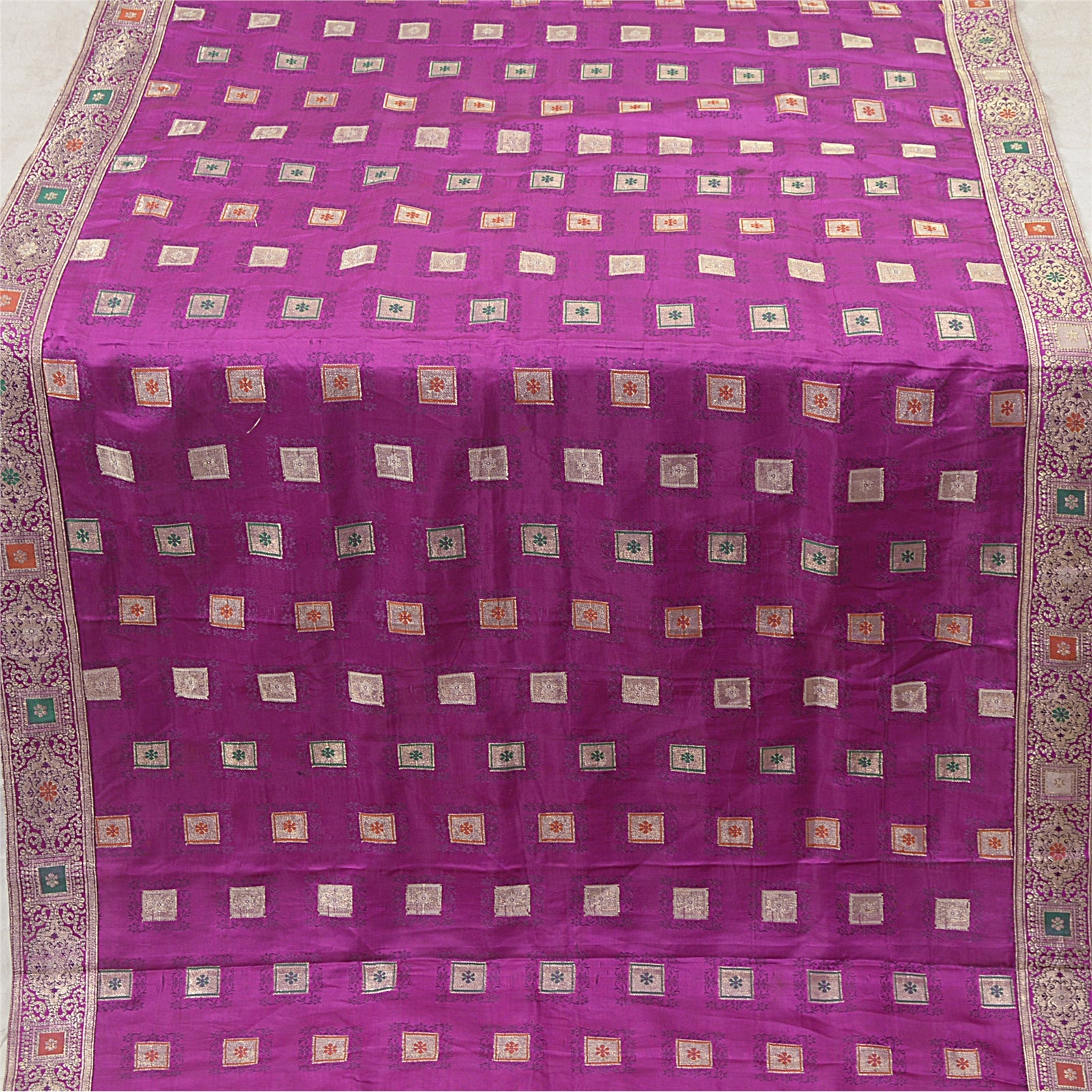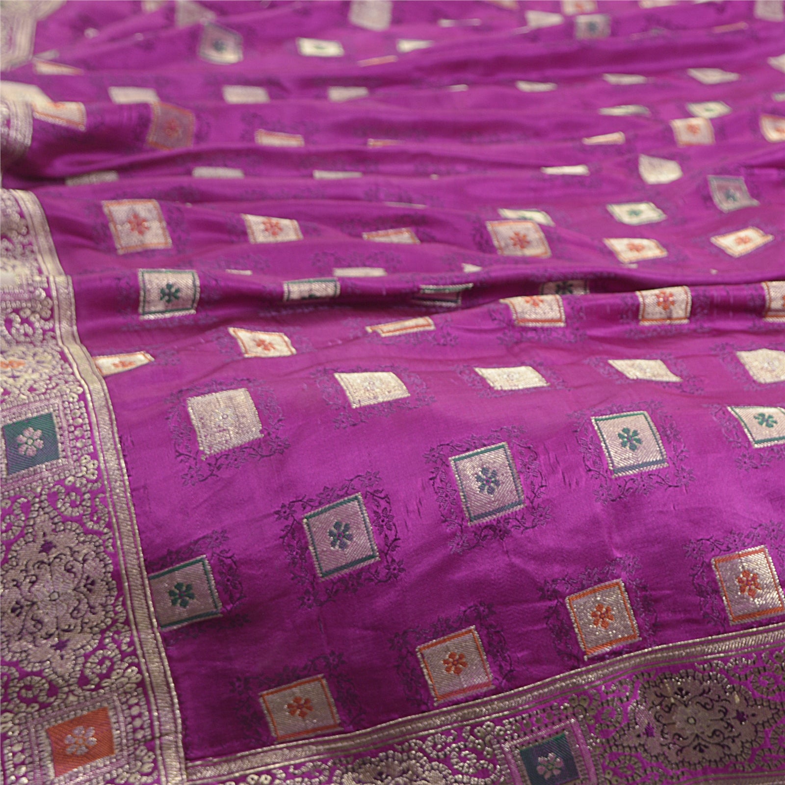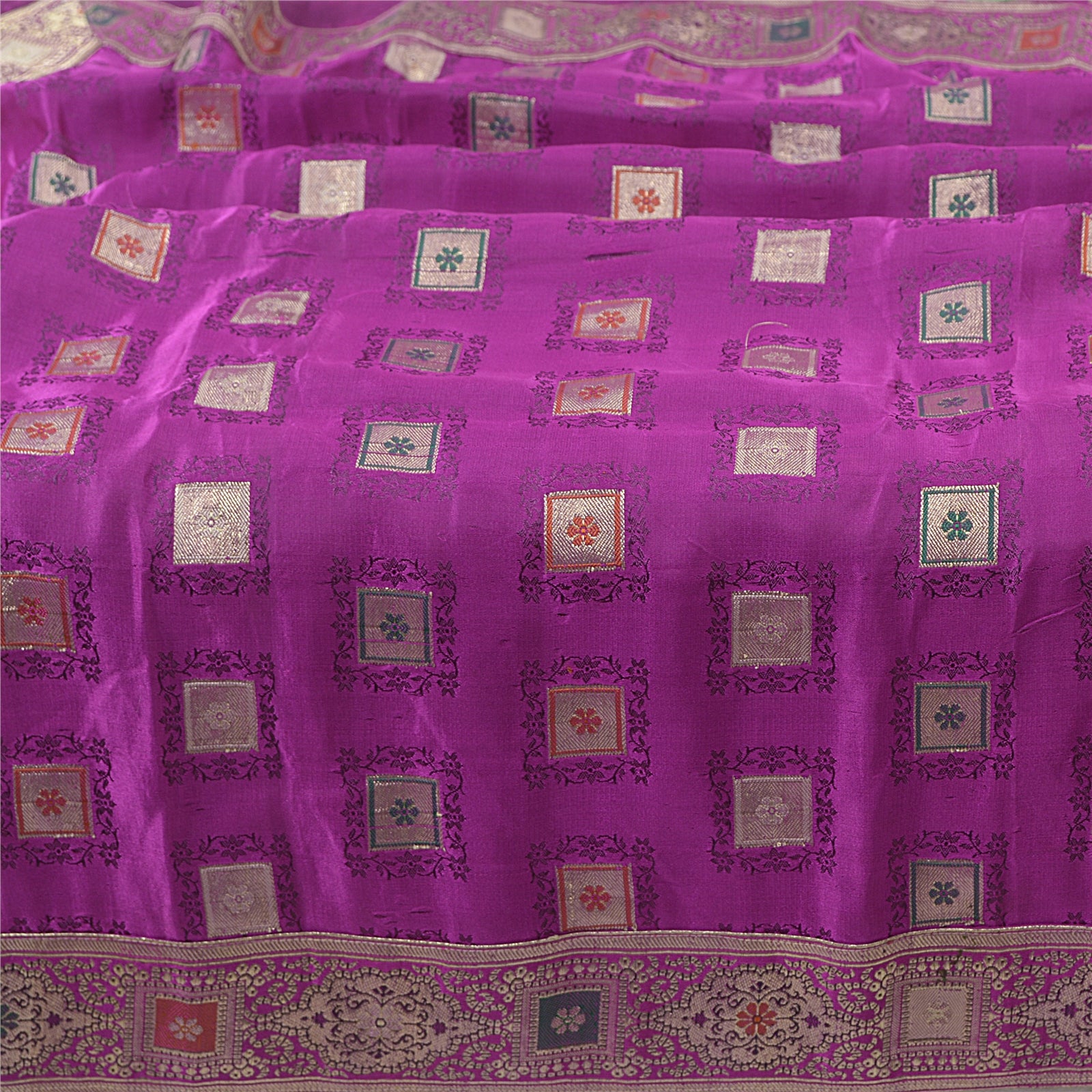 'THE ITEM COLOR OR SHADE MAY BE DARKER OR LIGHTER THAN THE PICTURE.' One Of A Kind Item. Mesmerizing full woven brocade/banarasi dupatta in 100% pure satin stole/Sustainable Fabric. Amazing purple color base Sustainable Fabric along with zari work on the dupatta is adding grace to the dupatta. Border features floral & paisley pattern with embellished with metallic golden zari work, woven thread work are looking exquisite. Also you can see similar zari & thread work in center part of the dupatta/stole. An amazing piece of dupatta. Bandhani design looks fabulous. A very traditional dupatta with beautiful craftsmanship which I am sure you will truly appreciate. 'International buyers please note: Import duties, taxes, and charges are not included in the item price or postage cost. These charges are the buyer's responsibility. Please check with your country's customs office to determine what these additional costs will be prior to bidding or buying. Buyer will pay custom duty/tax. It is calculated and charged differently by every country. As a seller I do not have any control over it. VAT or sales tax is calculated by the platform at the time of checkout. Customs charge is payable at the time of delivery.'
