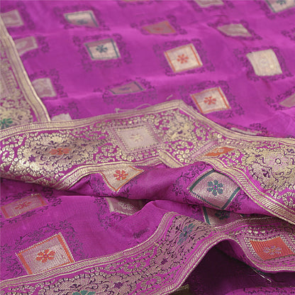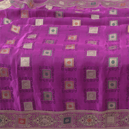 Sanskriti Vintage Purple Long Dupatta/Stole Pure Satin Woven Brocade/Banarasi