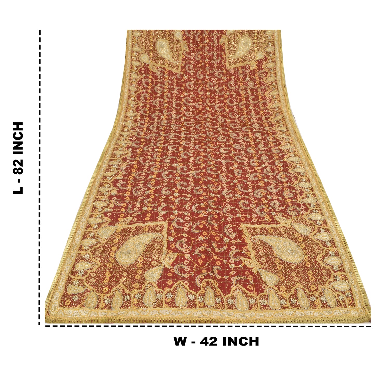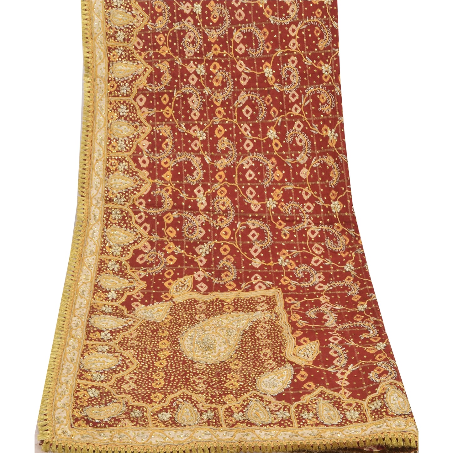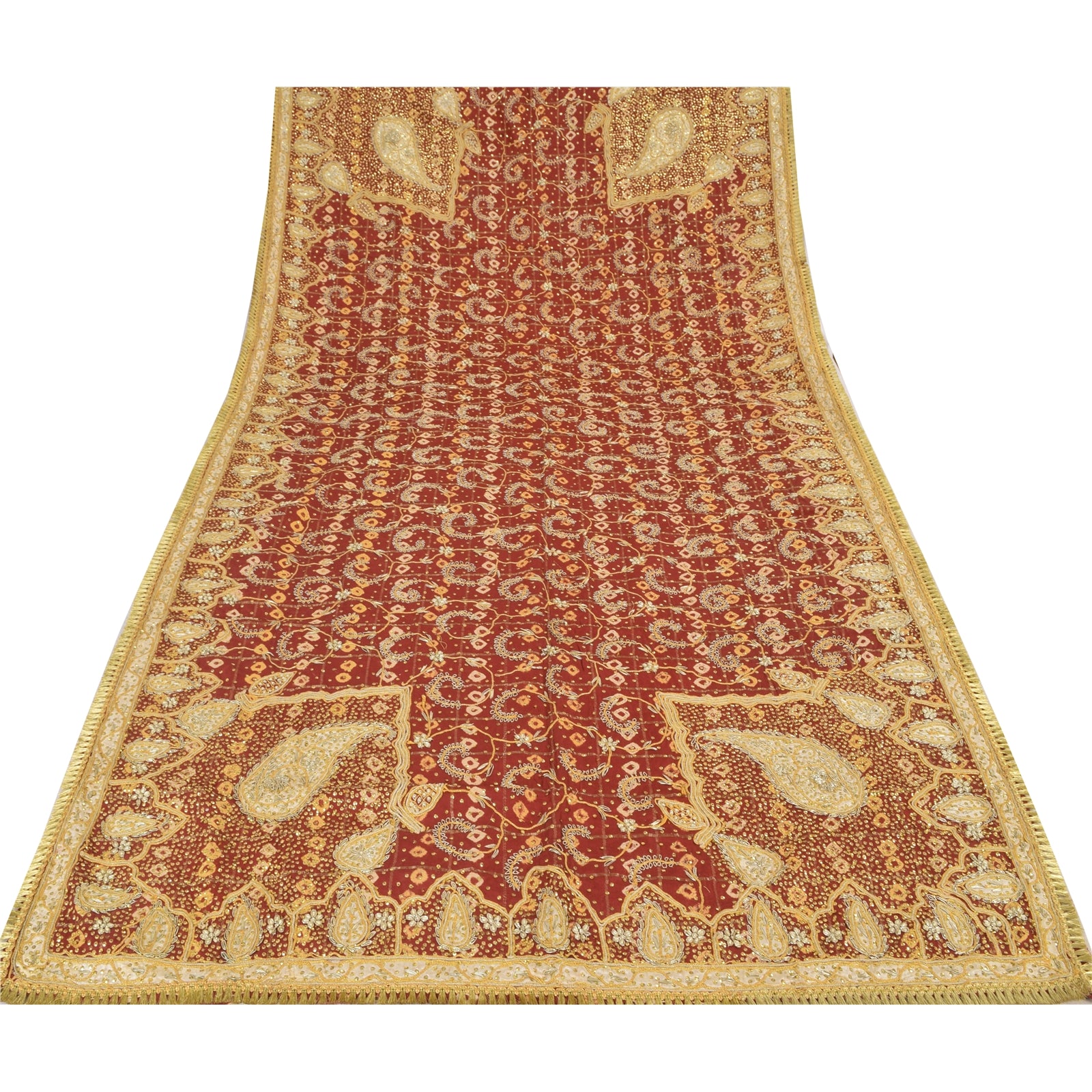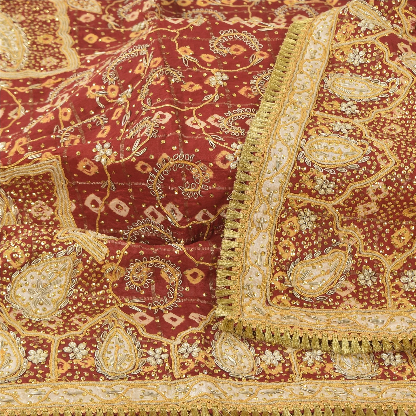 'THE ITEM COLOR OR SHADE MAY BE DARKER OR LIGHTER THAN THE PICTURE.' Beautiful Red colored pure cotton hand embroidered bandhani printed long scarf/dupatta. Center portion of the dupatta has floral design with zardozi work. Border features has floral design embellished with silver zardozi/dabka work, golden sequins work, pearl beads work & golden & white dori work is really enhancing beauty of the dupatta/stole & printed work. Dupatta has golden lace on both ends of borders. This dupatta/stole can be used for various crafting ideas too. Use it for dress designing, as a throw, as window dressing, upholstery, table linen and much more. Let your creative juices flow. Shipping note: International buyers please note: Import duties, taxes, and charges are not included in the item price or postage cost. These charges are the buyer's responsibility. Please check with your country's customs office to determine what these additional costs will be prior to bidding or buying. Buyer will pay custom duty/tax. It is calculated and charged differently by every country. As a seller I do not have any control over it. VAT or sales tax is calculated by the platform at the time of checkout. Customs charge is payable at the time of delivery.' SKU: HD-7732
