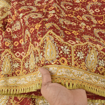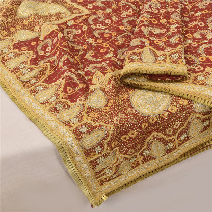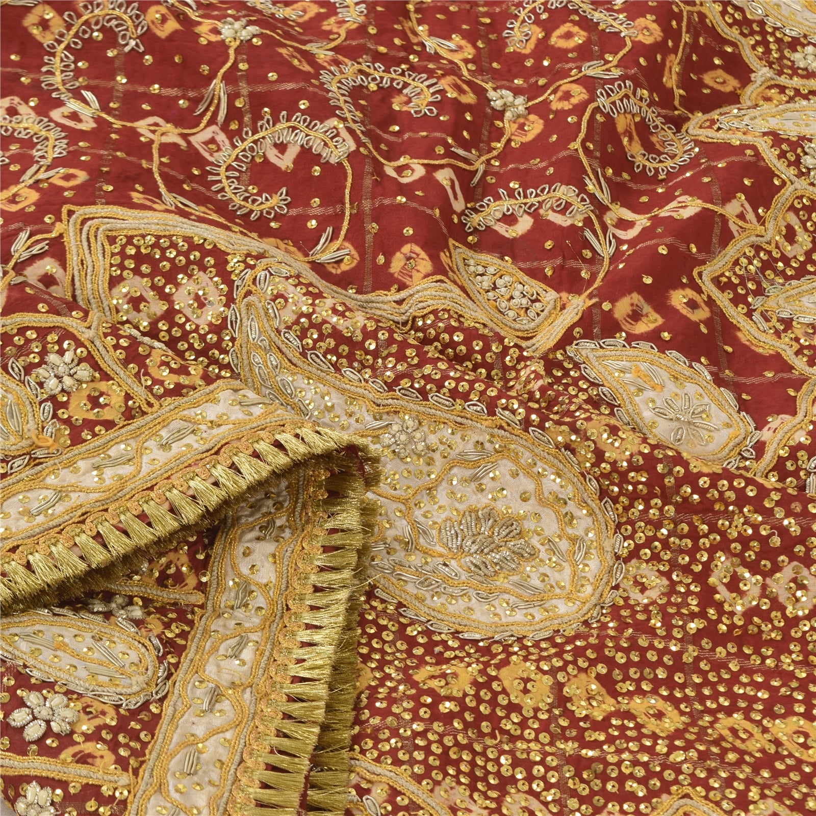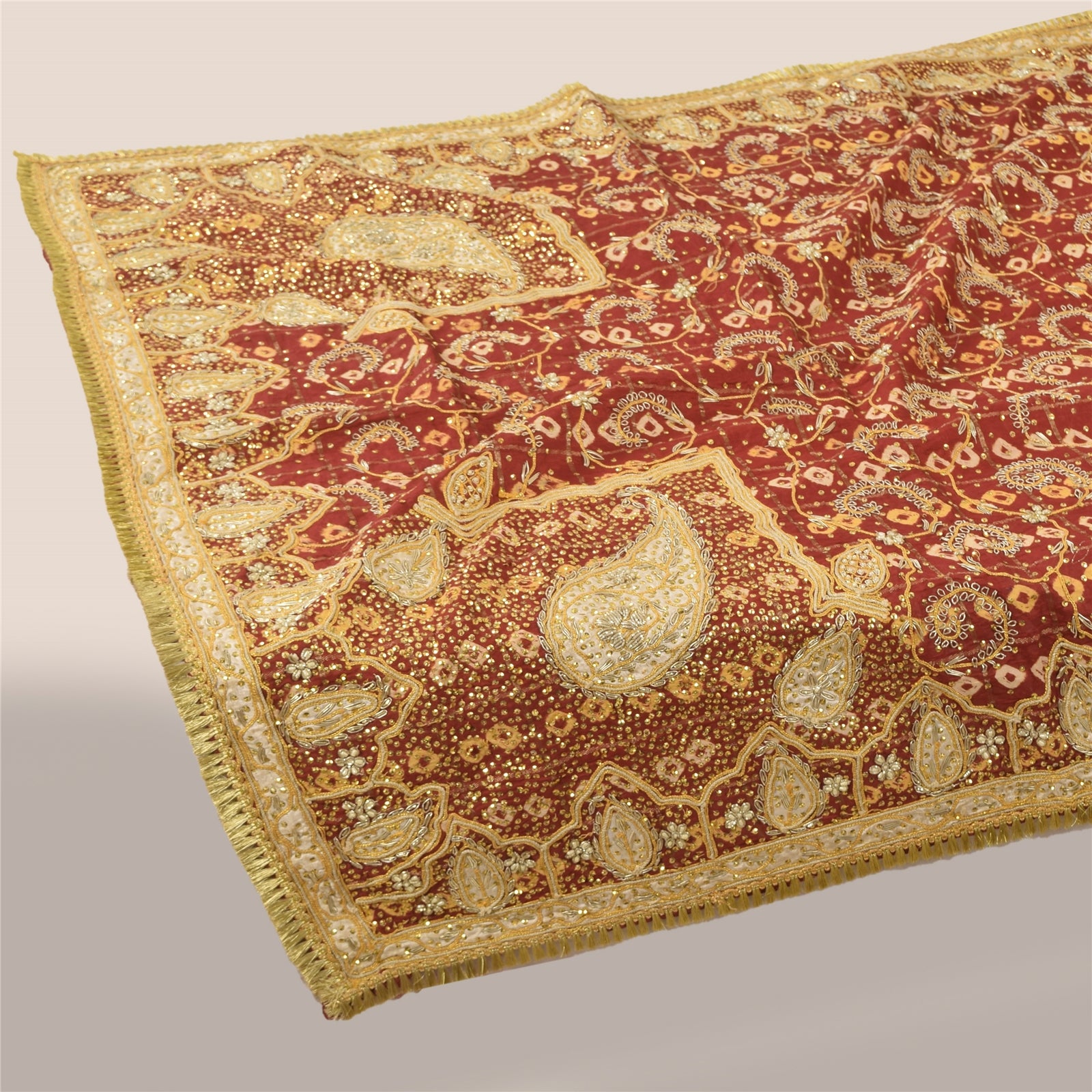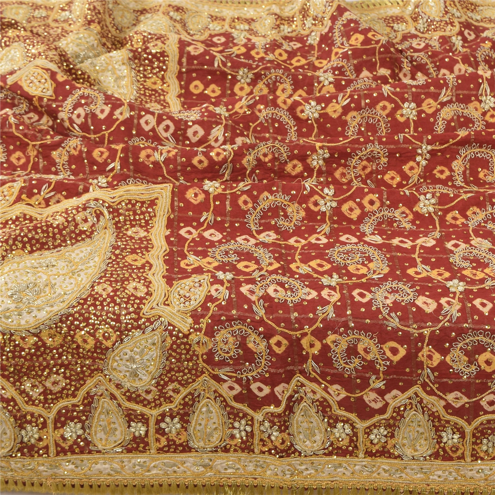 'THE ITEM COLOR OR SHADE MAY BE DARKER OR LIGHTER THAN THE PICTURE.' Beautiful Red colored pure cotton hand embroidered bandhani printed long scarf/dupatta. Center portion of the dupatta has floral design with zardozi work. Border features has floral design embellished with silver zardozi/dabka work, golden sequins work, pearl beads work & golden & white dori work is really enhancing beauty of the dupatta/stole & printed work. Dupatta has golden lace on both ends of borders. This dupatta/stole can be used for various crafting ideas too. Use it for dress designing, as a throw, as window dressing, upholstery, table linen and much more. Let your creative juices flow. Shipping note: International buyers please note: Import duties, taxes, and charges are not included in the item price or postage cost. These charges are the buyer's responsibility. Please check with your country's customs office to determine what these additional costs will be prior to bidding or buying. Buyer will pay custom duty/tax. It is calculated and charged differently by every country. As a seller I do not have any control over it. VAT or sales tax is calculated by the platform at the time of checkout. Customs charge is payable at the time of delivery.' SKU: HD-7732