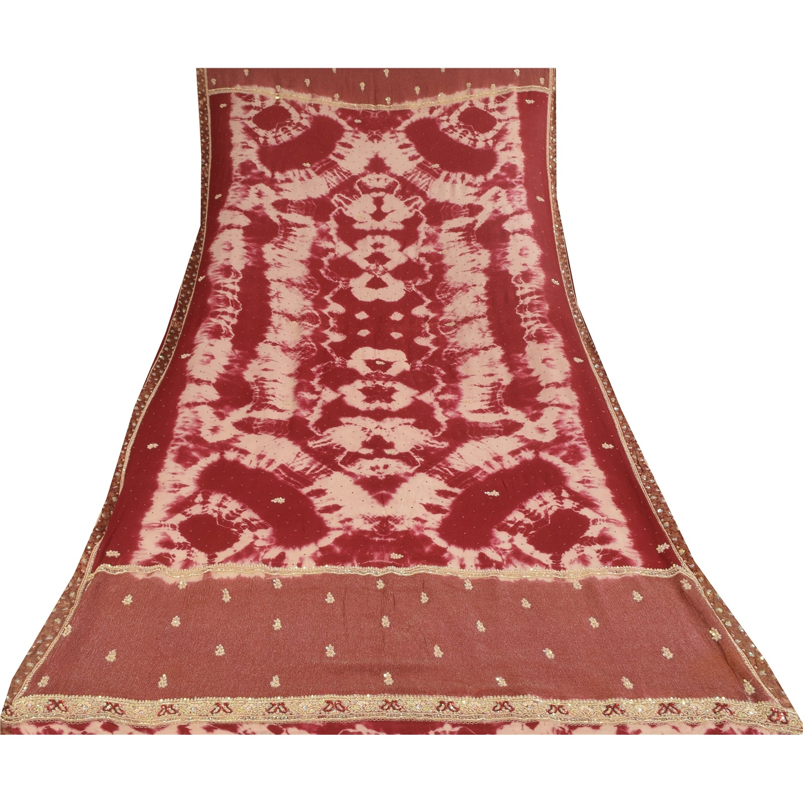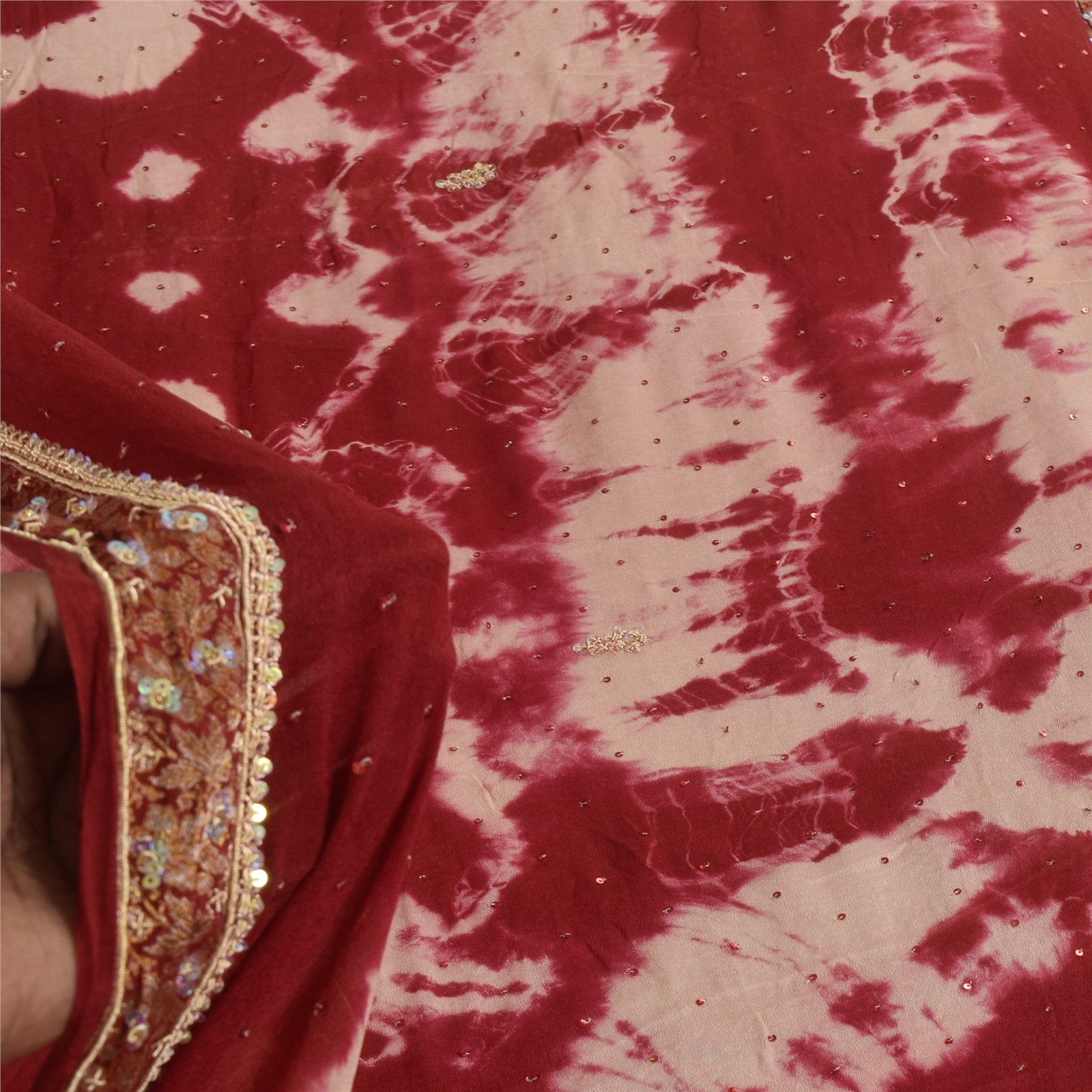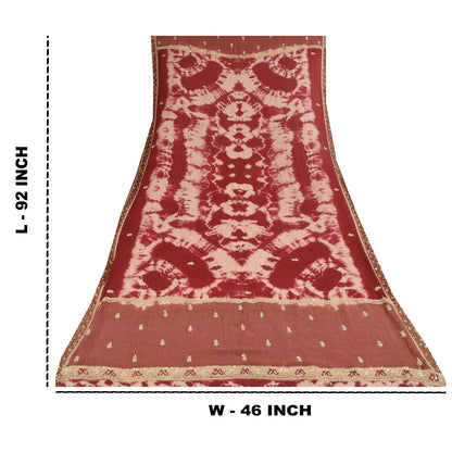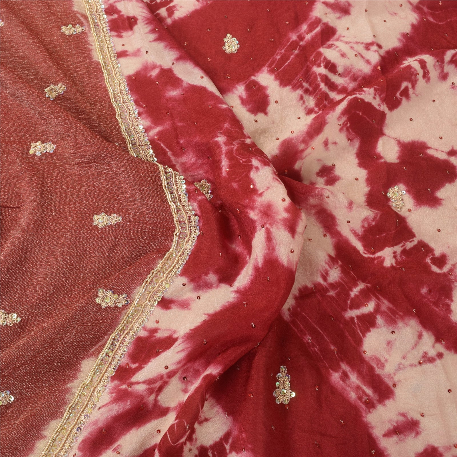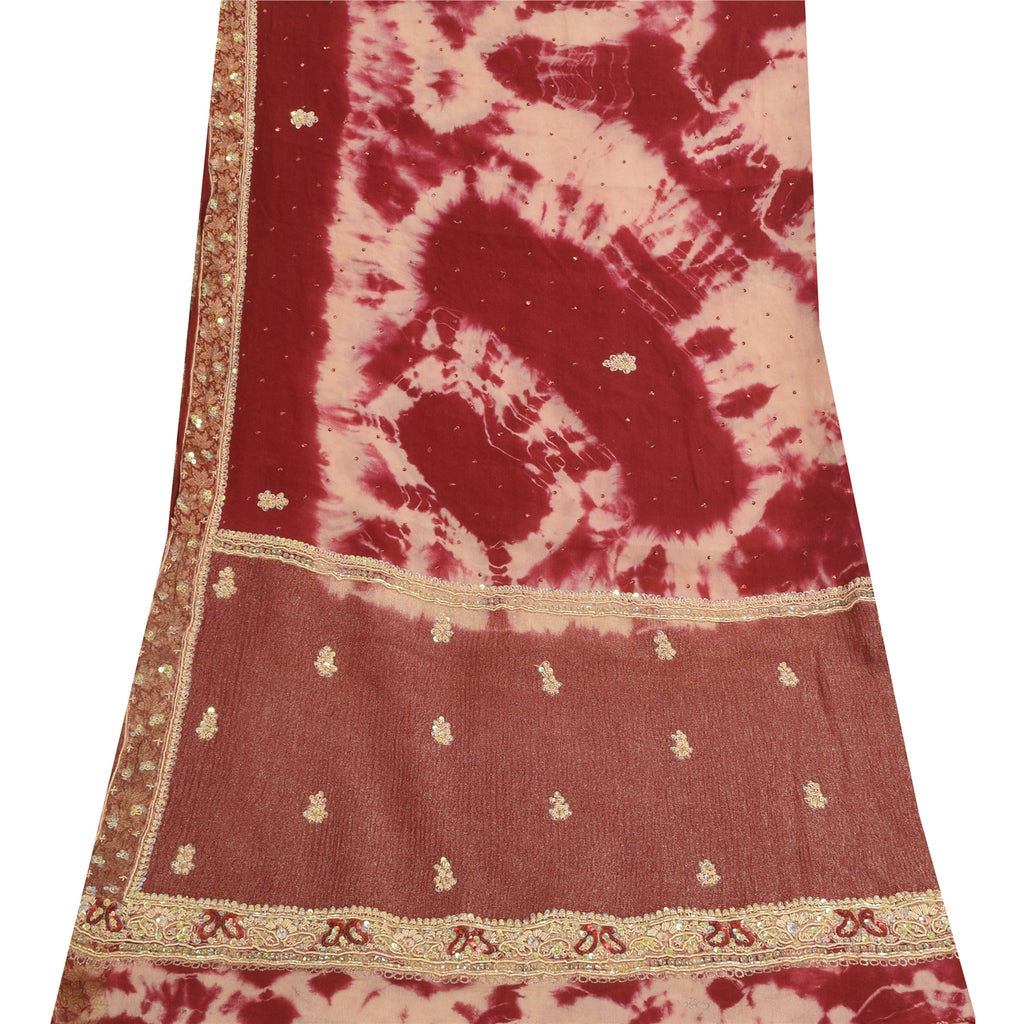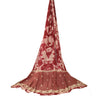 Sanskriti Vintage Red Dupatta Long Stole Pure Silk Hand Beaded Batik Wrap Veil