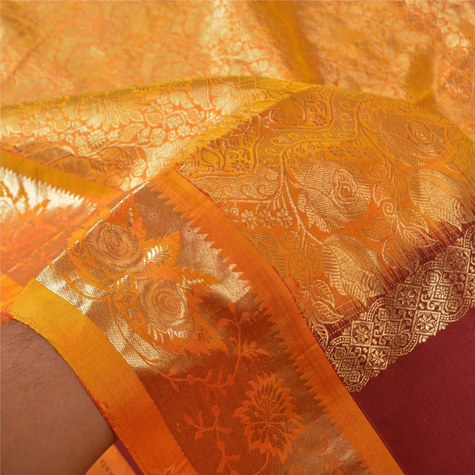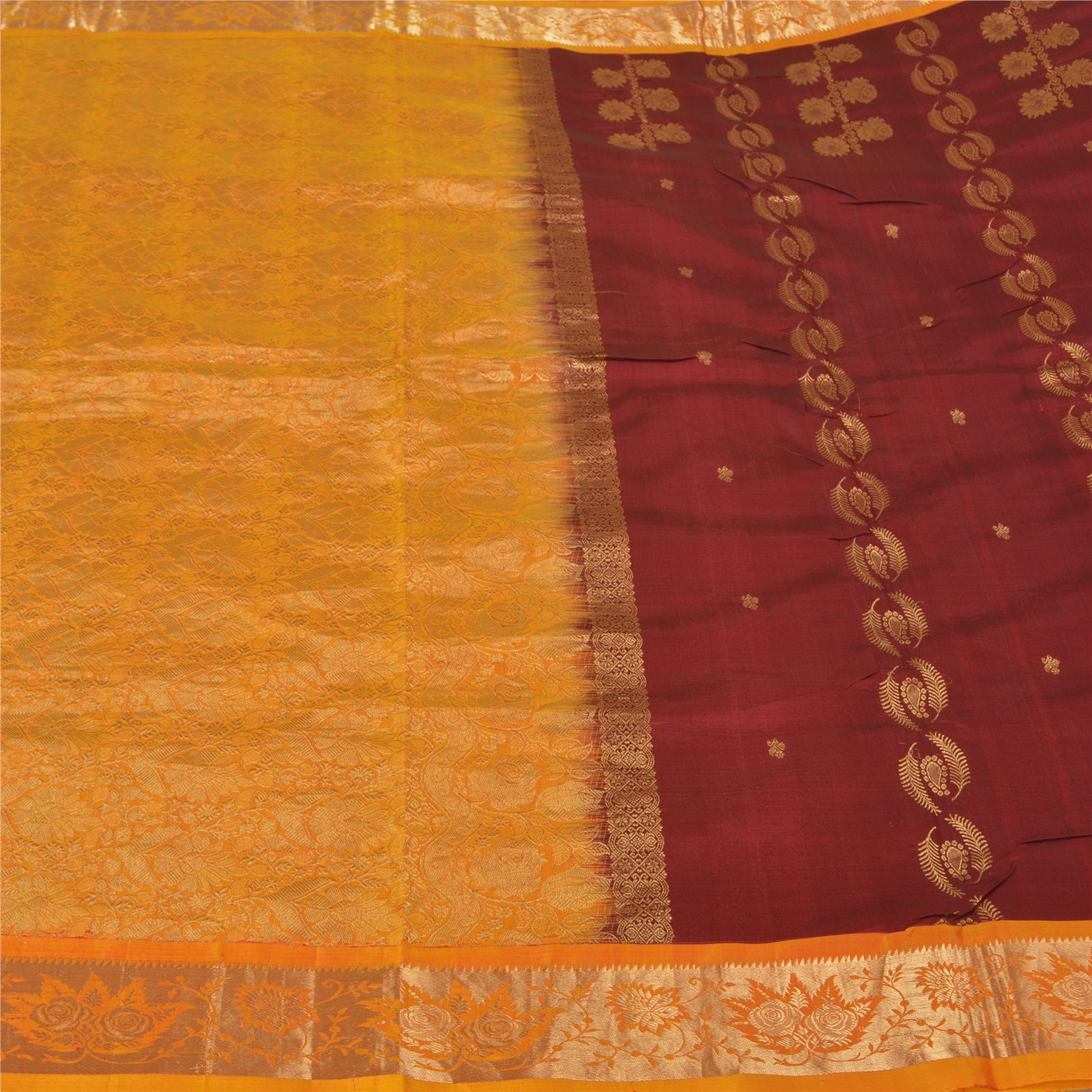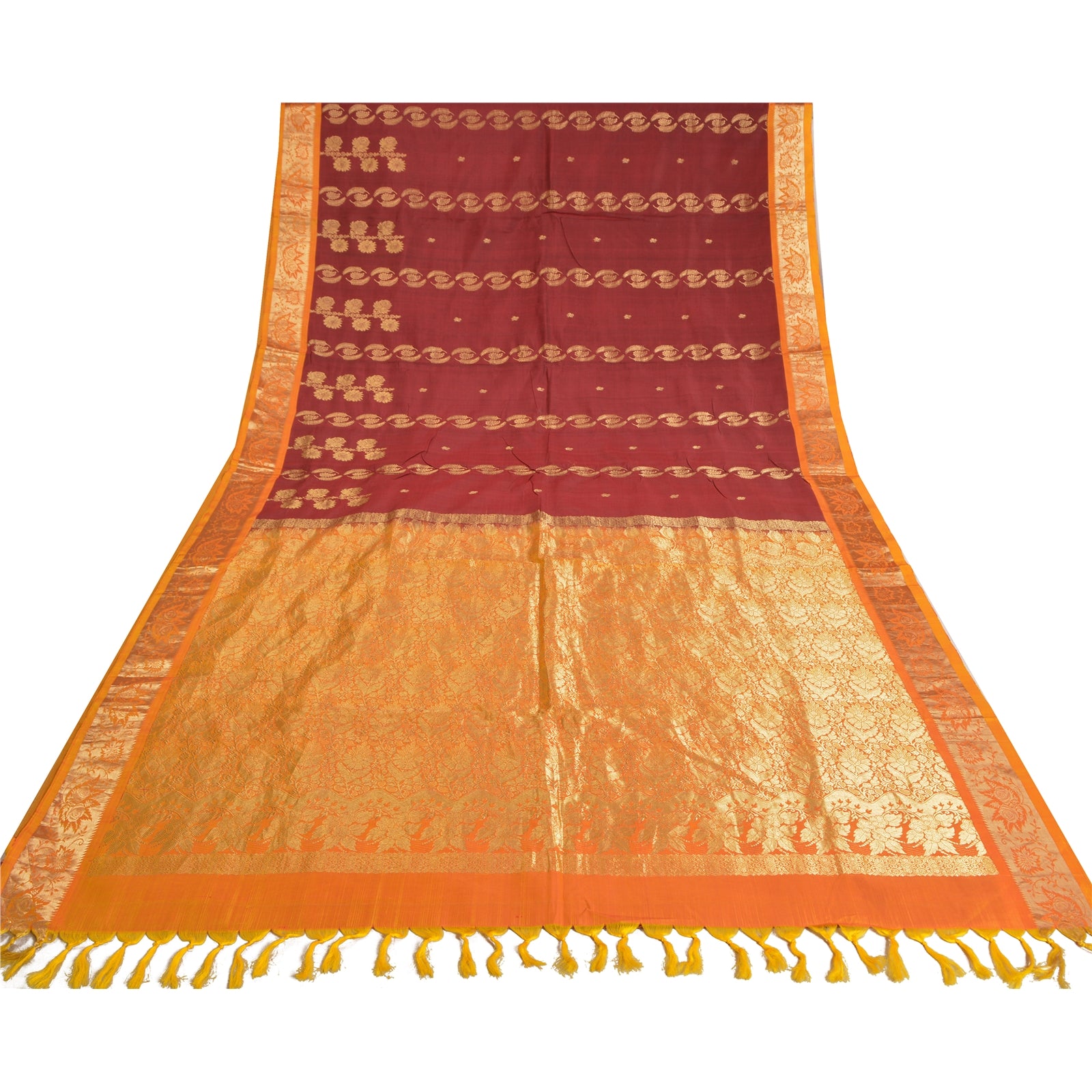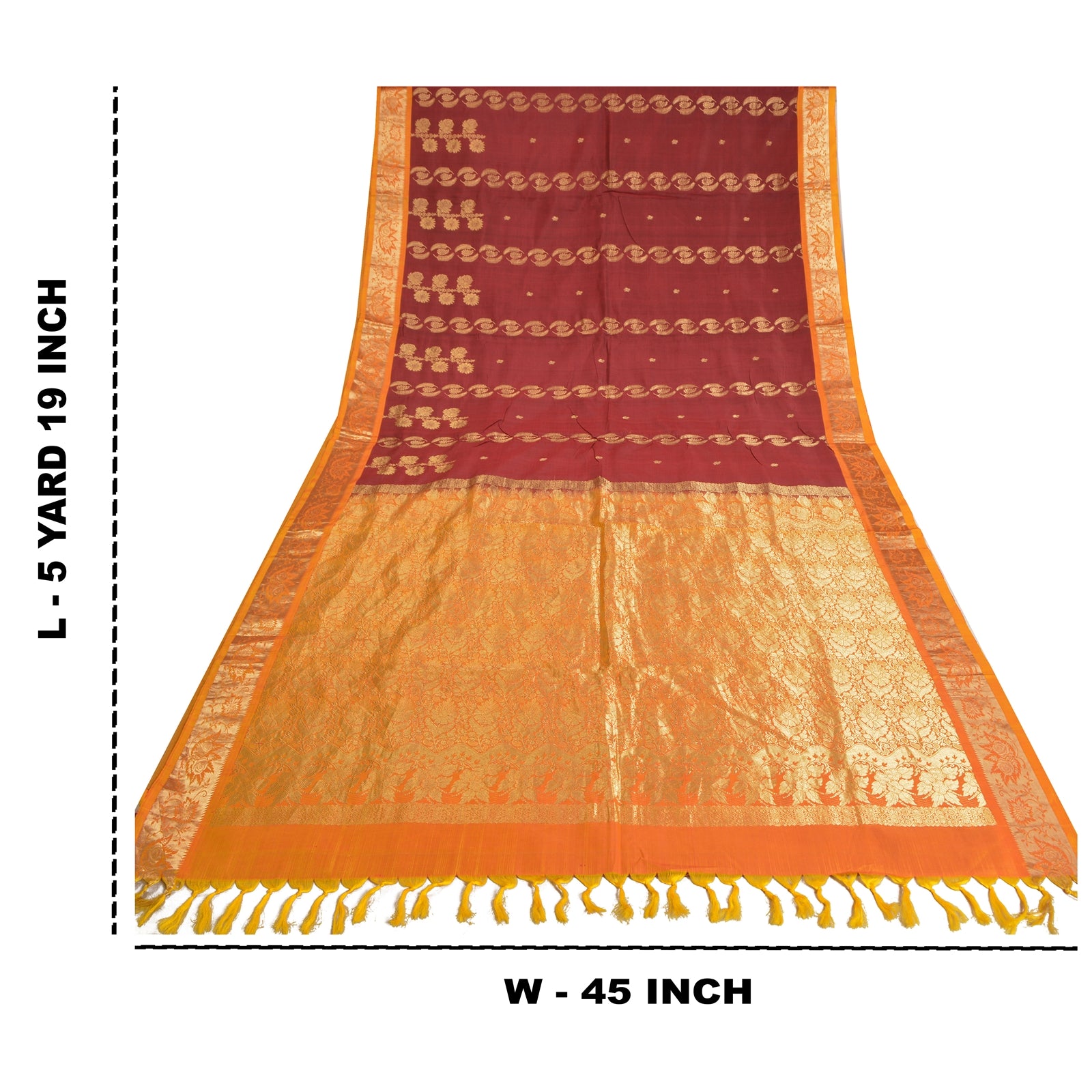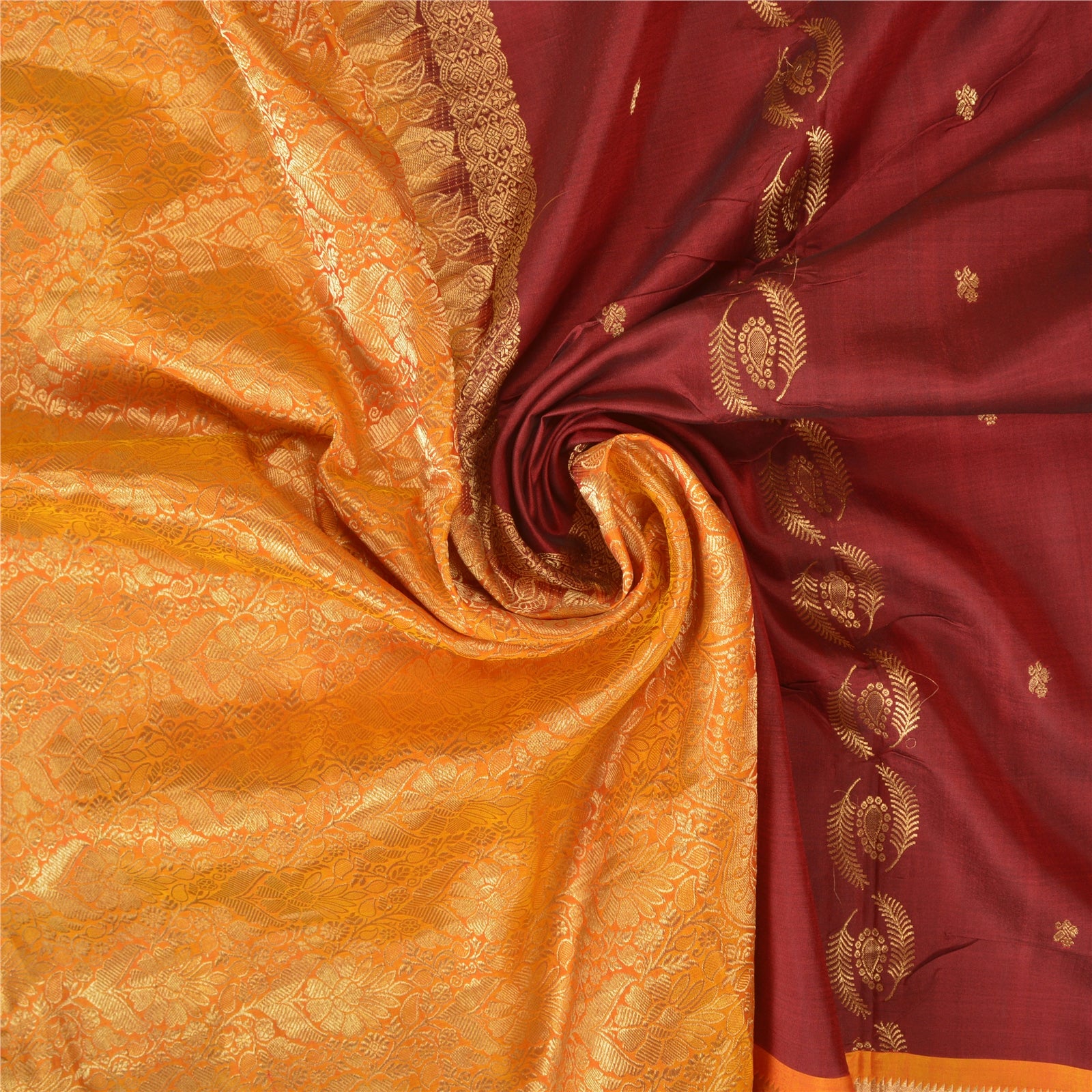 'THE ITEM COLOR OR SHADE MAY BE DARKER OR LIGHTER THAN THE PICTURE.' Outstanding dark red & yellow colored pure satin silk woven brocade heavy saree. Pallu & Border Features are floral pattern embellished with golden zari work. You can see matching fringes on pallu. You can see similar zari woven work with floral design in center part of saree. This heavy saree can be used for various crafting ideas too. Use it for dress designing, as a throw, as window dressing, upholstery, table linen and much more. Let your creative juices flow! 'International buyers please note: Import duties, taxes, and charges are not included in the item price or postage cost. These charges are the buyer's responsibility. Please check with your country's customs office to determine what these additional costs will be prior to bidding or buying. Buyer will pay custom duty/tax. It is calculated and charged differently by every country. As a seller I do not have any control over it. VAT or sales tax is calculated by the platform at the time of checkout. Customs charge is payable at the time of delivery.