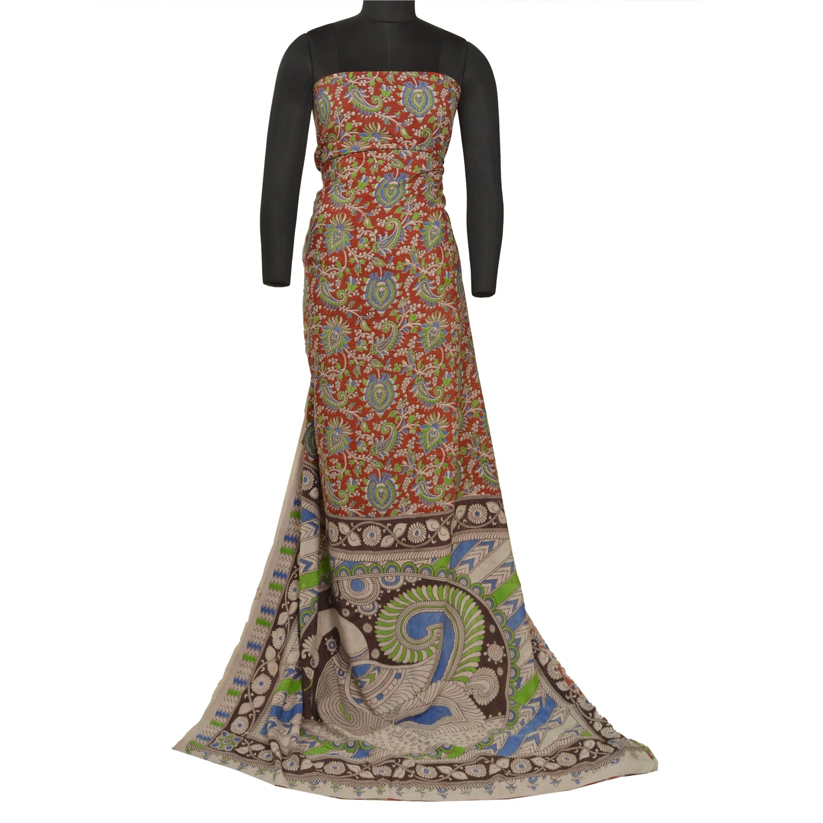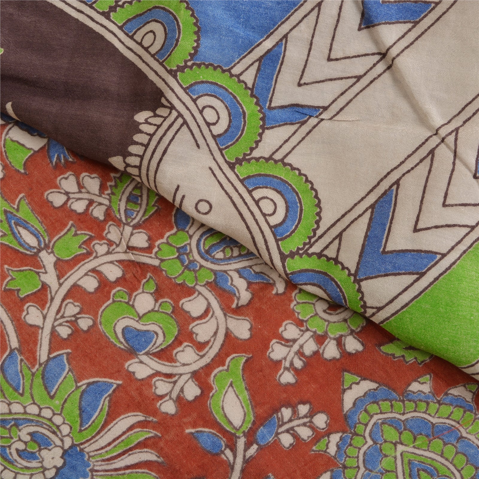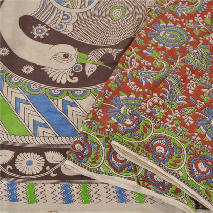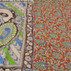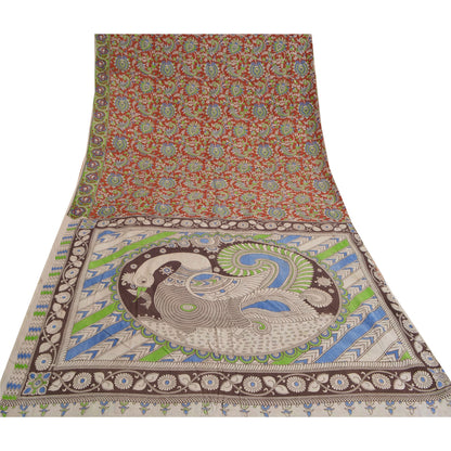 Sanskriti Vintage Red Indian Sarees Pure Cotton Kalamkari Peacock Sari Sustainable Fabric