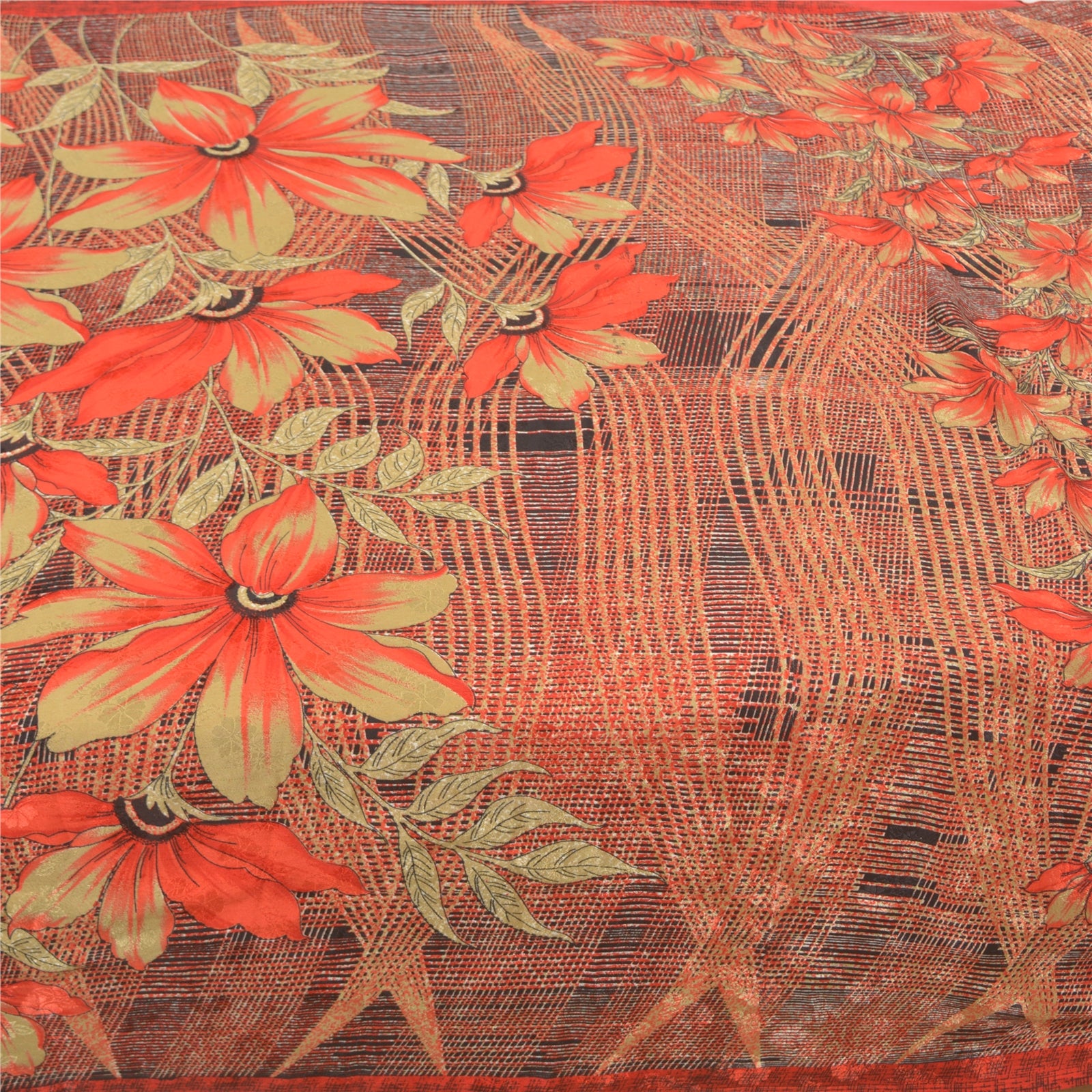 Sanskriti Vintage Red Sarees Moss Crepe Sari Printed Floral Soft Craft Fabric