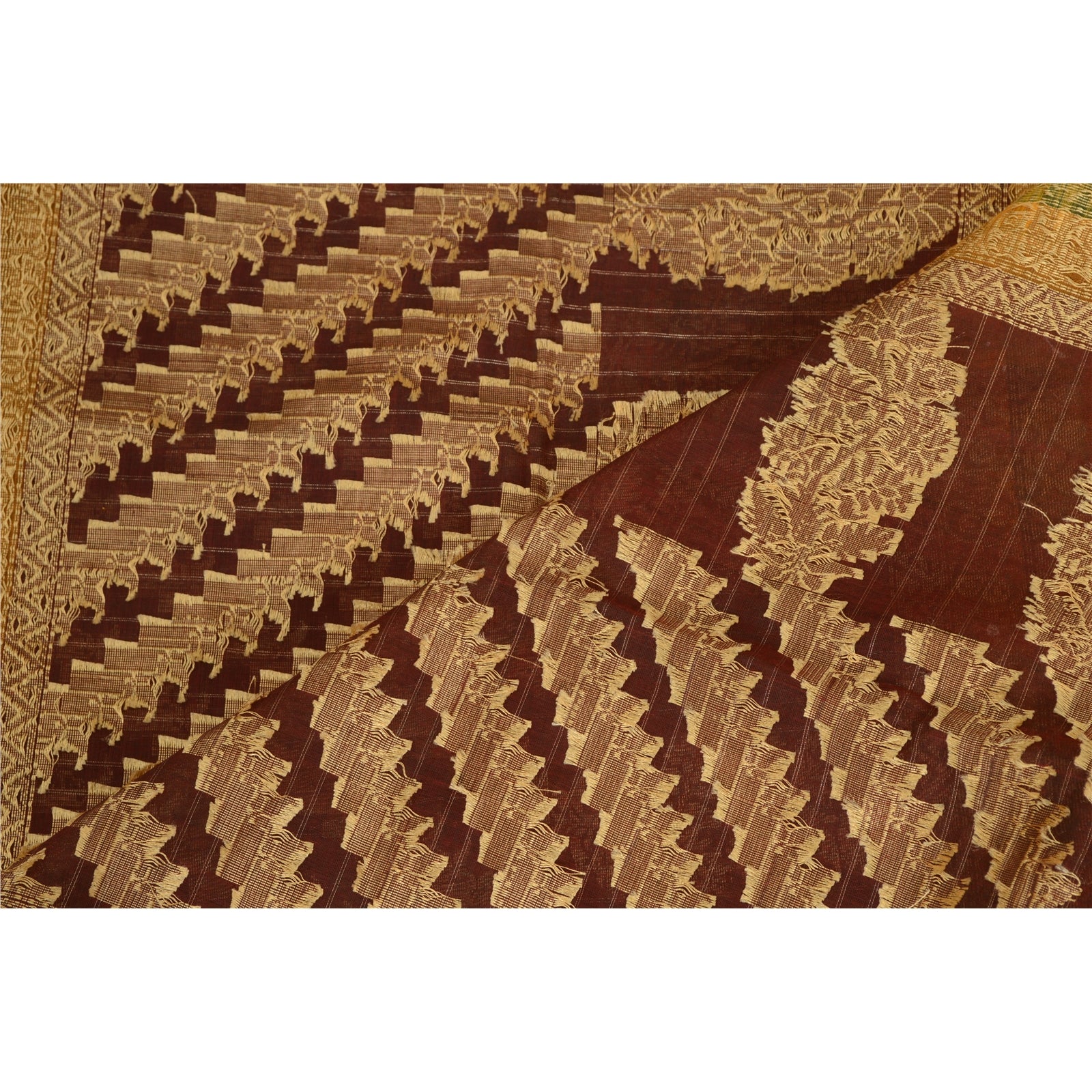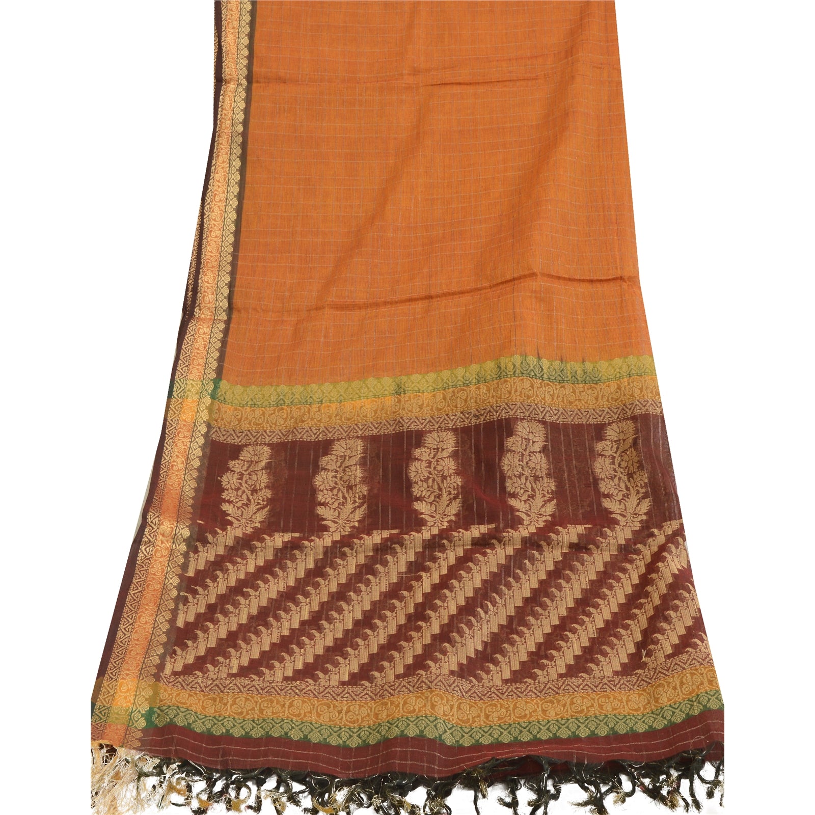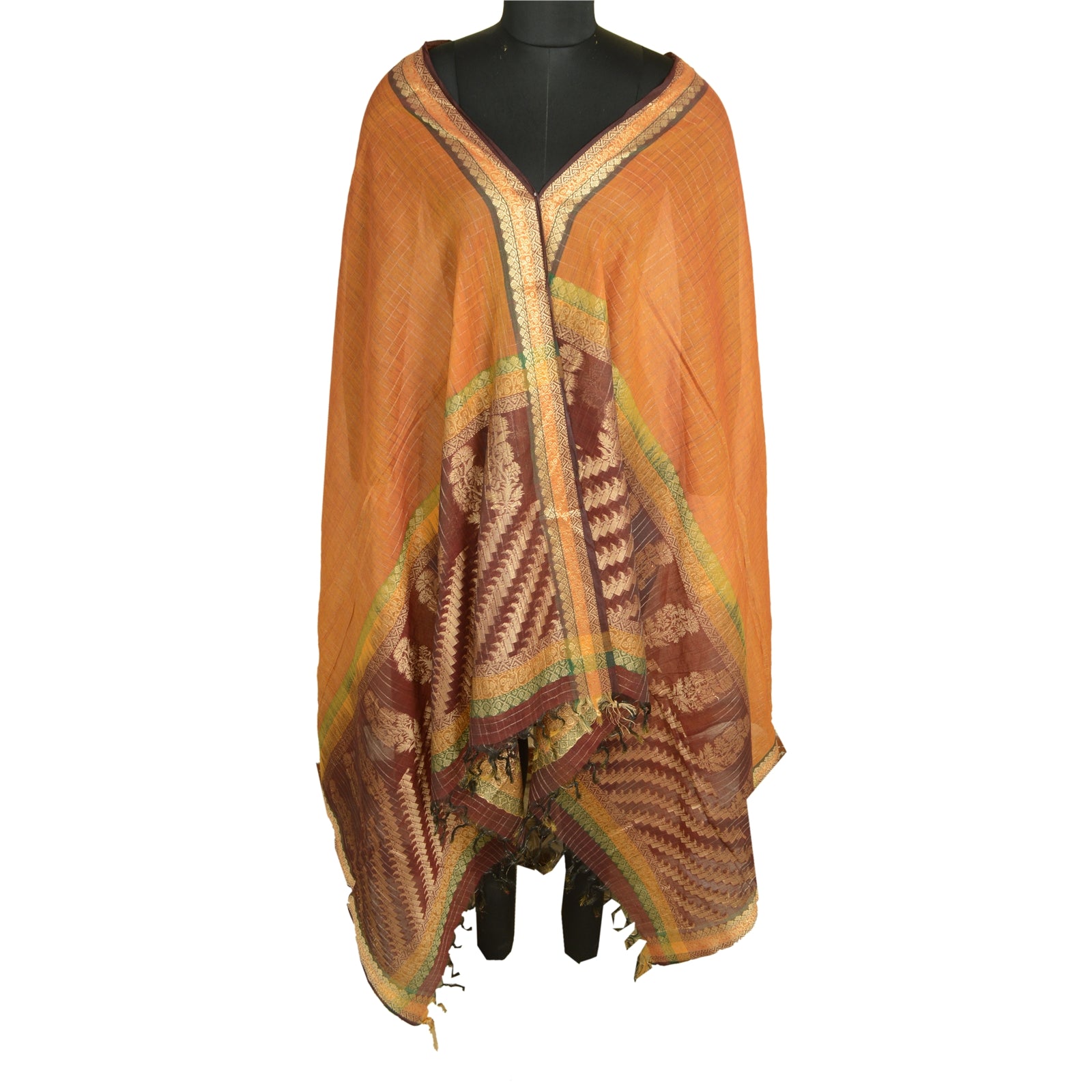 Sanskriti Vintage Saffron/Dark Red Long Dupatta Stole Blend Silk Woven Scarves