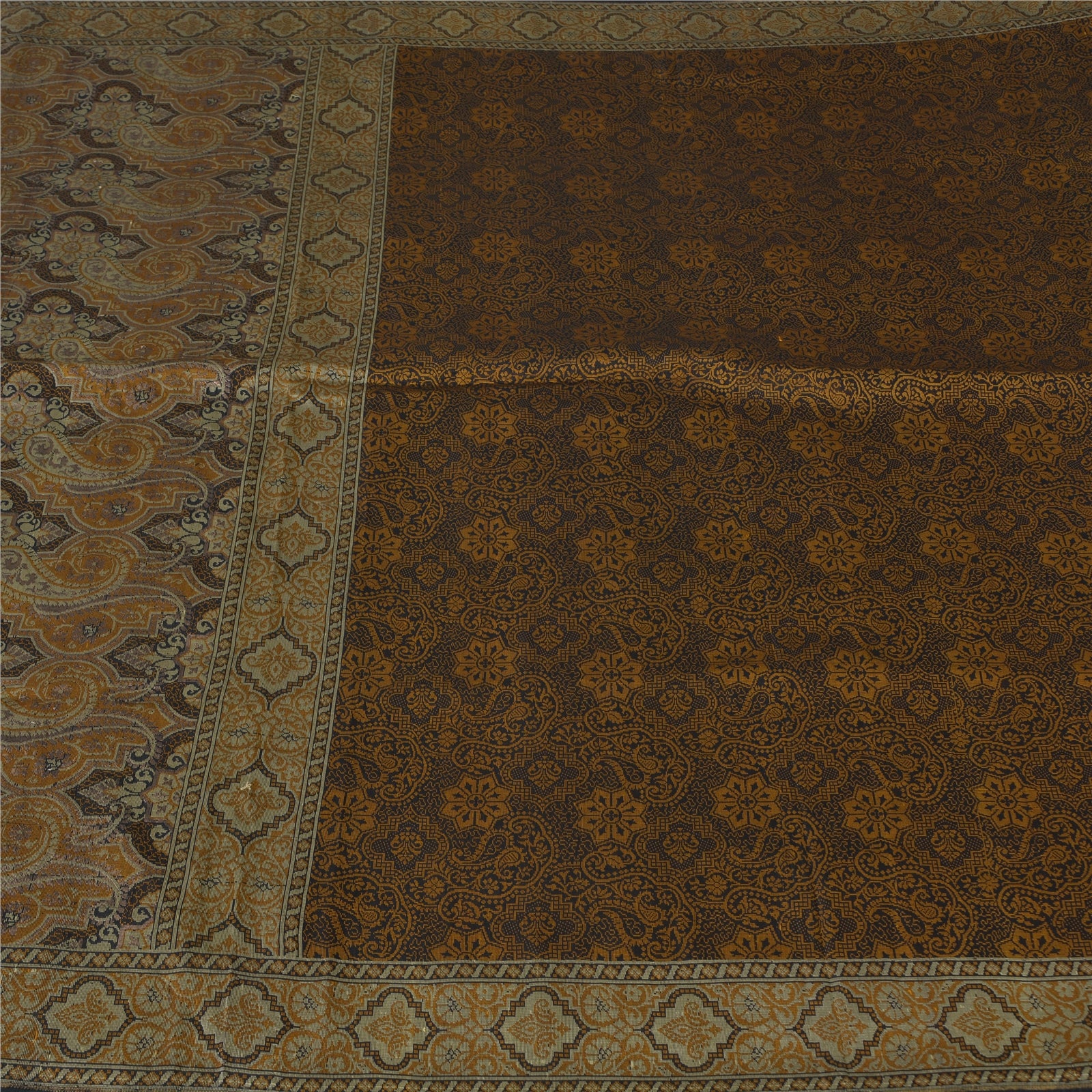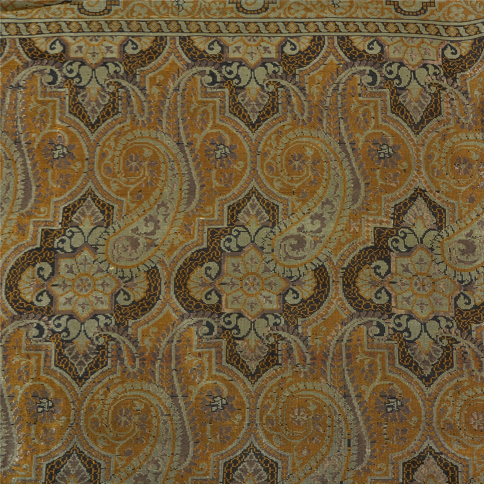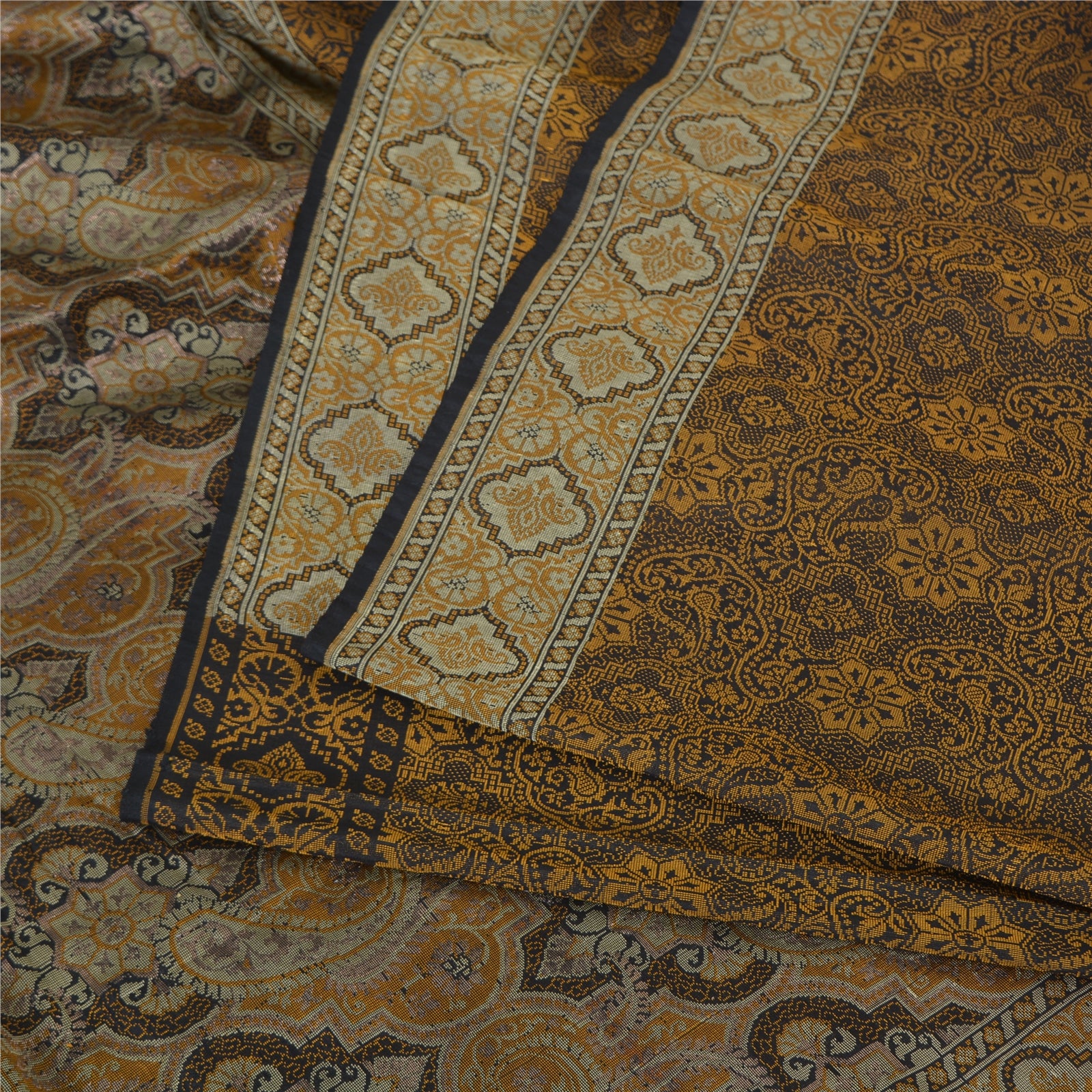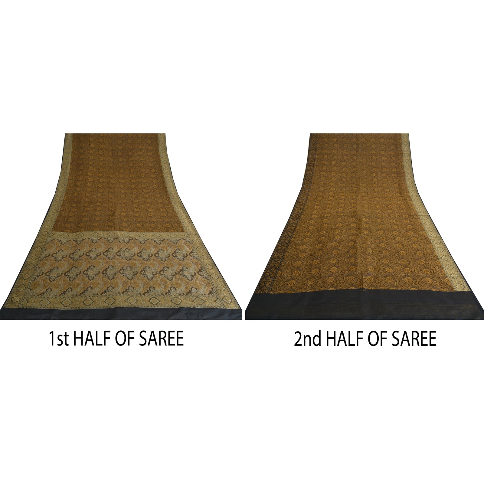 Sanskriti Vintage Sarees Black/Mustard Hand Woven Pure Silk Sari Craft Fabric