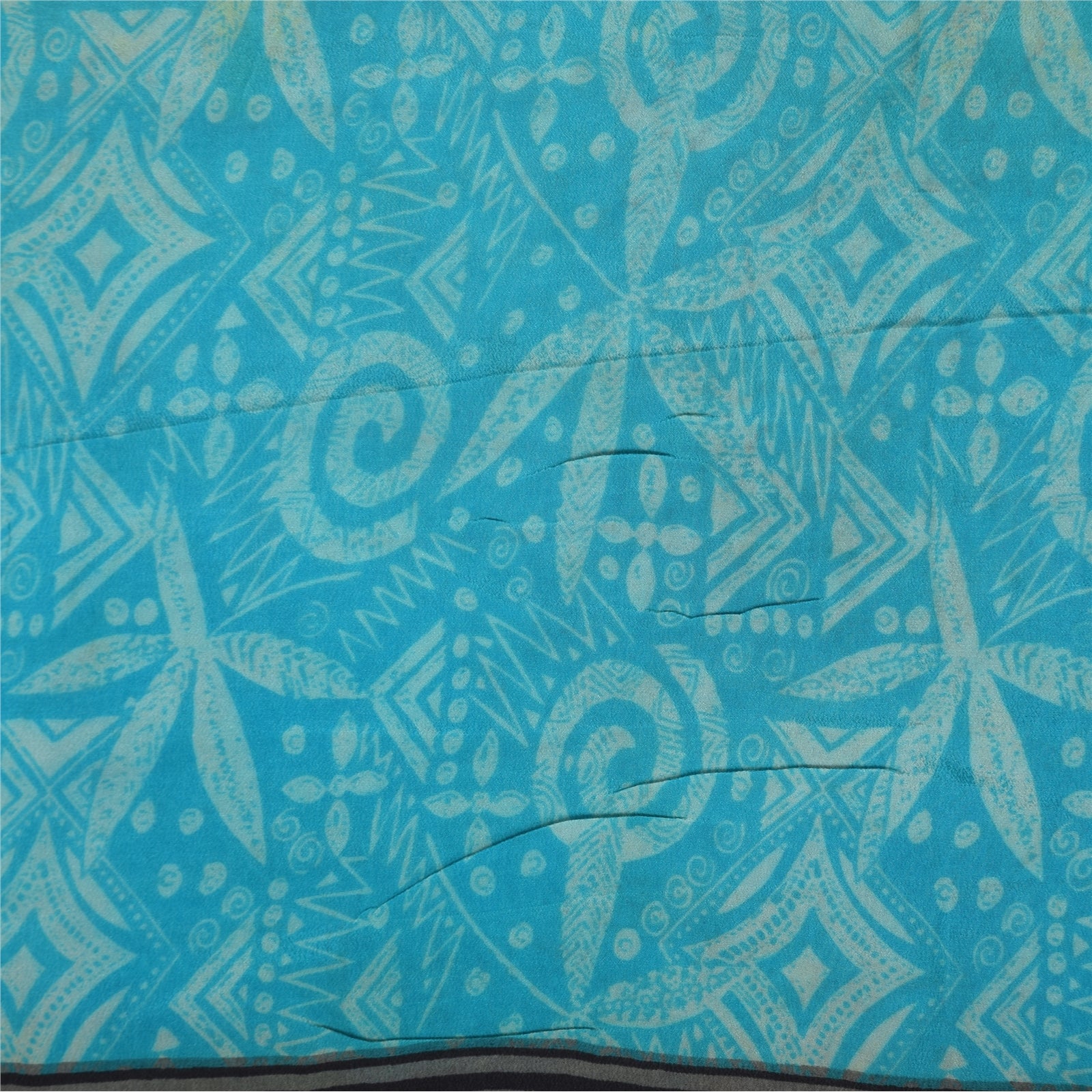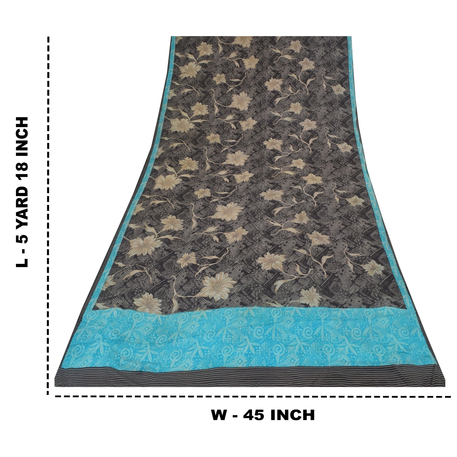Sanskriti Vintage Sarees Black Pure Crepe Silk Printed Sari 5+yd Craft Sustainable Fabric