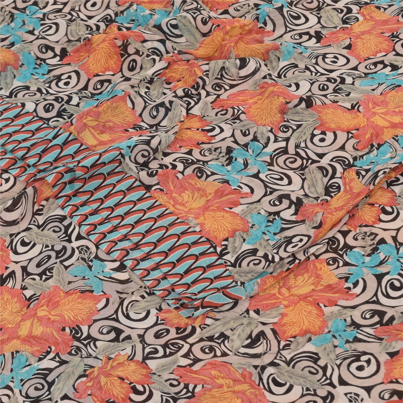 THE ITEM COLOR OR SHADE MAY BE DARKER OR LIGHTER THAN THE PICTURE.' Beautiful black colored pure georgette silk printed saree. Pallu & Border has printed curve lines design. Floral design in center part of saree. What is special about this saree? Brilliant design on soft Sustainable Fabric is really enhancing the beauty of the saree. This unique vintage saree can be used for various crafting ideas even if you don't want to use it as a sari. Design a dress, use it as a as window dressing, upholstery, sarongs, throw, dress making and table linen much more. Let your creative juices flow and use this decorated Sustainable Fabric in multiple fashion. International buyers please note: Import duties, taxes, and charges are not included in the item price or postage cost. These charges are the buyer's responsibility. Please check with your country's customs office to determine what these additional costs will be prior to bidding or buying.Buyer will pay custom duty/tax. It is calculated and charged differently by every country. As a seller I do not have any control over it. VAT or sales tax is calculated by the platform at the time of checkout. Customs charge is payable at the time of delivery. PRG-14556