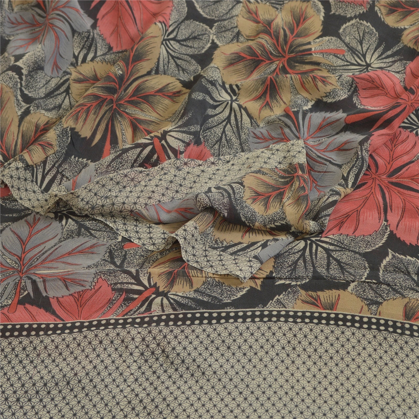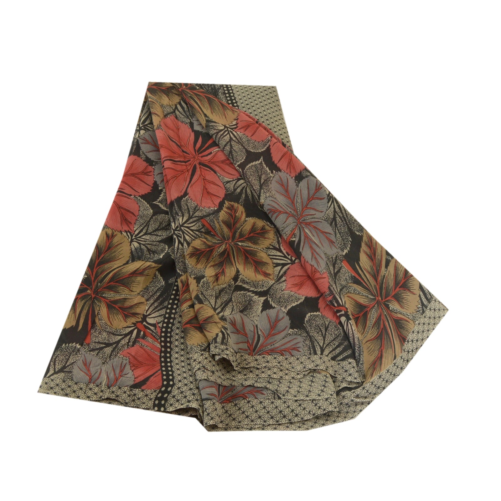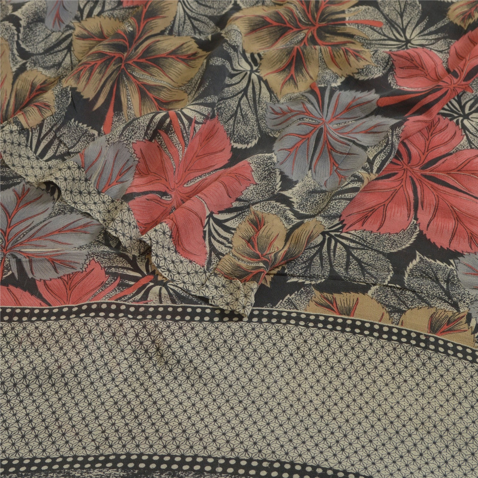 Sanskriti Vintage Sarees Black Pure Georgette Silk Printed Sari 5yd Craft Sustainable Fabric