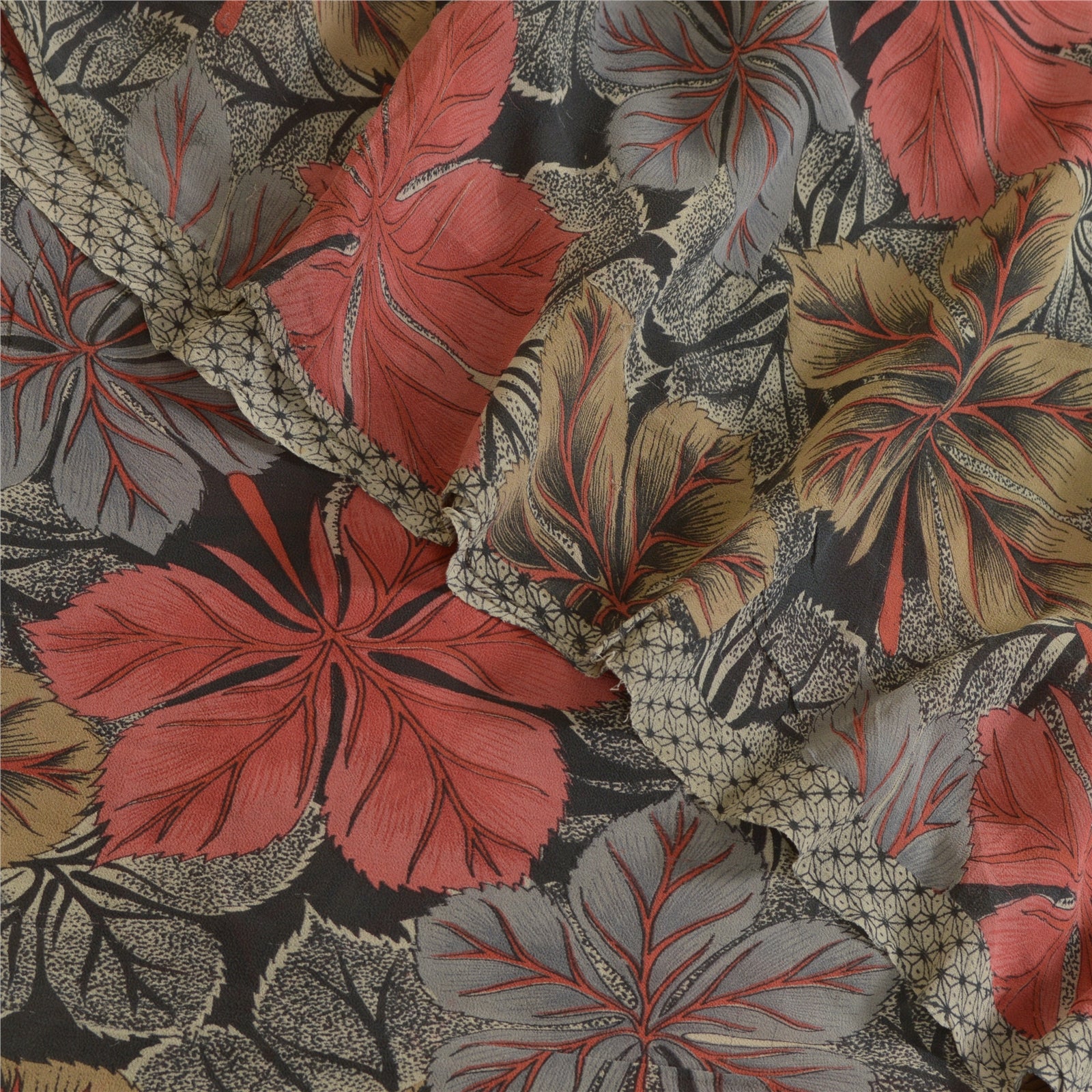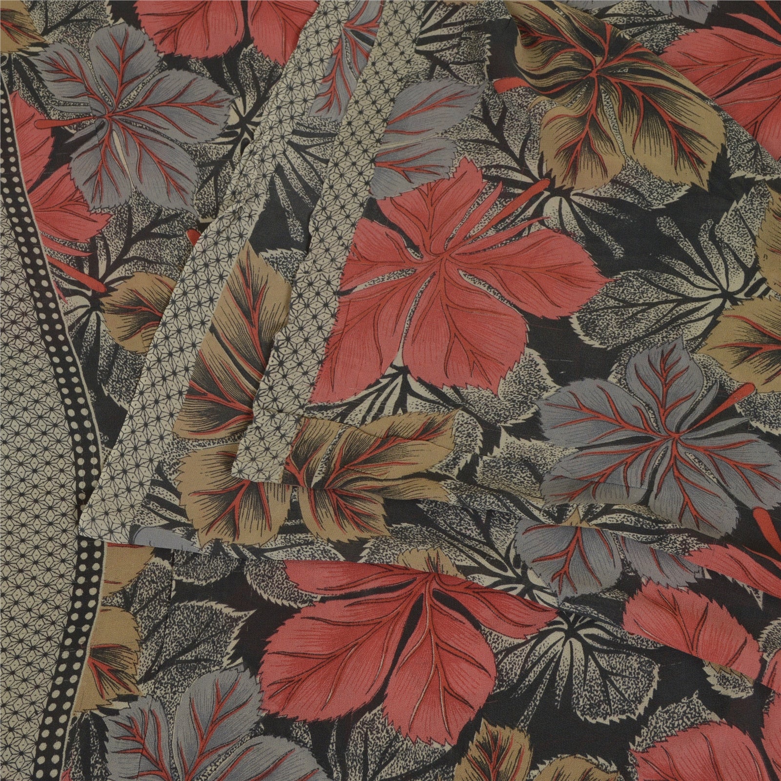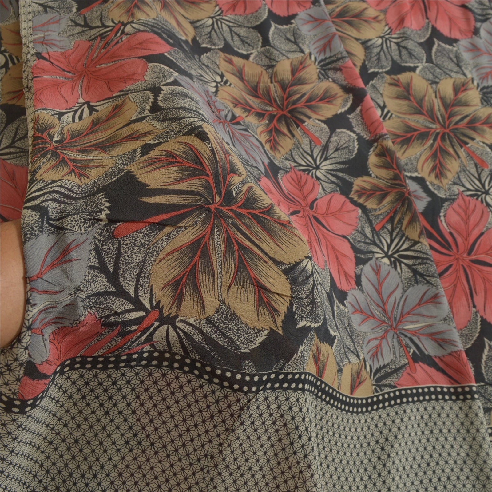 Sanskriti Vintage Sarees Black Pure Georgette Silk Printed Sari 5yd Craft Sustainable Fabric