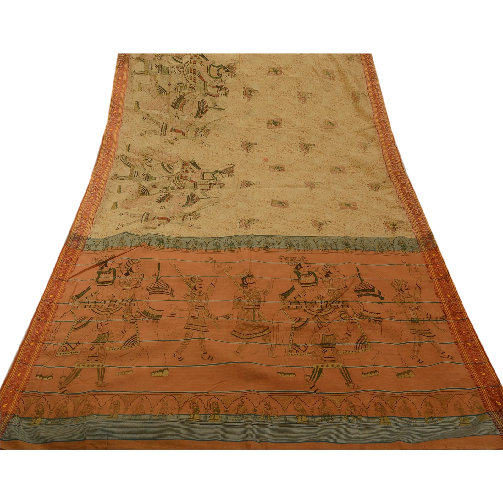 Sanskriti Vintage Sarees Blend Cotton Woven Painted Fabric Human Design Sari