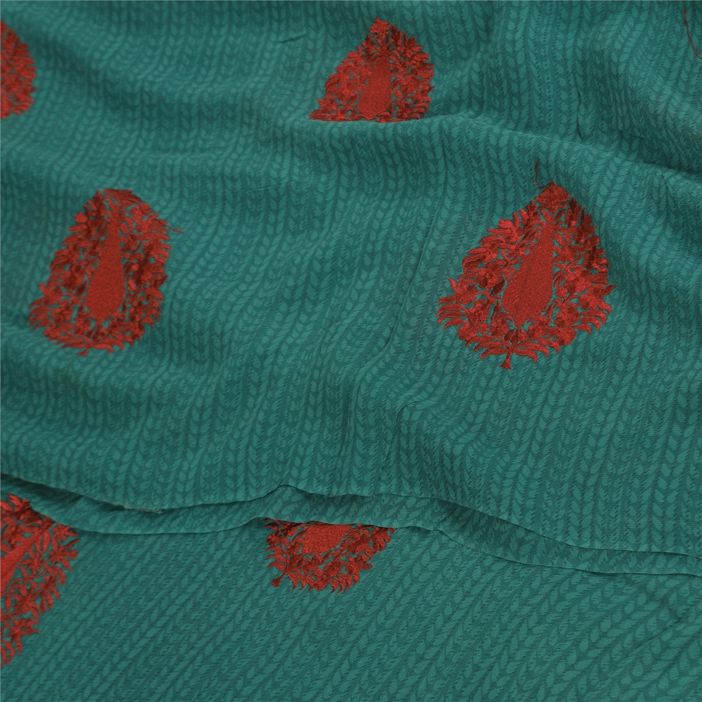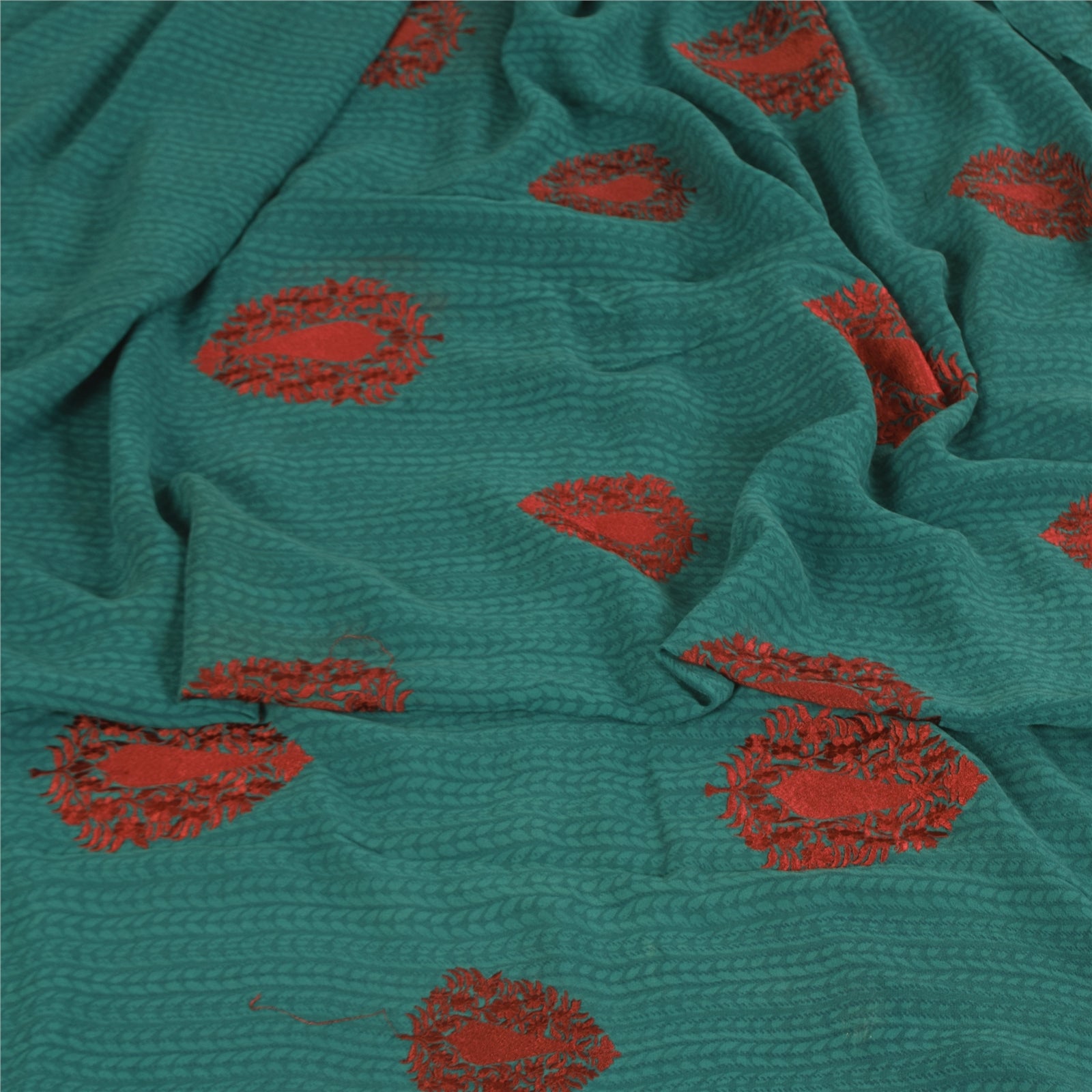 Sanskriti Vintage Sarees Blue Embroidered Pure Georgette Sari 5+yd Craft Sustainable Fabric