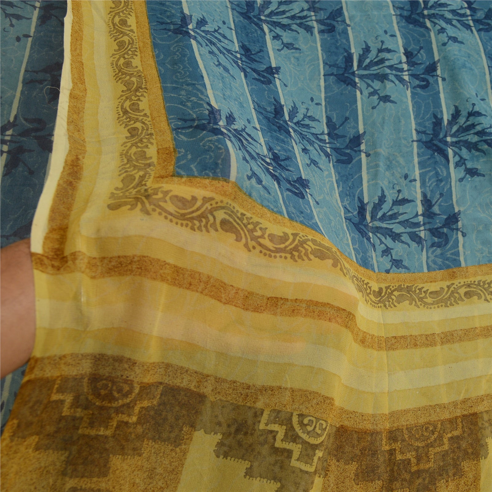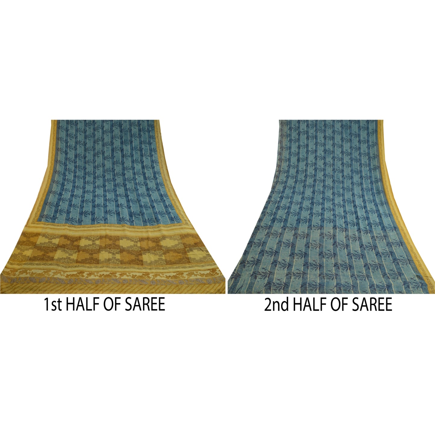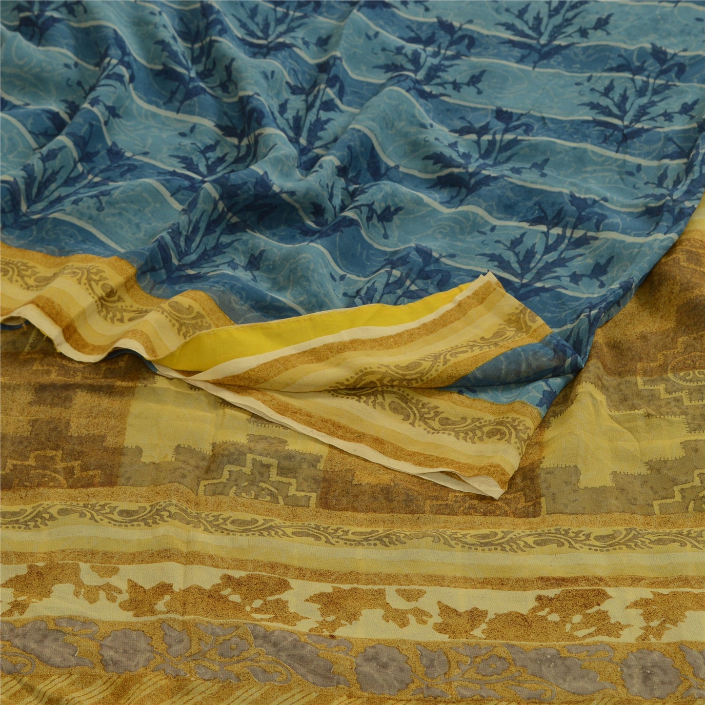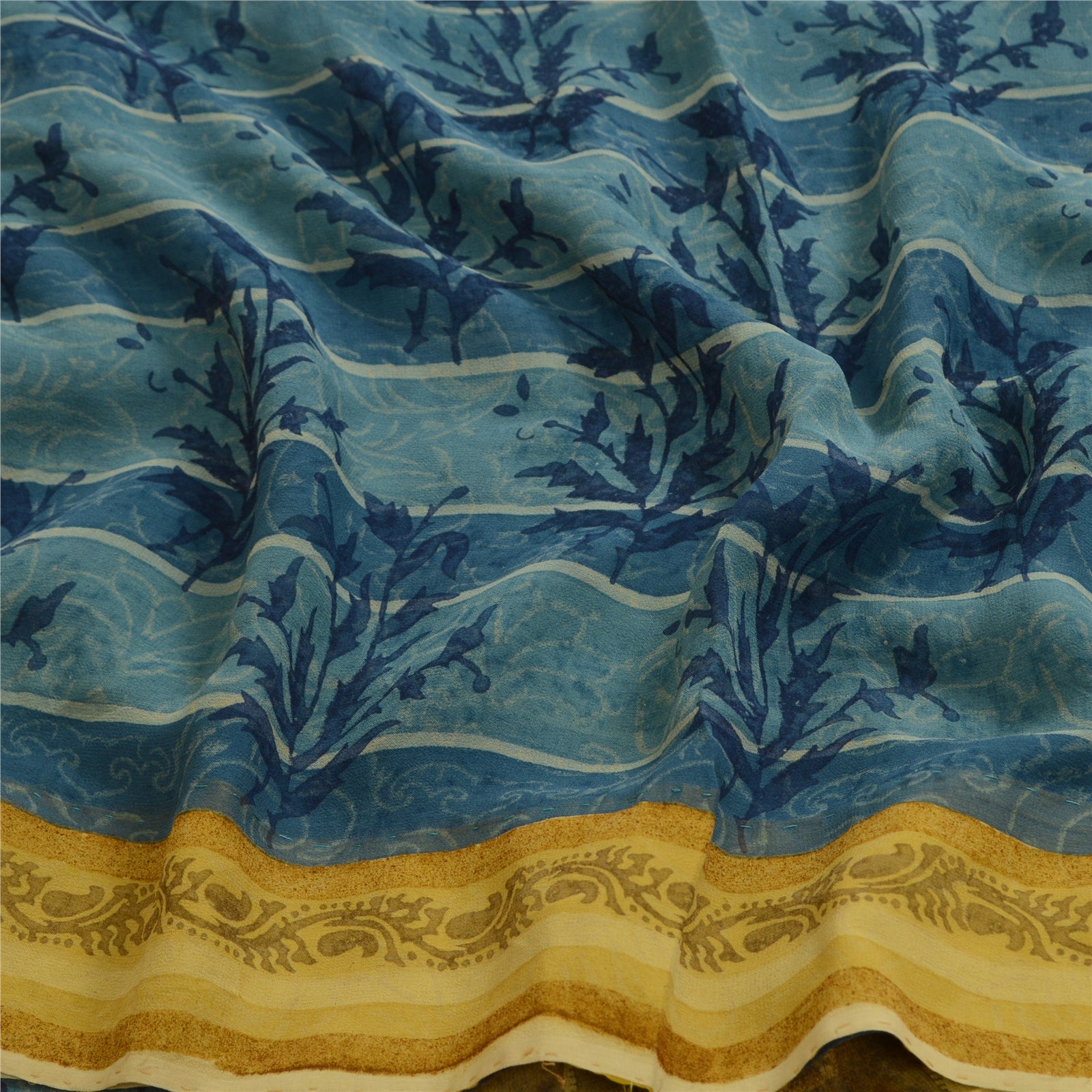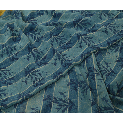 Sanskriti Vintage Sarees Blue/Green Pure Georgette Silk Print Sari Craft Sustainable Fabric