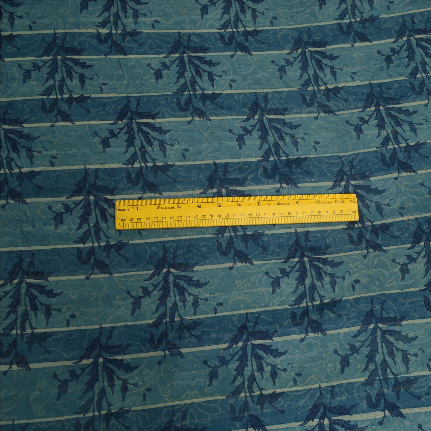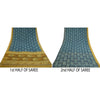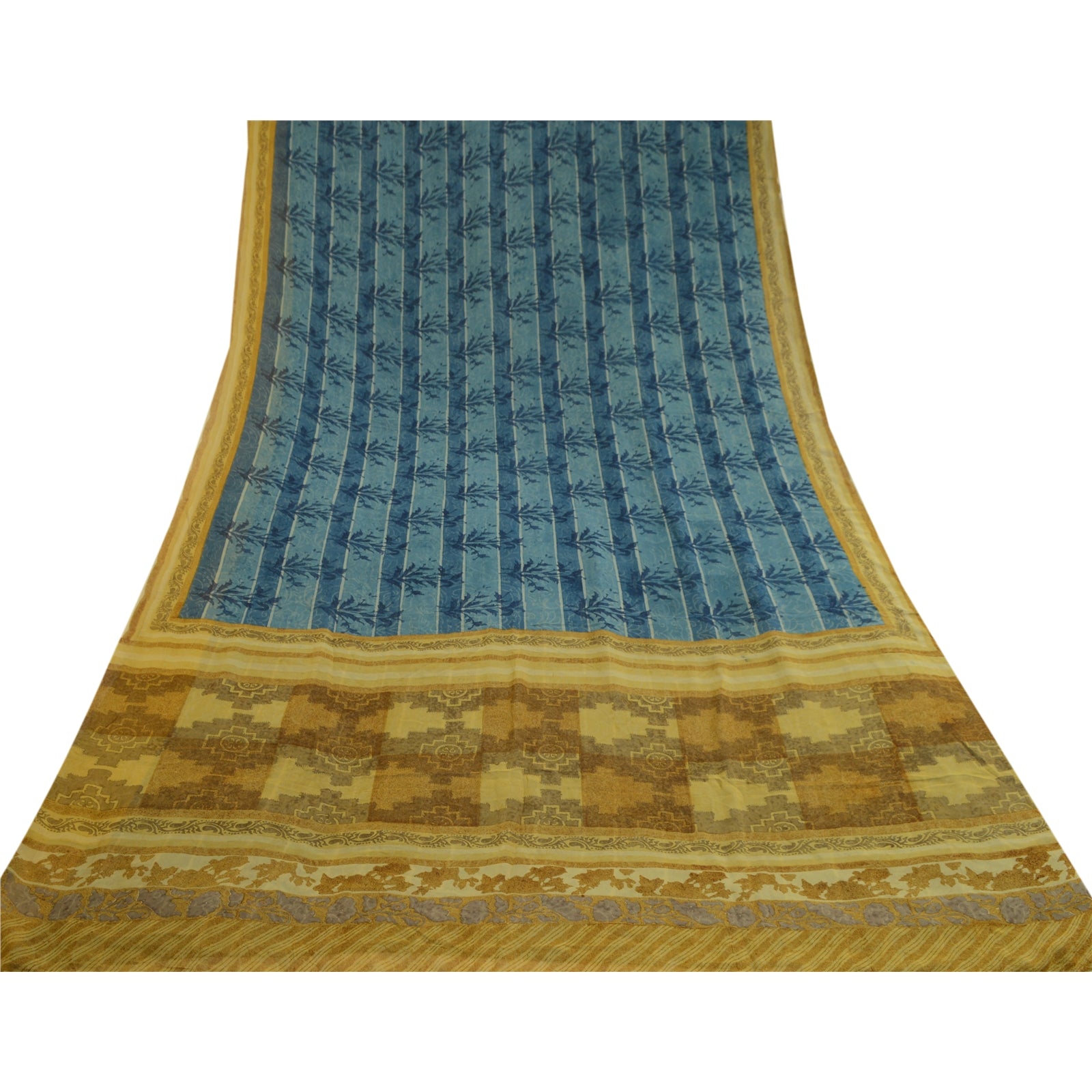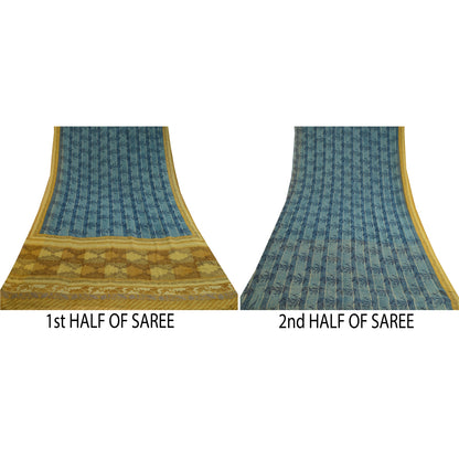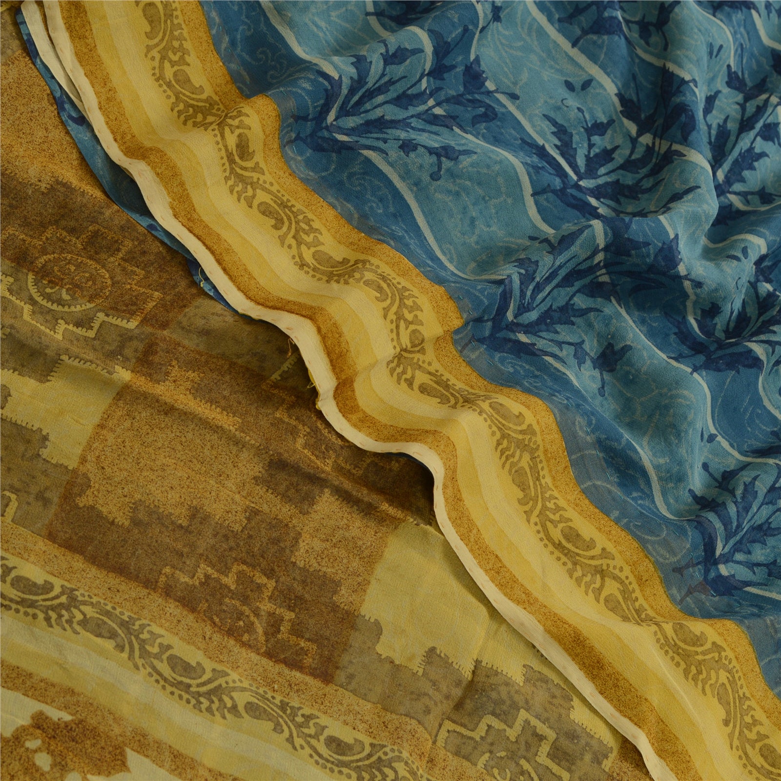 Sanskriti Vintage Sarees Blue/Green Pure Georgette Silk Print Sari Craft Sustainable Fabric