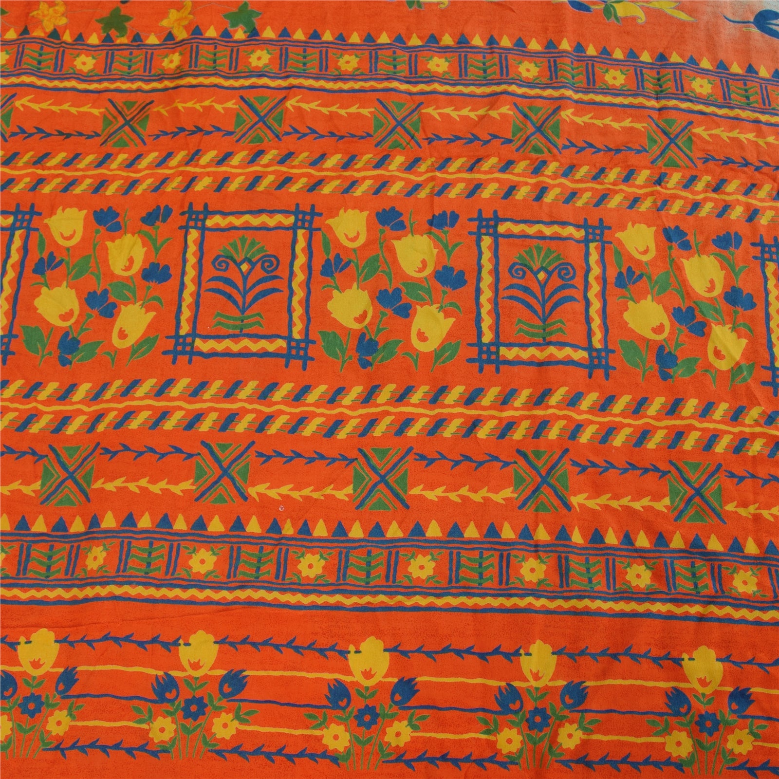 Sanskriti Vintage Sarees Blue & Orange Pure Crepe Silk Printed Sari 5+yd Sustainable Fabric