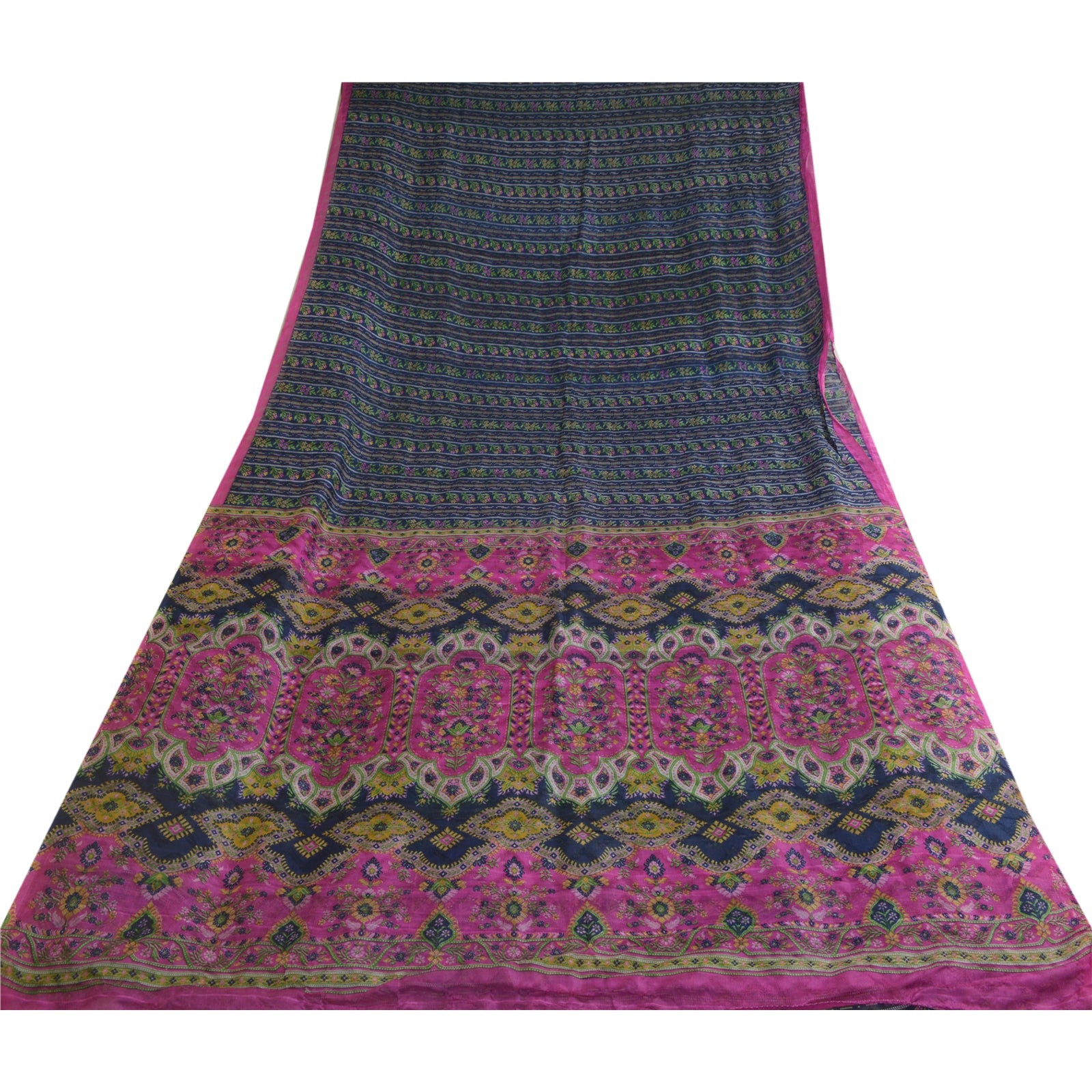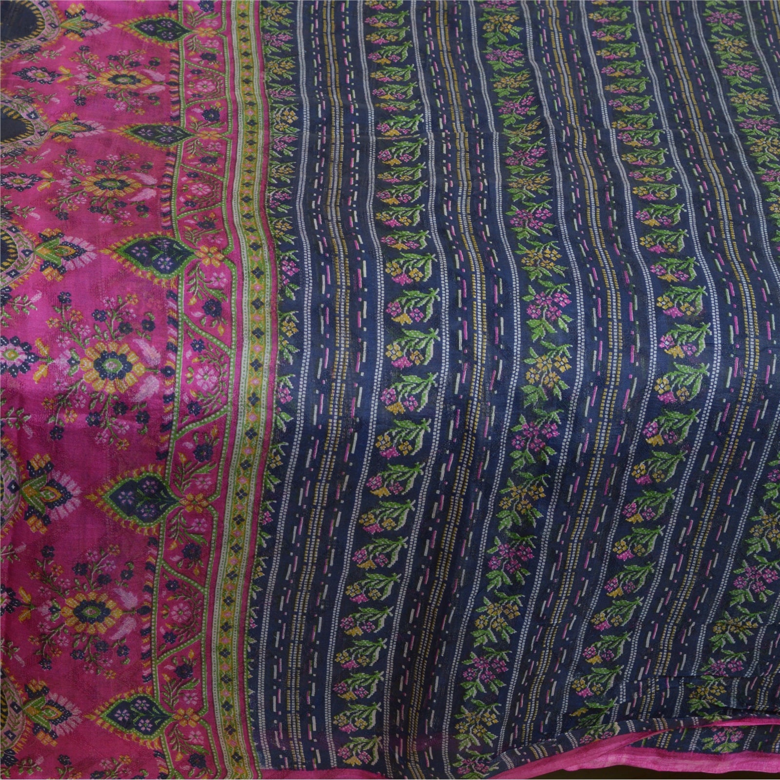 THE ITEM COLOR OR SHADE MAY BE DARKER OR LIGHTER THAN THE PICTURE.' Beautiful blue & pink colored pure silk printed saree. Pallu & Border has printed floral design. Similar design in center part of saree. What is special about this saree? Fabulous design is really enhancing the beauty of the saree.This unique vintage saree can be used for various crafting ideas even if you don't want to use it as a sari. Design a dress, use it as window, dressing, upholstery, sarongs, throw, dress making and table linen much more. Let your creative juices flow and use this decorated Sustainable Fabric in multiple fashion. International buyers please note: Import duties, taxes, and charges are not included in the item price or postage cost. These charges are the buyer's responsibility. Please check with your country's customs office to determine what these additional costs will be prior to bidding or buying. Buyer will pay custom duty/tax. It is calculated and charged differently by every country. As a seller I do not have any control over it. VAT or sales tax is calculated by the platform at the time of checkout. Customs charge is payable at the time of delivery.'