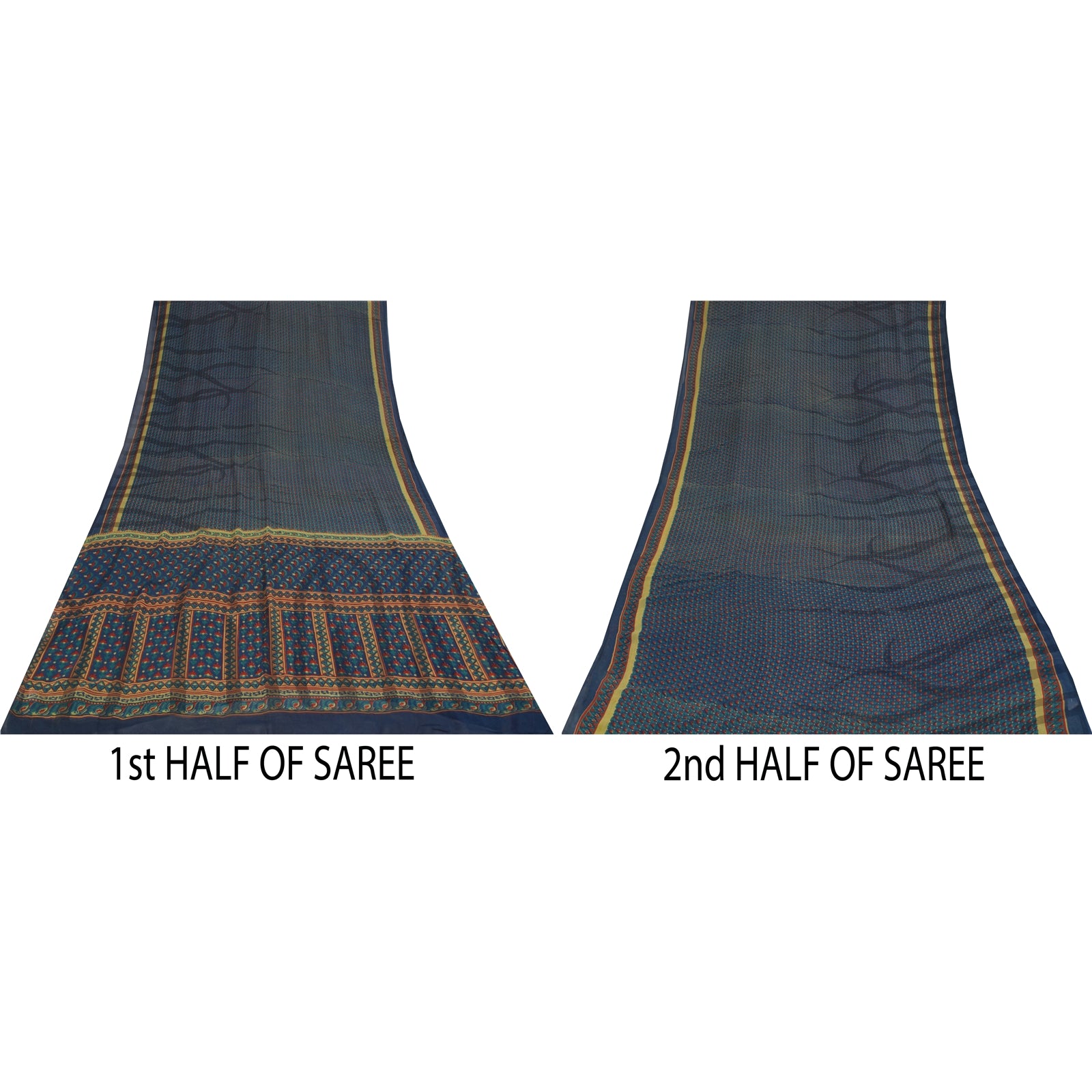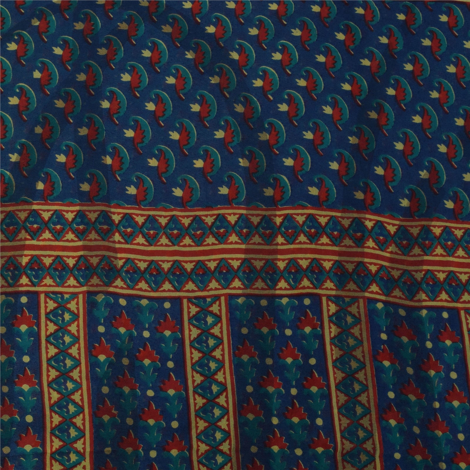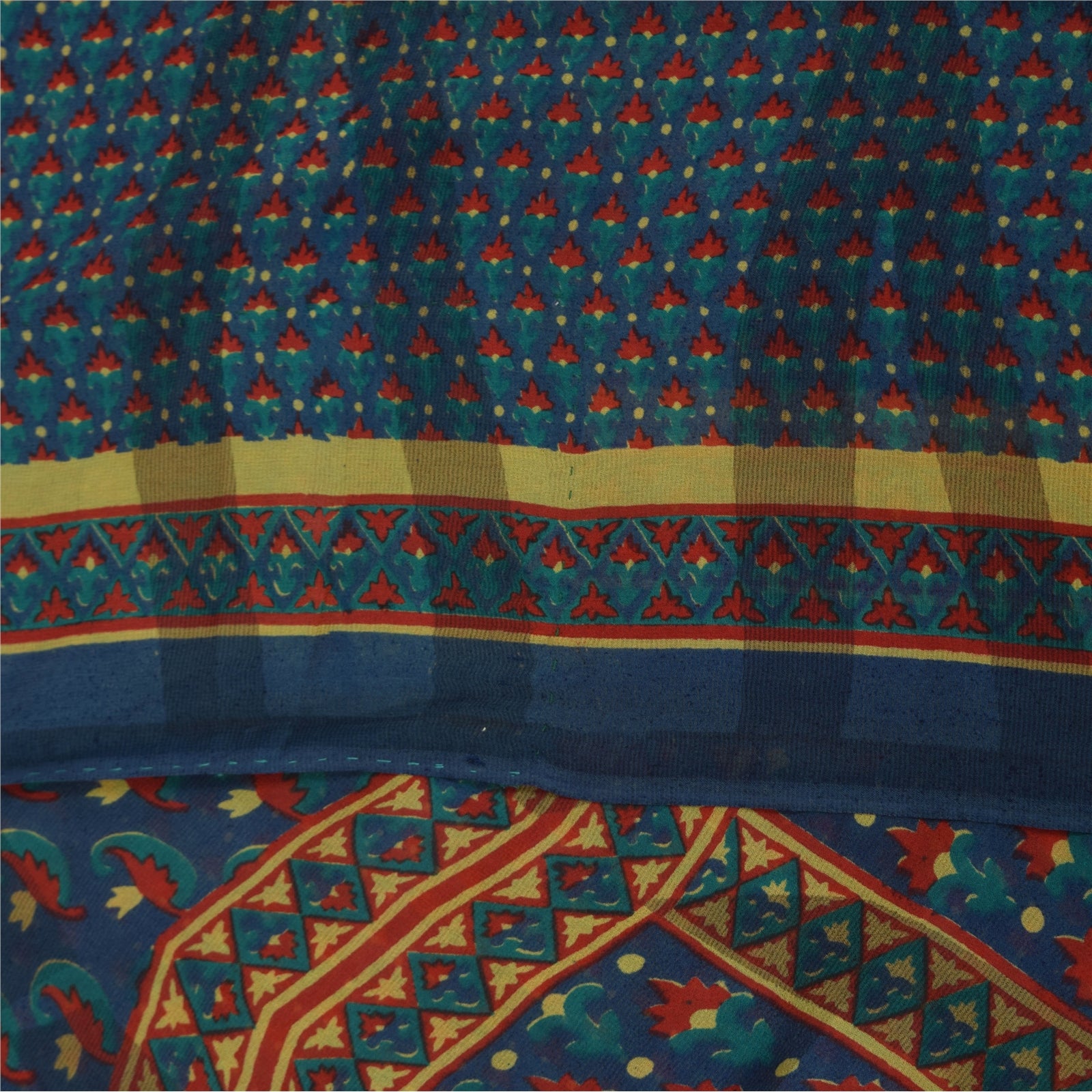 Sanskriti Vintage Sarees Blue Pure Georgette Silk Printed Sari 5+yd Craft Sustainable Fabric