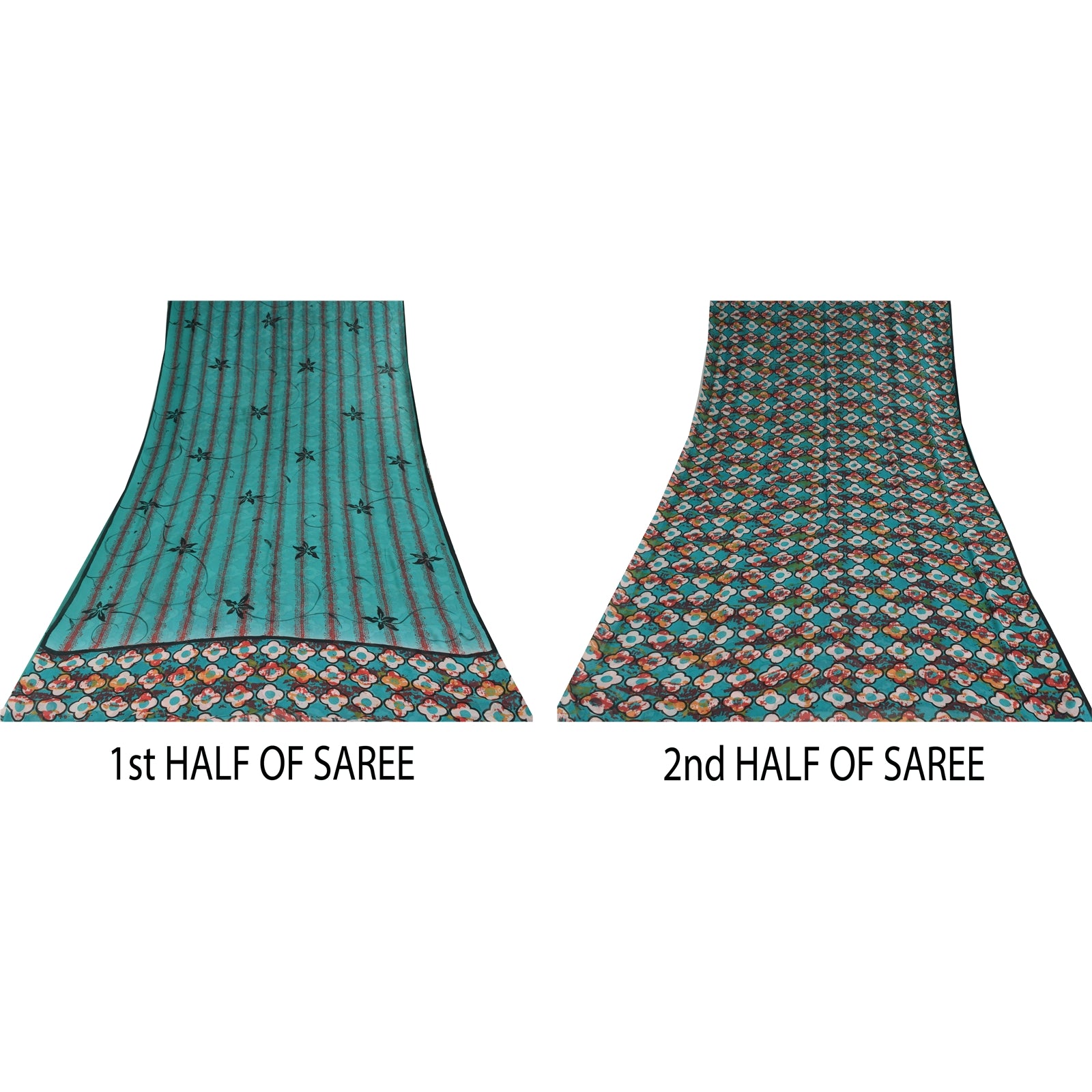 Sanskriti Vintage Sarees Blue Pure Georgette Silk Printed Sari 5+yd Craft Sustainable Fabric