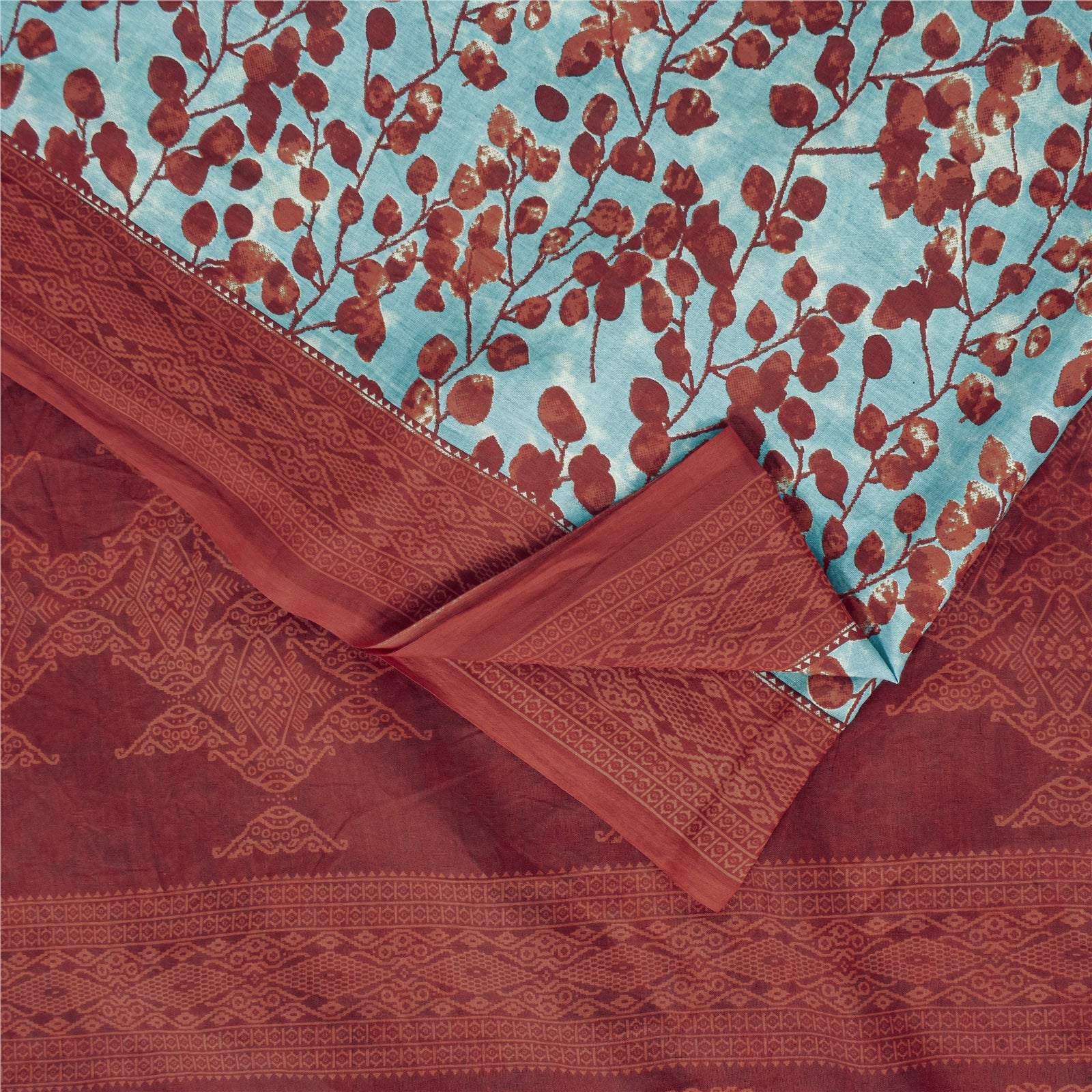 Sanskriti Vintage Sarees Blue & Red Pure Cotton Printed Sari 5+yd Craft Fabric