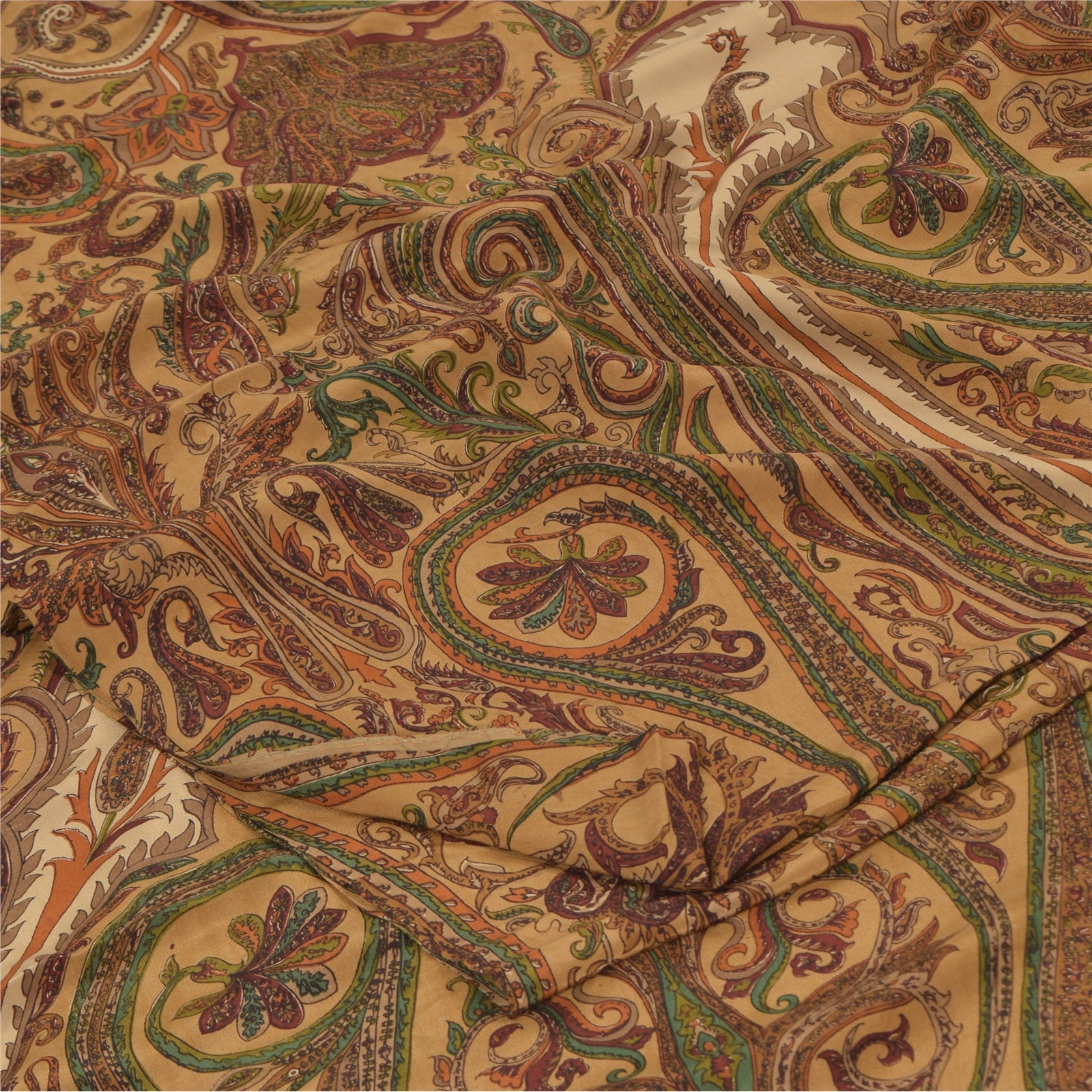 Sanskriti Vintage Sarees Brown 100%Pure Crepe Silk Printed Sari 5yd Craft Sustainable Fabric