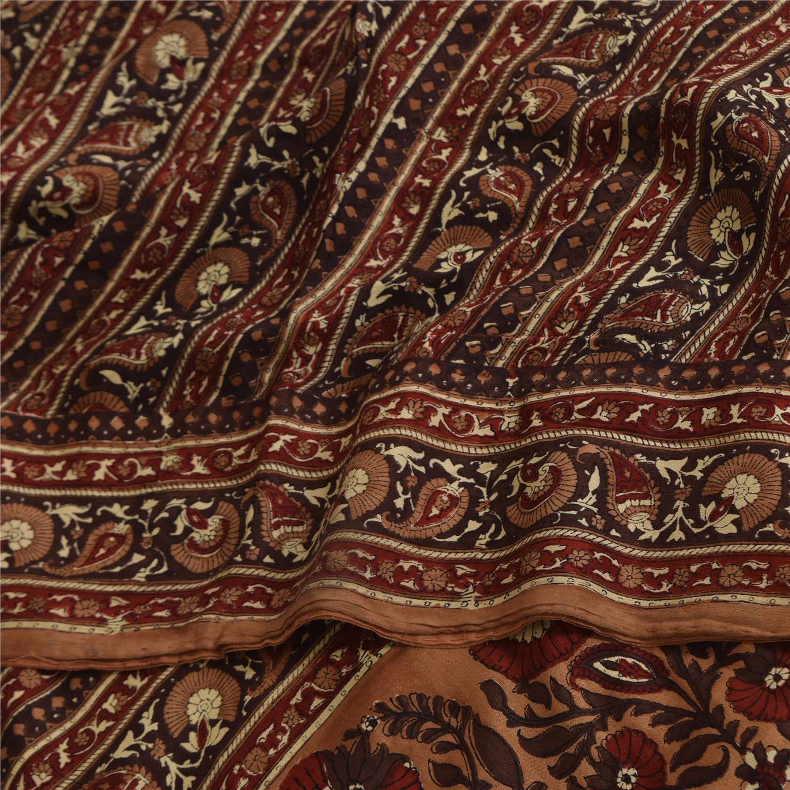 Sanskriti Vintage Sarees Brown Pure Crepe Silk Printed Sari 5+yd Craft Fabric