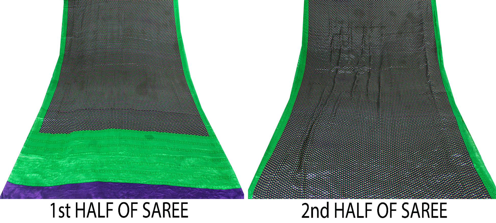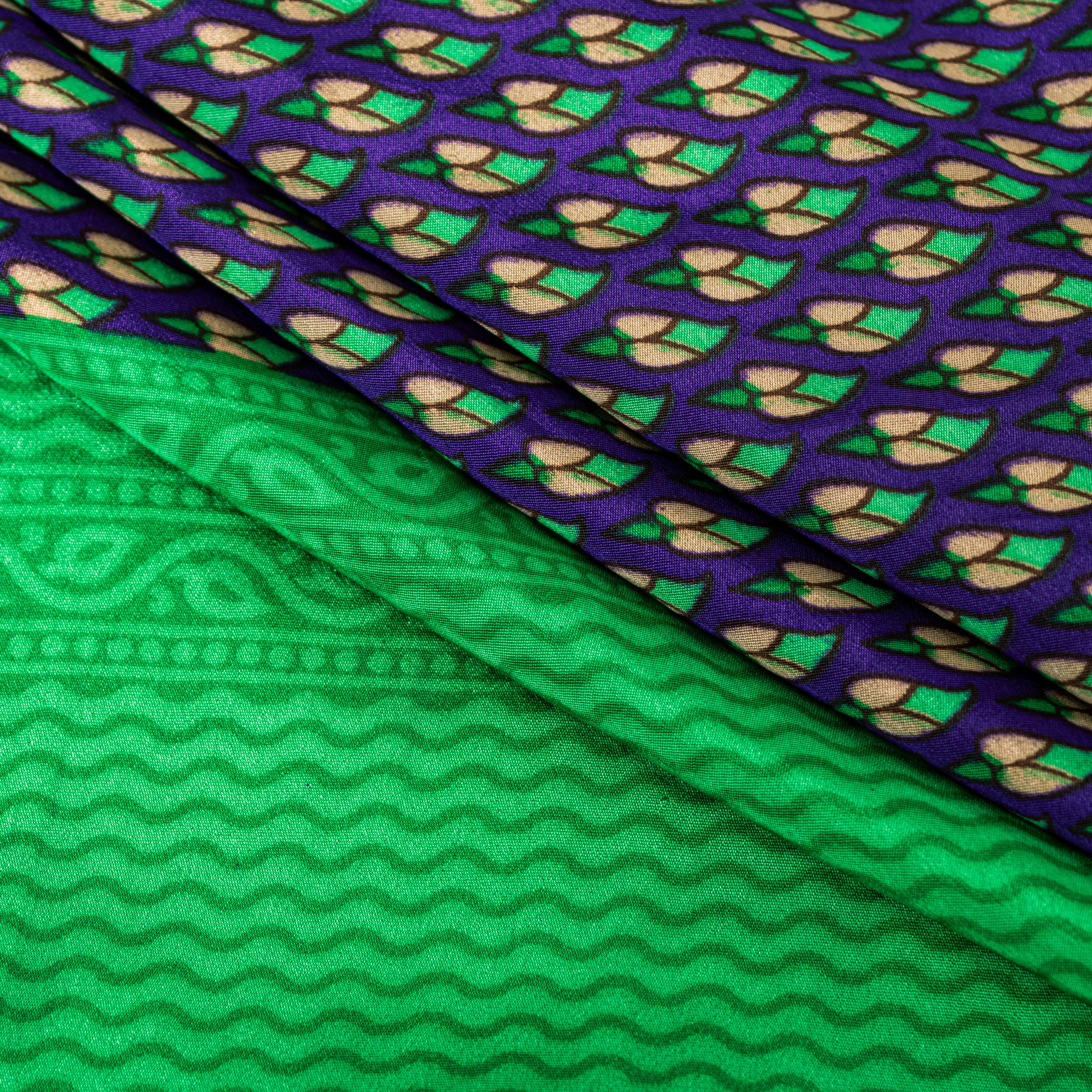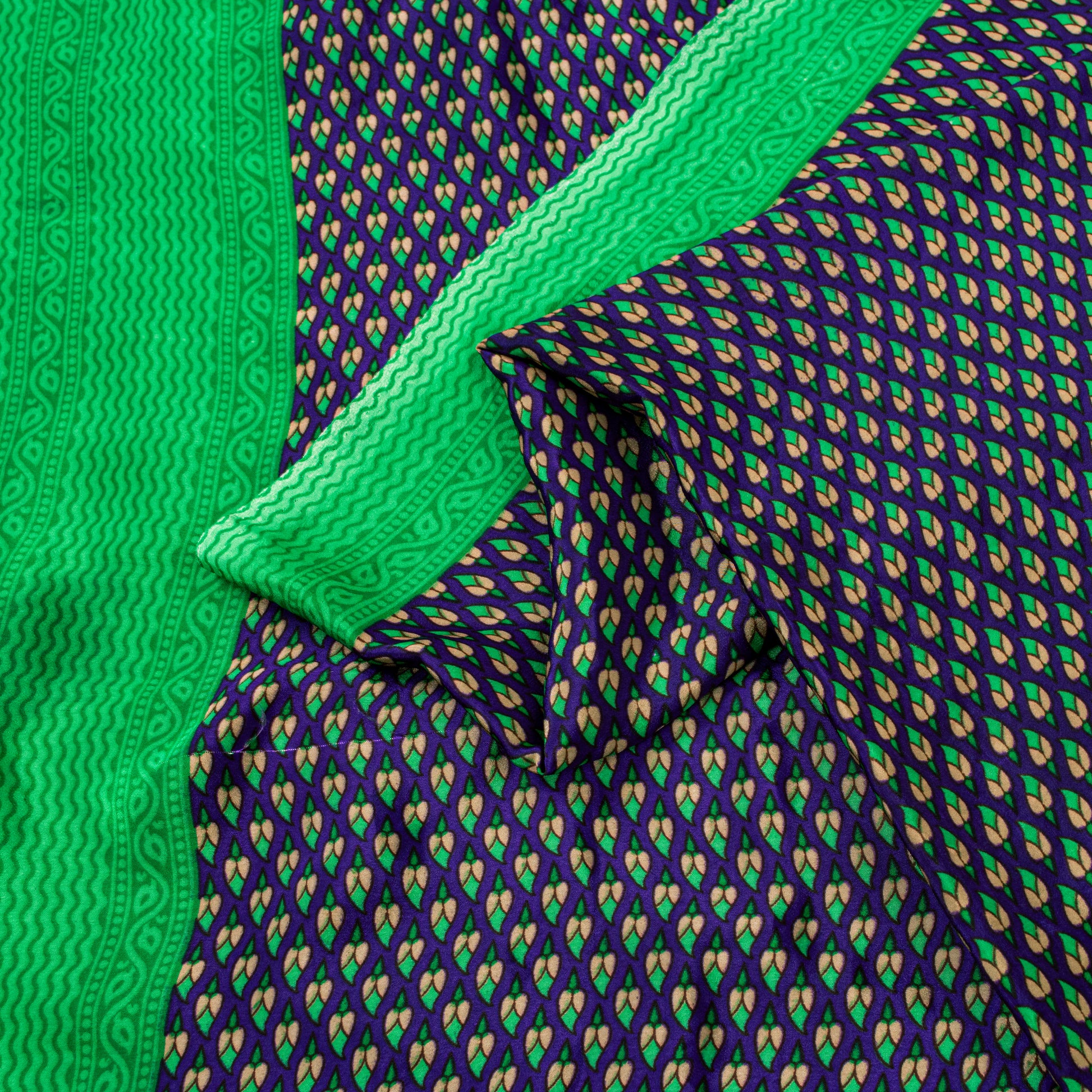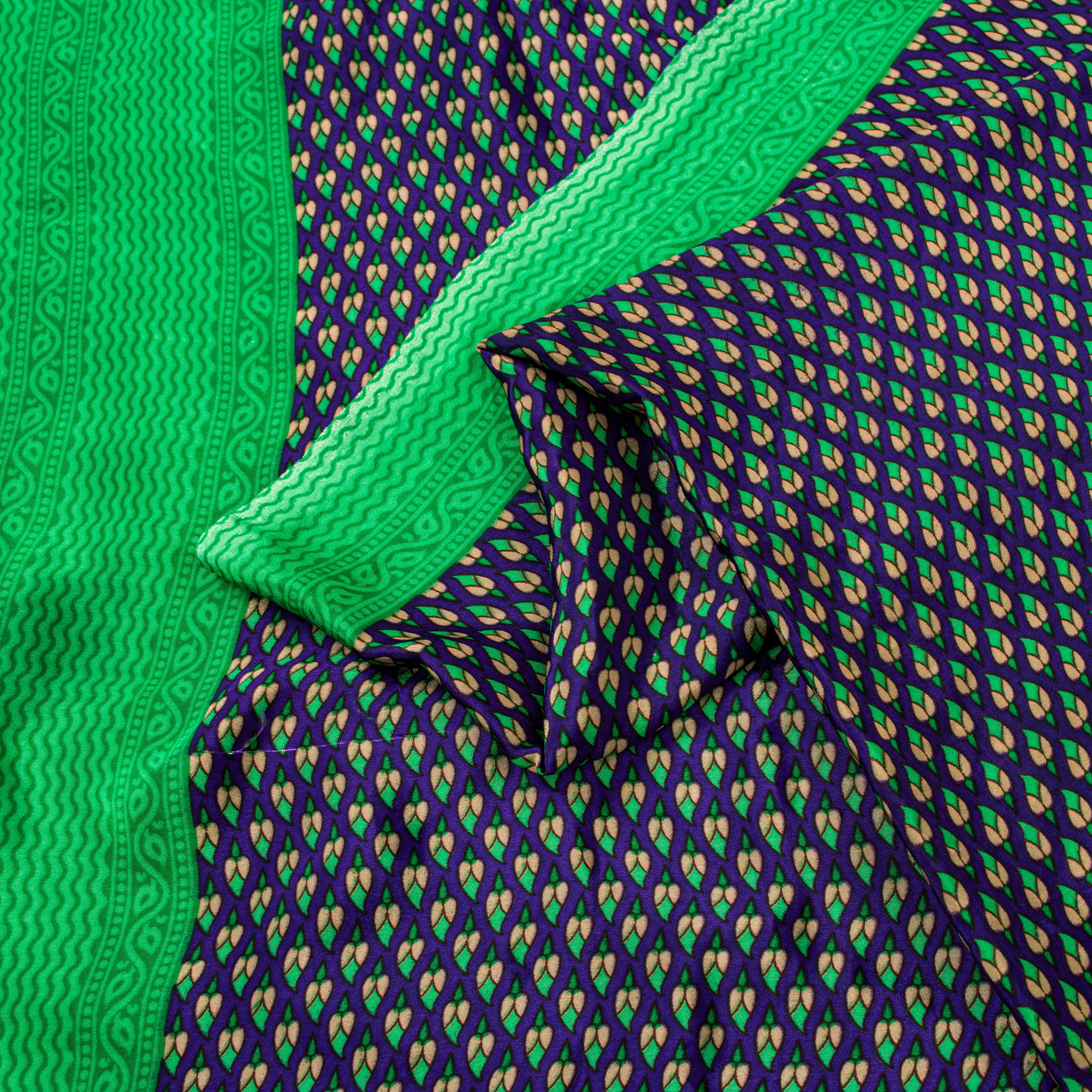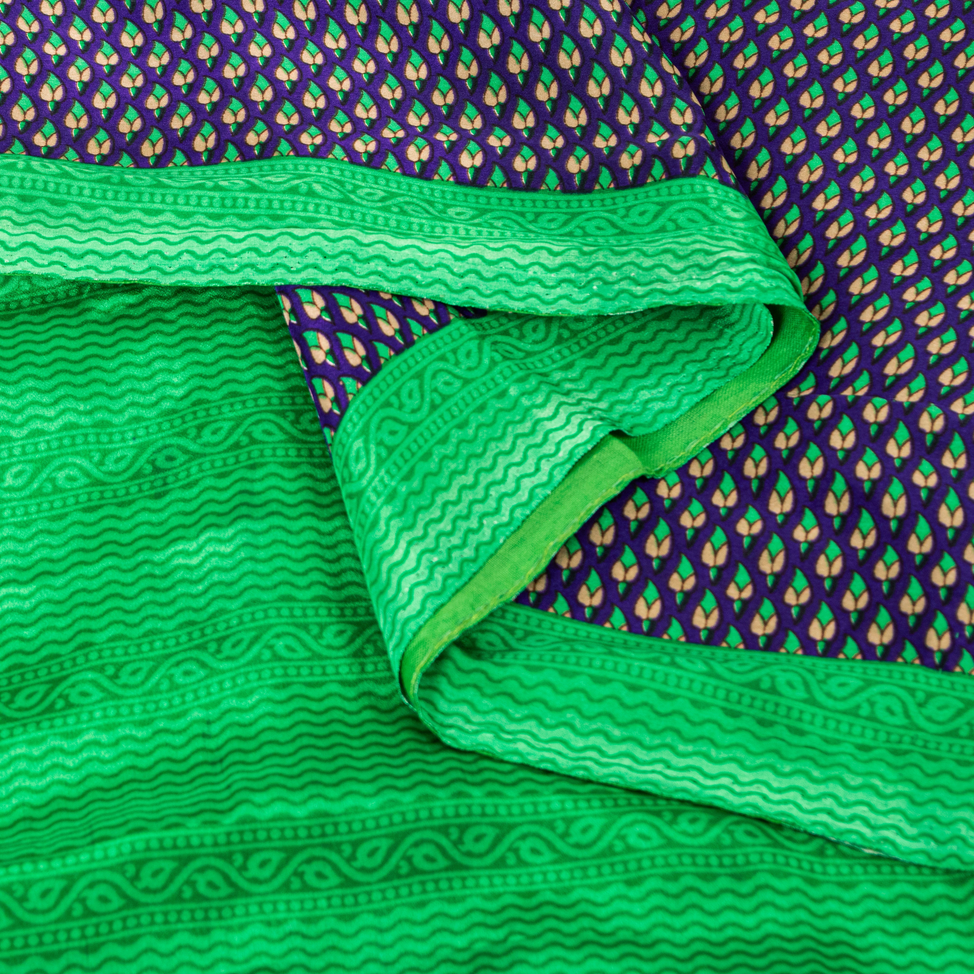 Sanskriti Vintage Sarees Craft Supplies Purple Floral Print 5YD Moss Crepe Sari