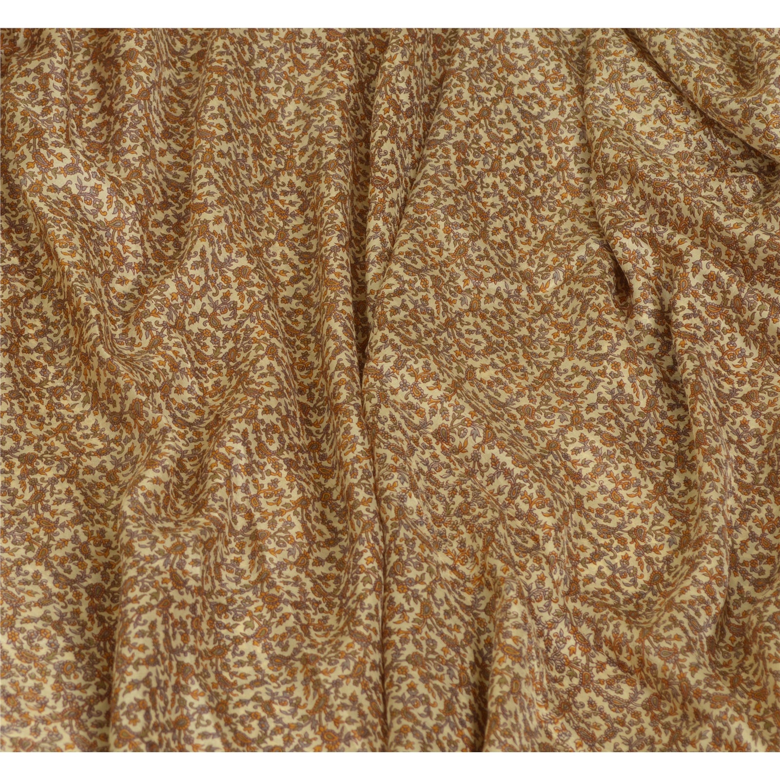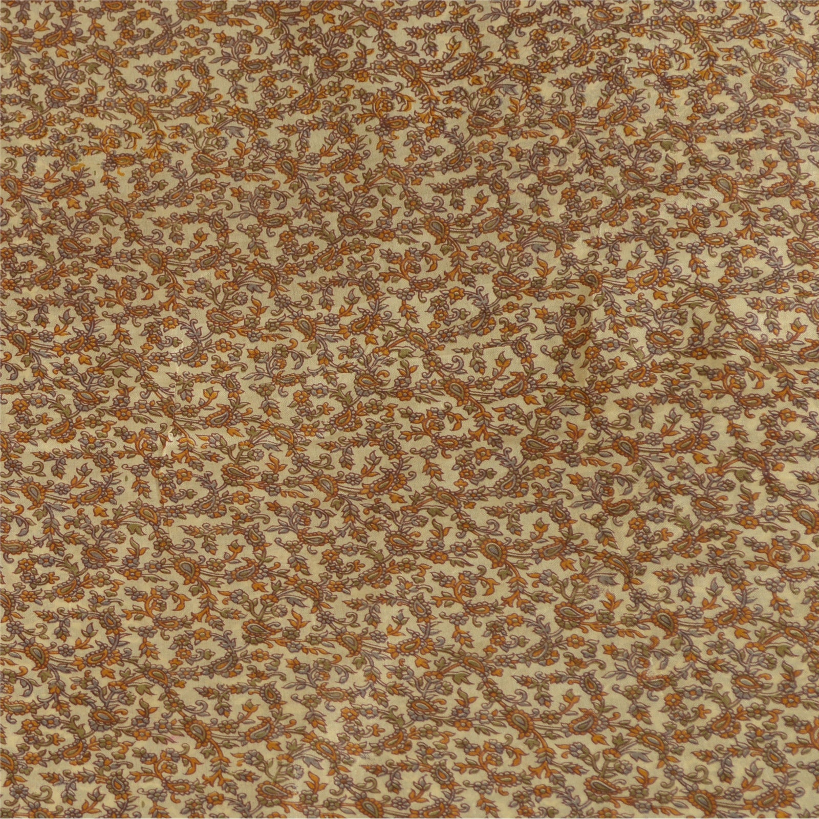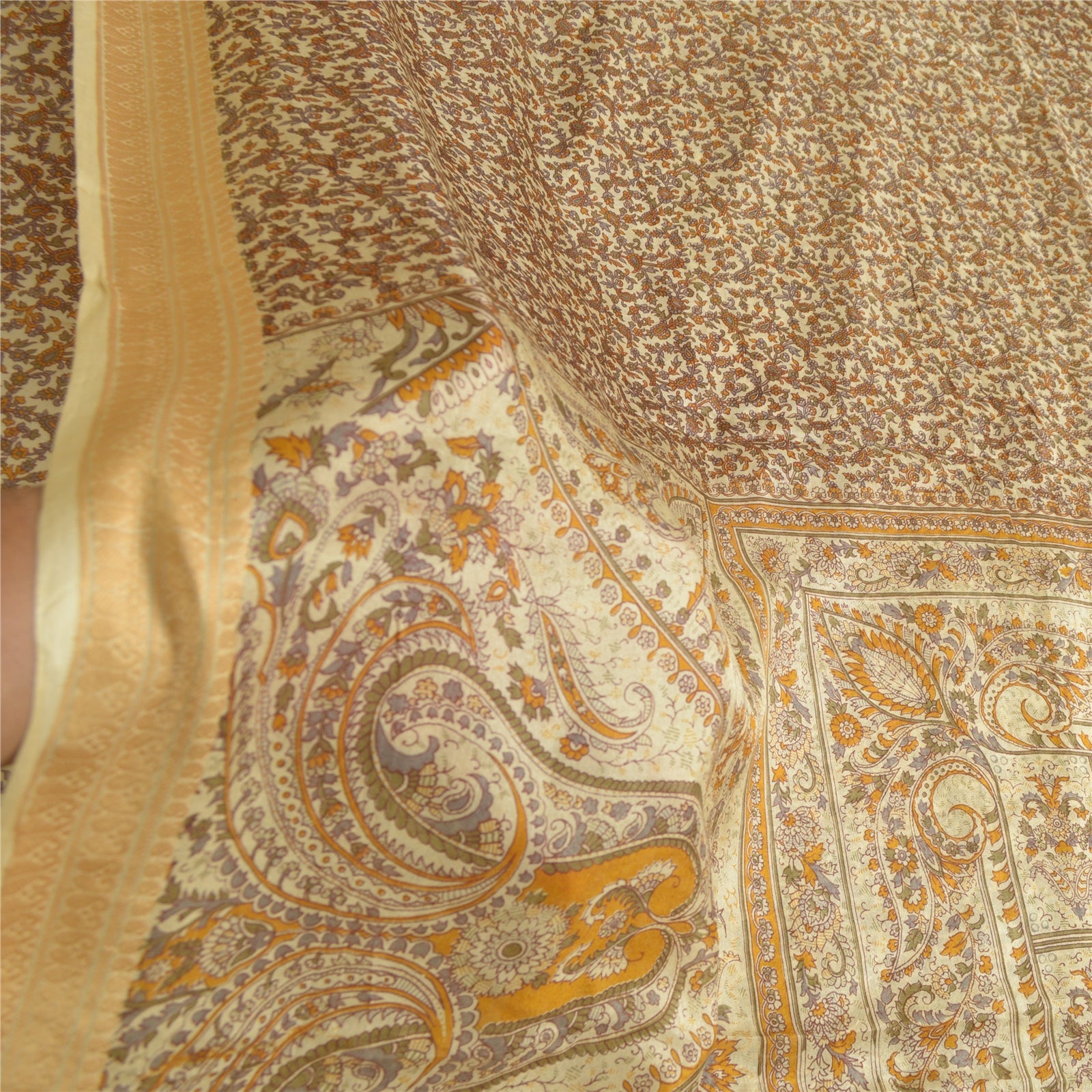 Sanskriti Vintage Sarees Cream Pure Silk Printed Woven Border Sari Craft Sustainable Fabric