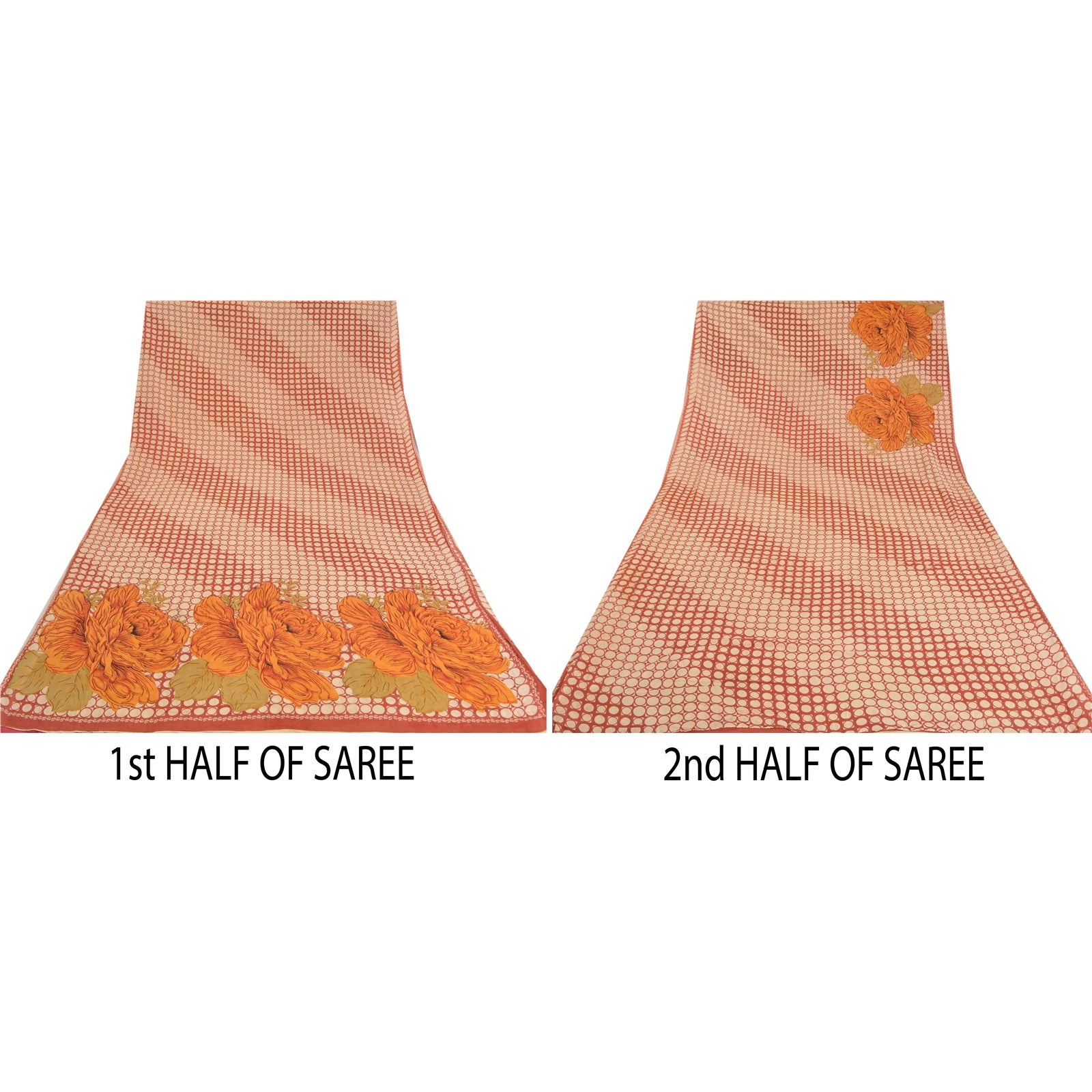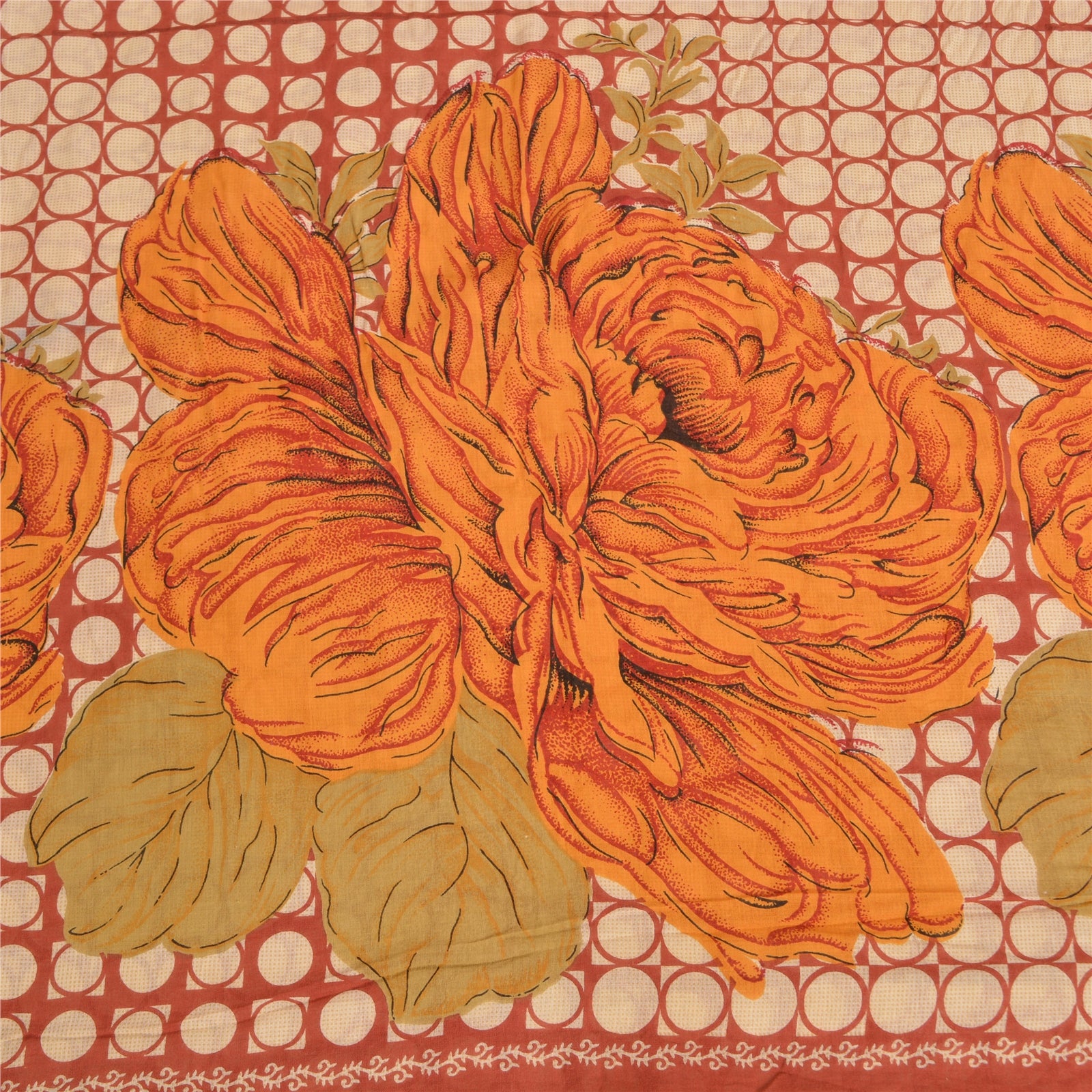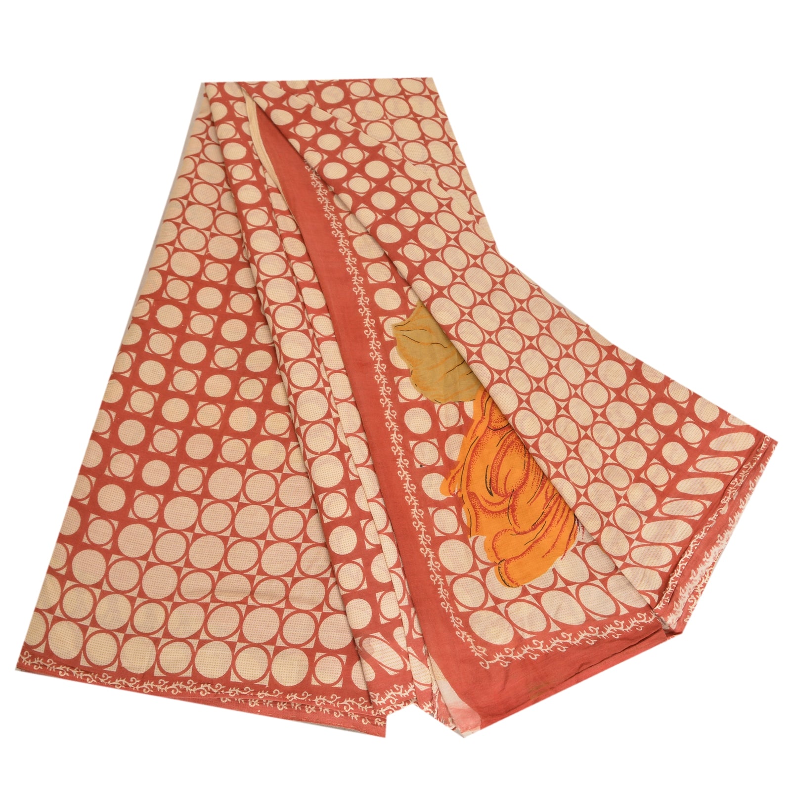 Sanskriti Vintage Sarees Dark Red Printed Pure Cotton Sari Soft 5yd Craft Sustainable Fabric