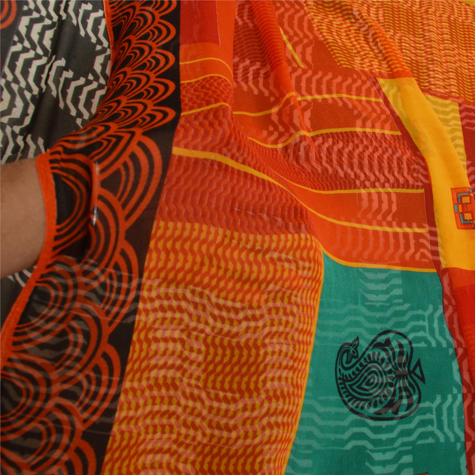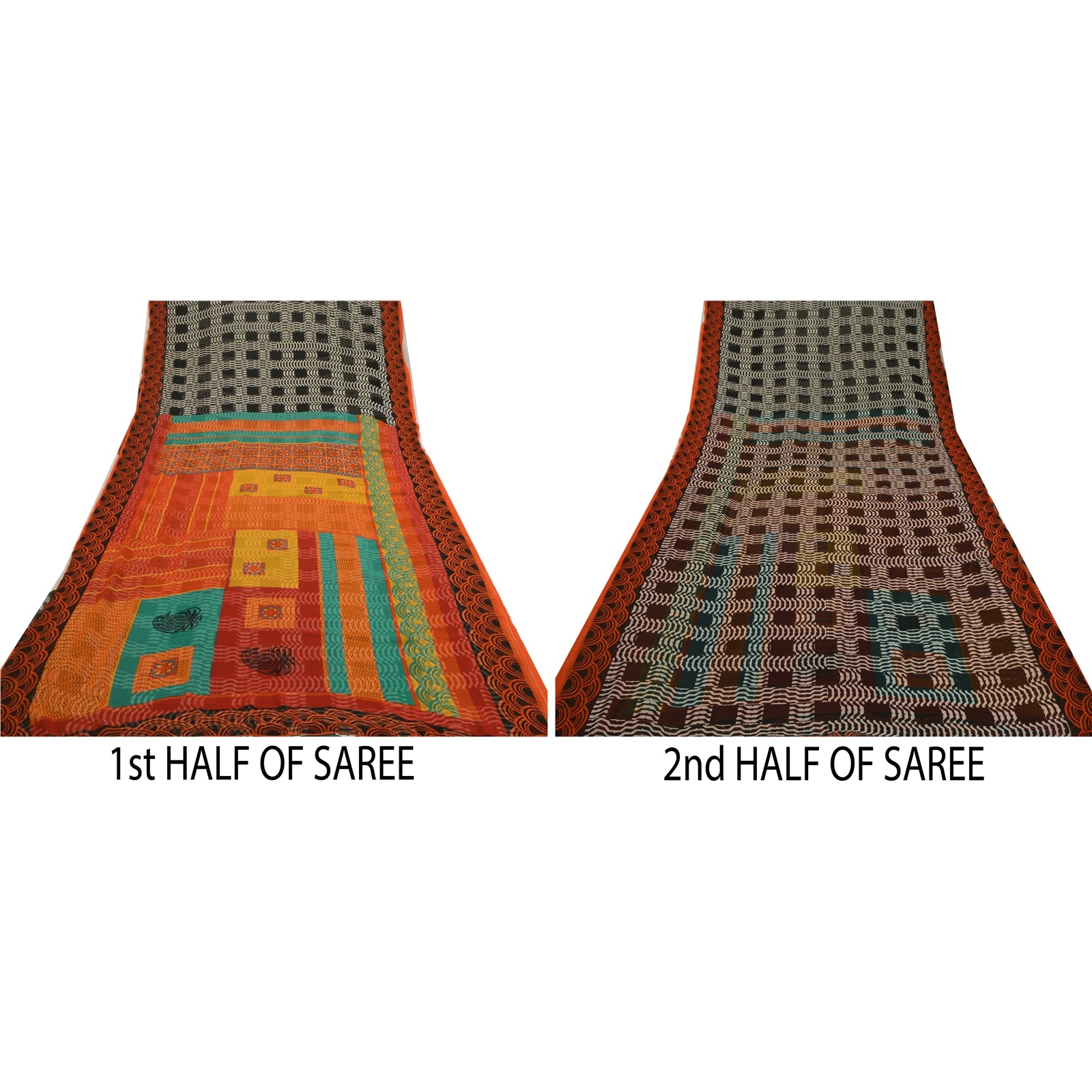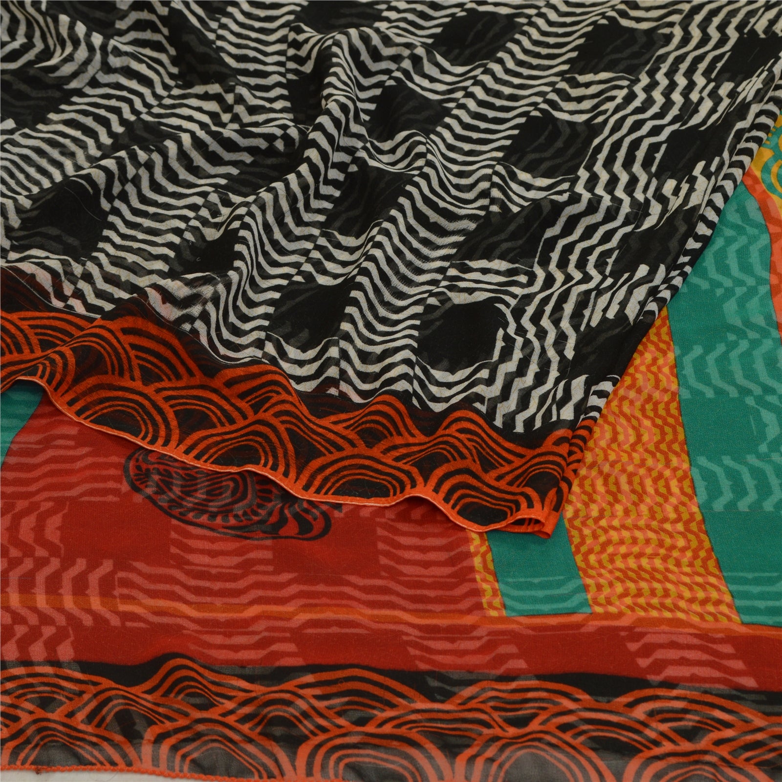 THE ITEM COLOR OR SHADE MAY BE DARKER OR LIGHTER THAN THE PICTURE.' Beautiful black colored georgette printed saree. Pallu & Border has printed floral & geometric design. Geometric design in center part of saree. Saree has mild stain on it. What is special about this saree? Brilliant design on soft Sustainable Fabric is really enhancing the beauty of the saree. This unique vintage saree can be used for various crafting ideas even if you don't want to use it as a sari. Design a dress, use it as a as window dressing, upholstery, sarongs, throw, dress making and table linen much more. Let your creative juices flow and use this decorated Sustainable Fabric in multiple fashion. International buyers please note: Import duties, taxes, and charges are not included in the item price or postage cost. These charges are the buyer's responsibility. Please check with your country's customs office to determine what these additional costs will be prior to bidding or buying.Buyer will pay custom duty/tax. It is calculated and charged differently by every country. As a seller I do not have any control over it. VAT or sales tax is calculated by the platform at the time of checkout. Customs charge is payable at the time of delivery.