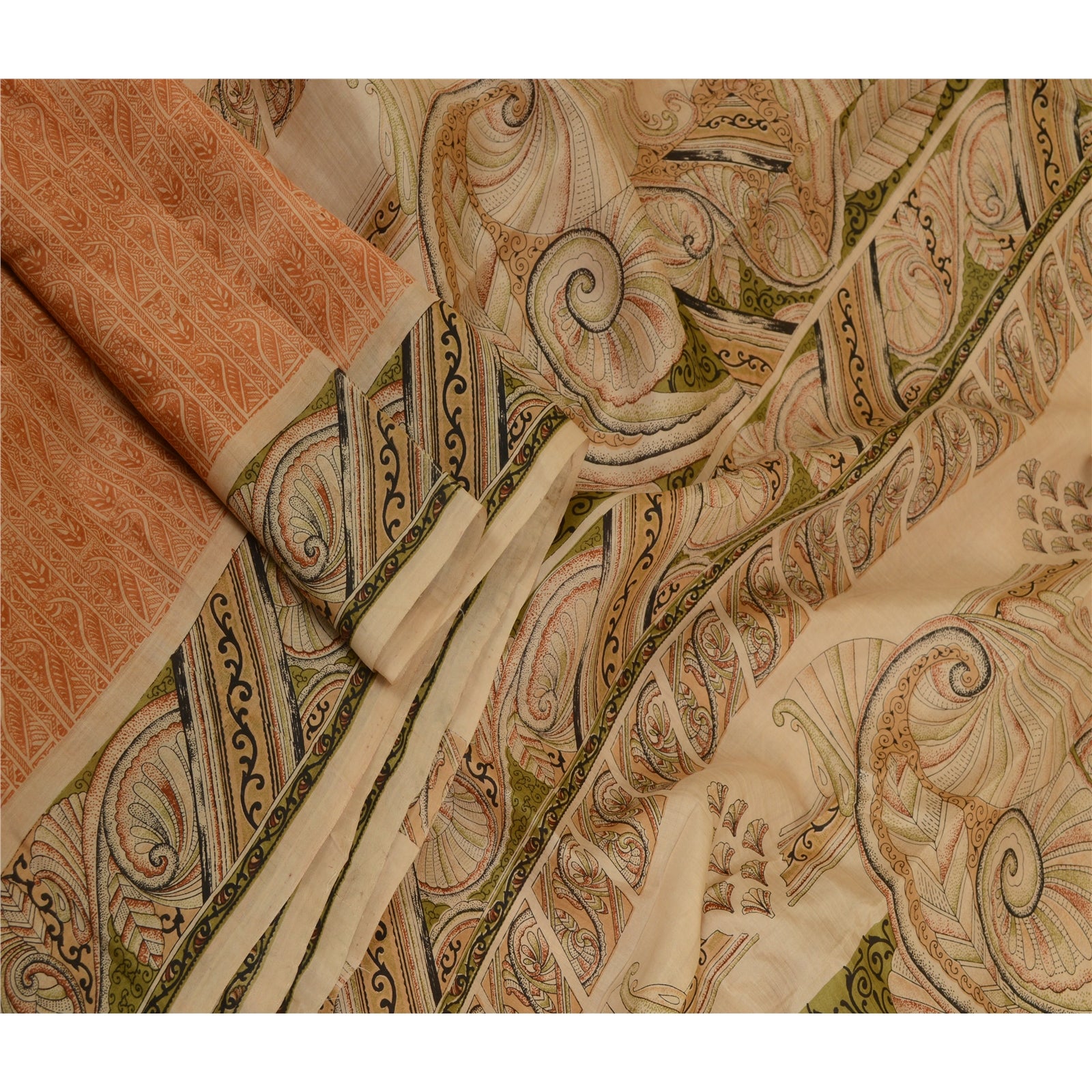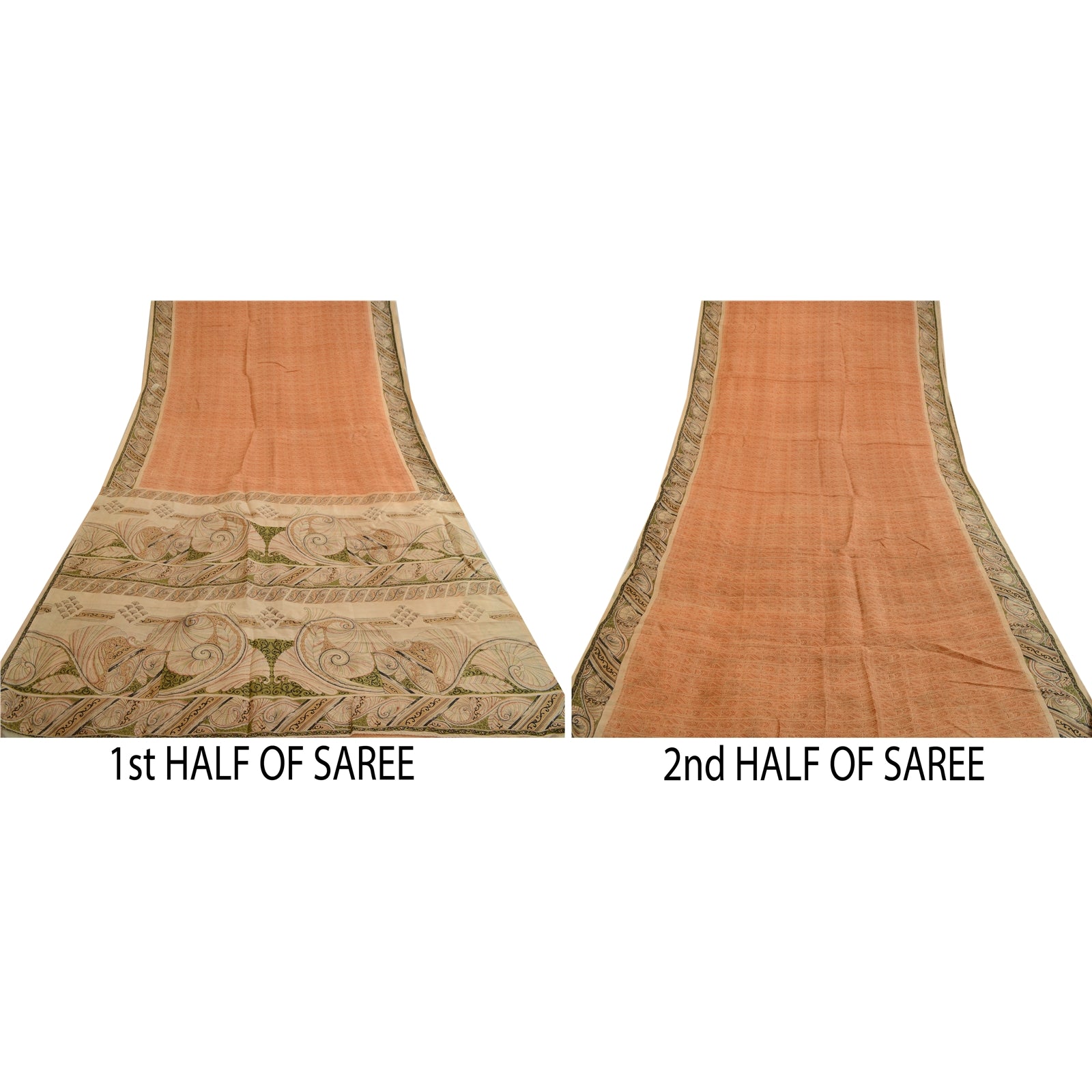 THE ITEM COLOR OR SHADE MAY BE DARKER OR LIGHTER THAN THE PICTURE.' Beautiful peach colored pure silk printed saree. Pallu & Border has printed floral design. Floral design in center part of saree. What is special about this saree? Fabulous design is really enhancing the beauty of the saree.This unique vintage saree can be used for various crafting ideas even if you don't want to use it as a sari. Design a dress, use it as window, dressing, upholstery, sarongs, throw, dress making and table linen much more. Let your creative juices flow and use this decorated Sustainable Fabric in multiple fashion. International buyers please note: Import duties, taxes, and charges are not included in the item price or postage cost. These charges are the buyer's responsibility. Please check with your country's customs office to determine what these additional costs will be prior to bidding or buying. Buyer will pay custom duty/tax. It is calculated and charged differently by every country. As a seller I do not have any control over it. VAT or sales tax is calculated by the platform at the time of checkout. Customs charge is payable at the time of delivery.'