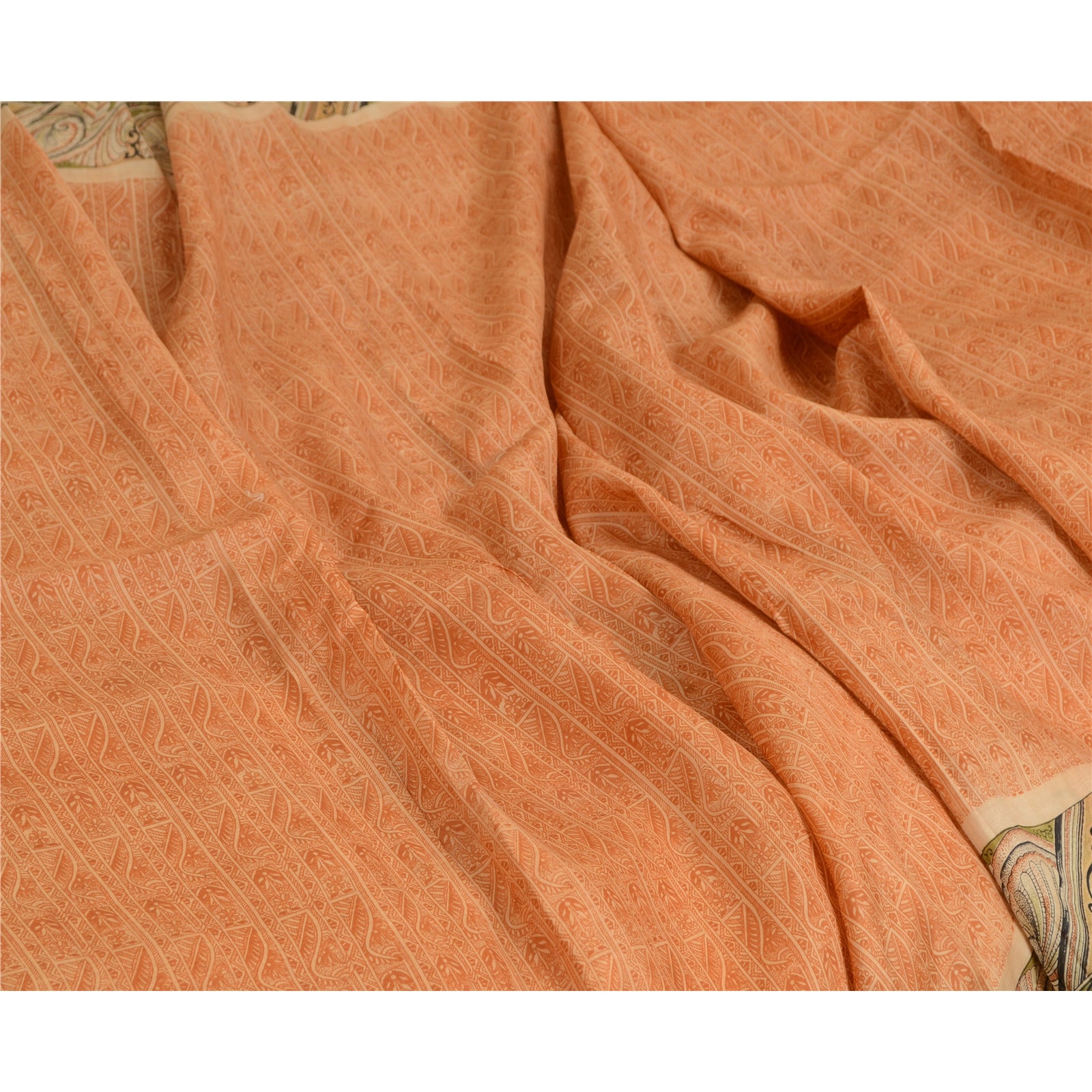 Sanskriti Vintage Sarees From India Peach Printed Pure Silk Sari Craft Sustainable Fabric