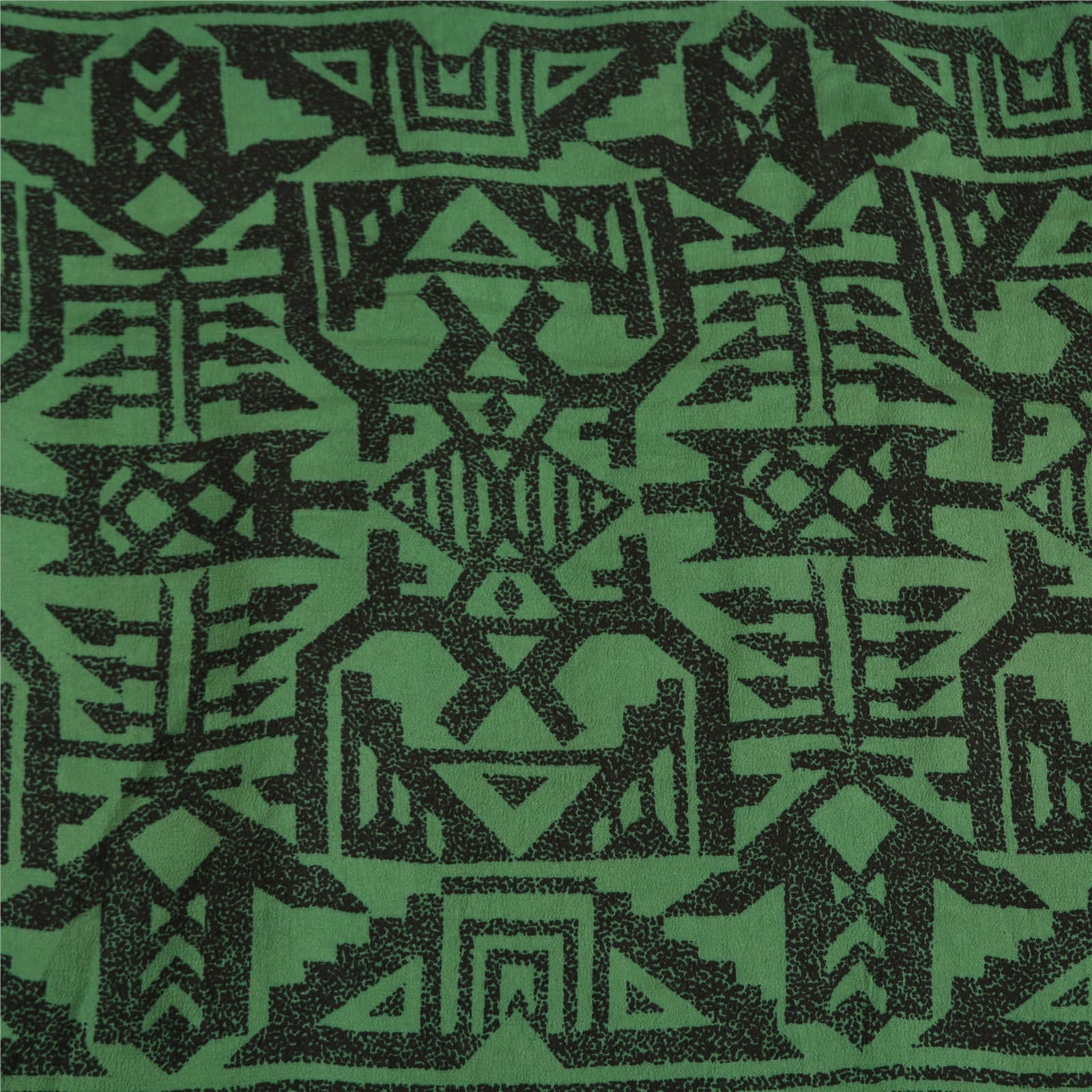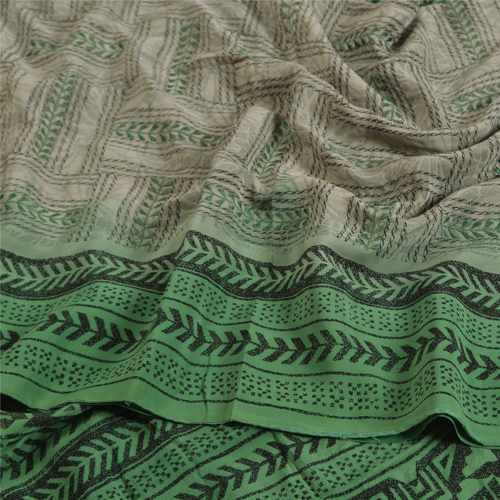 Sanskriti Vintage Sarees Gray/Green Pure Crepe Silk Printed Sari Craft Sustainable Fabric
